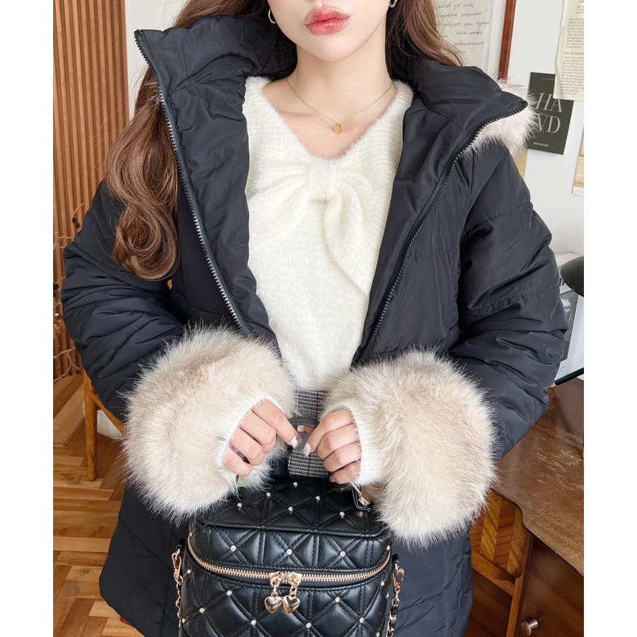 ・アウターのインとしても、ケープリボンがちらっと見えるスタイリングが楽しめます。