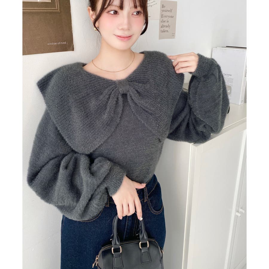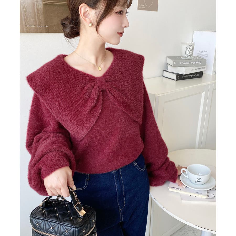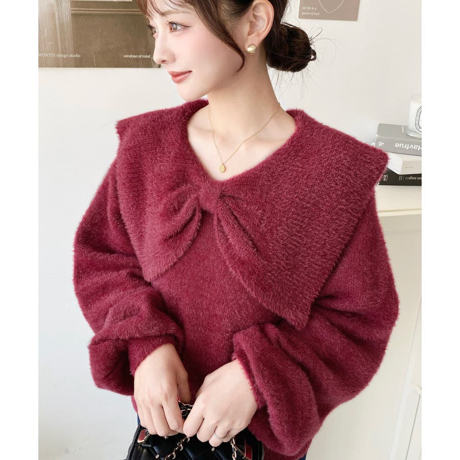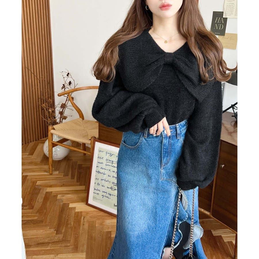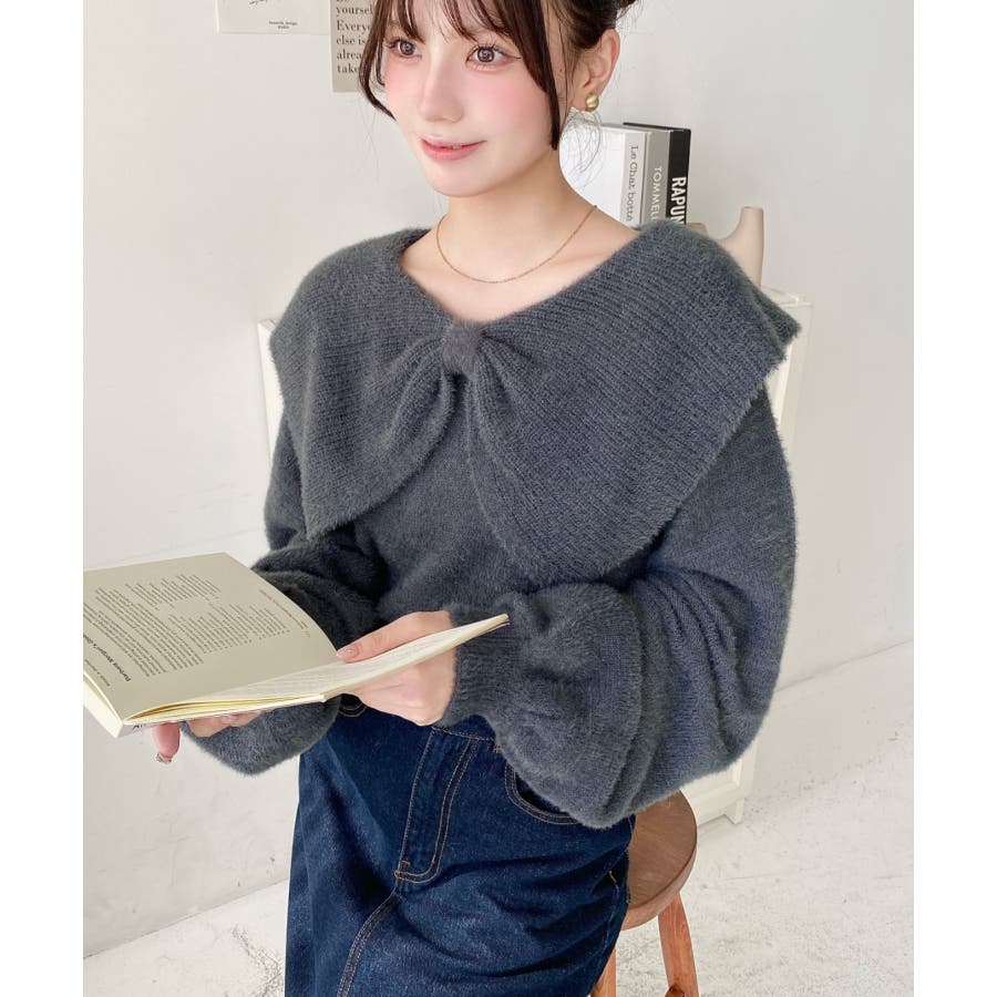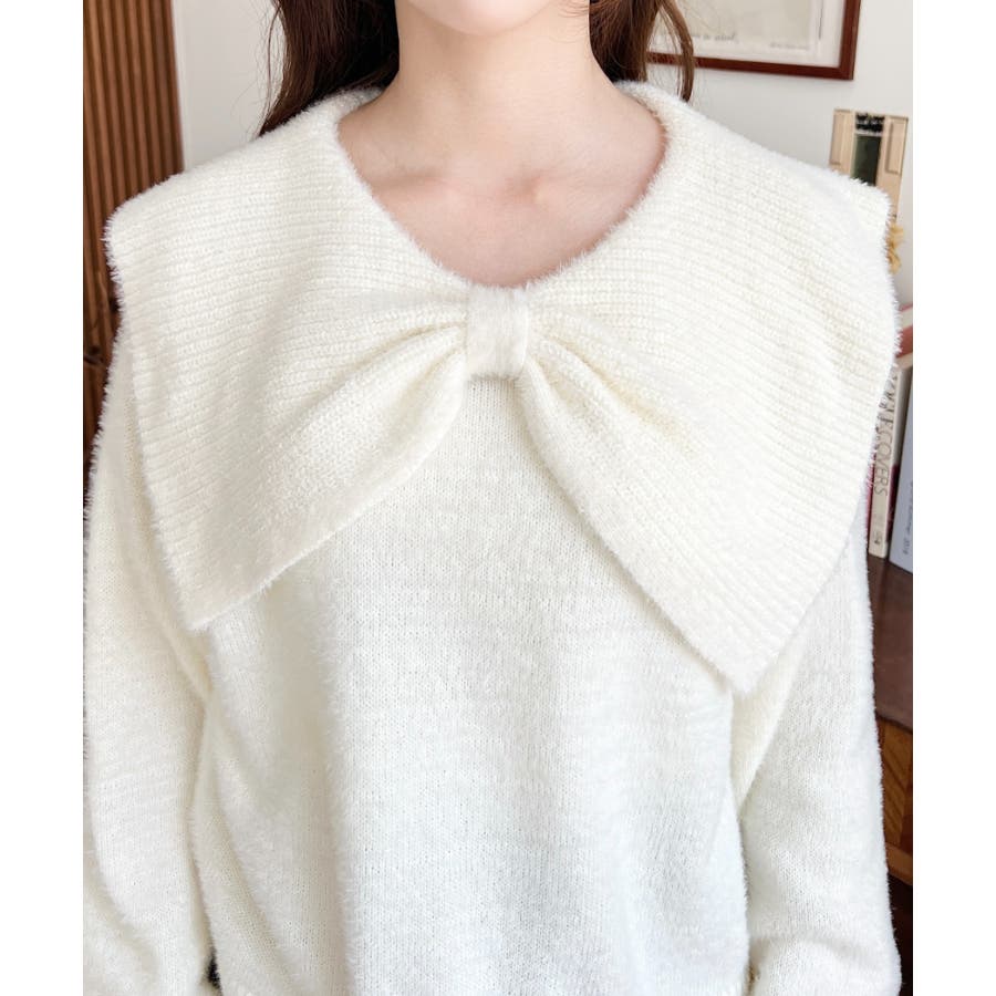 ・ふんわり軽やかなシャギーニットにケープリボンをあしらい、1枚で華やかさと上品さを演出。