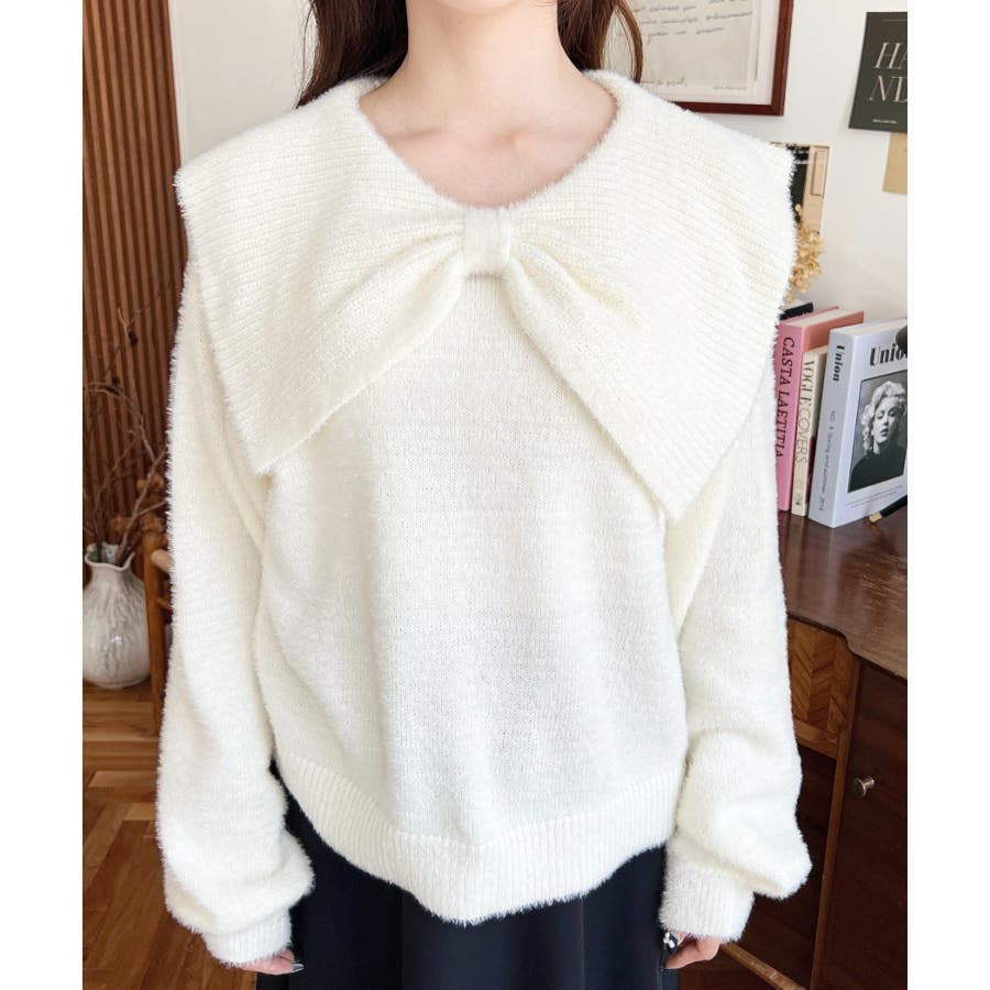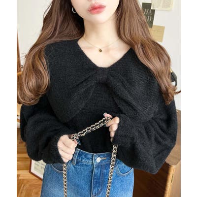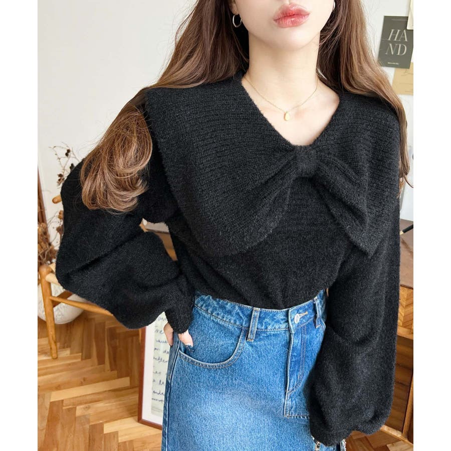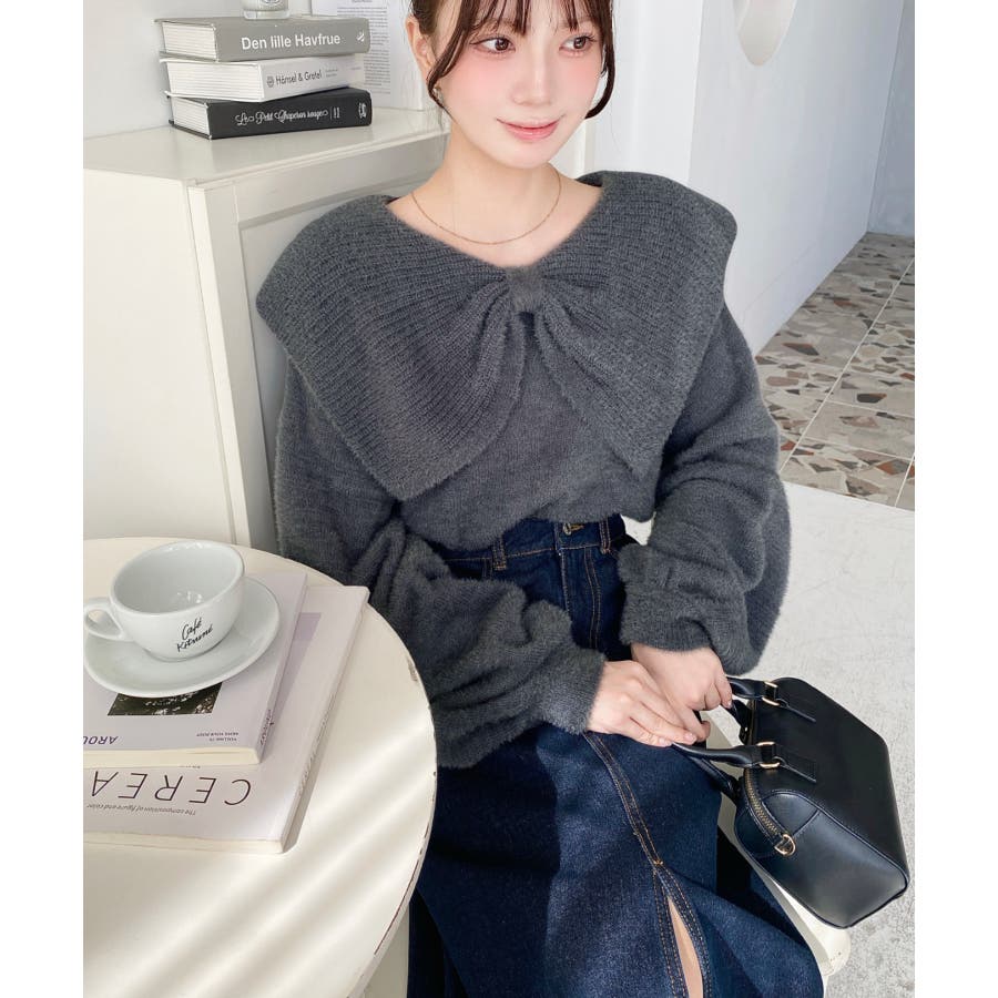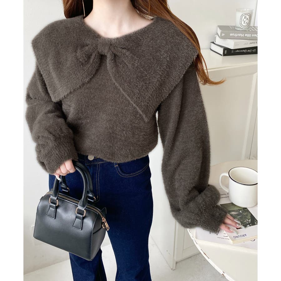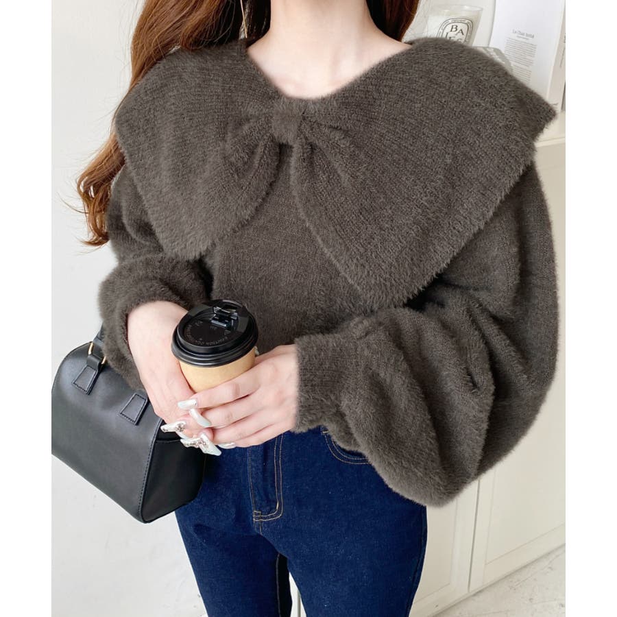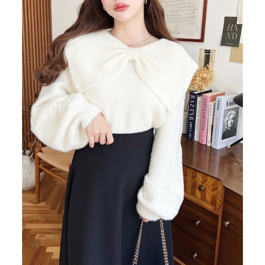 ・ふんわり軽やかなシャギーニットにケープリボンをあしらい、1枚で華やかさと上品さを演出。