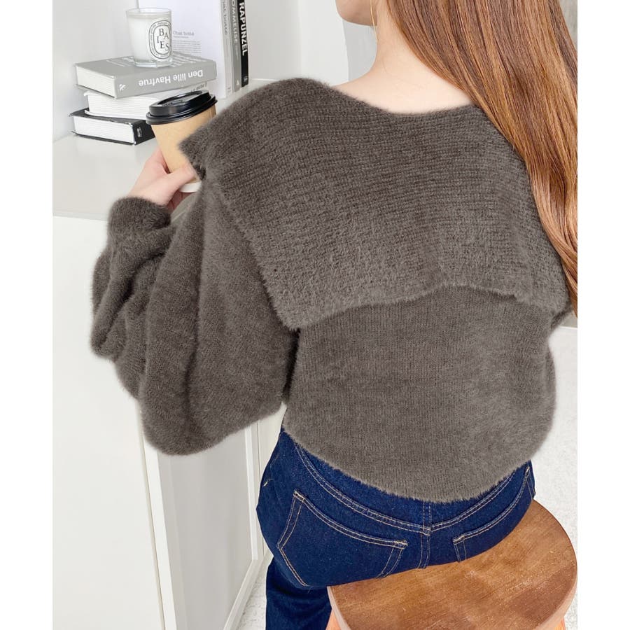 ケープリボンシャギーニットプルオーバー