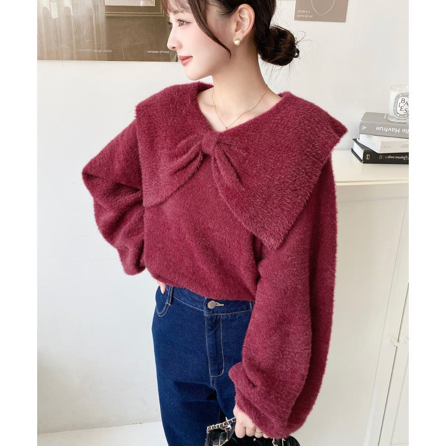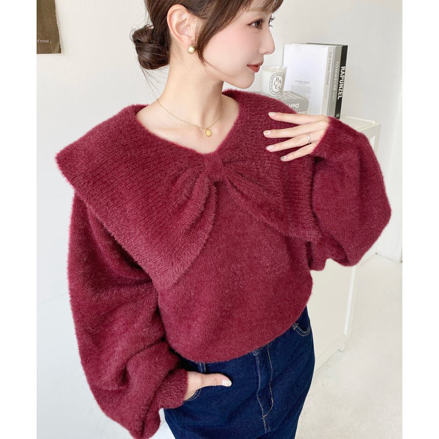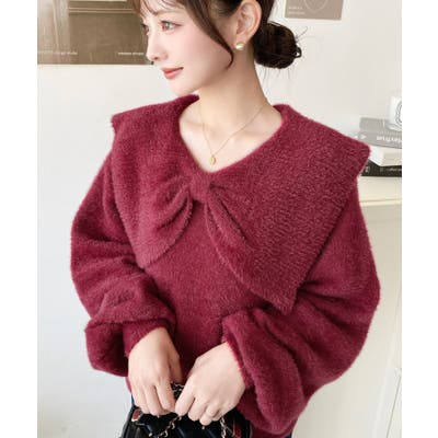 【華やかケープリボンでフェミニンに♪シャギーニットプルオーバー】
