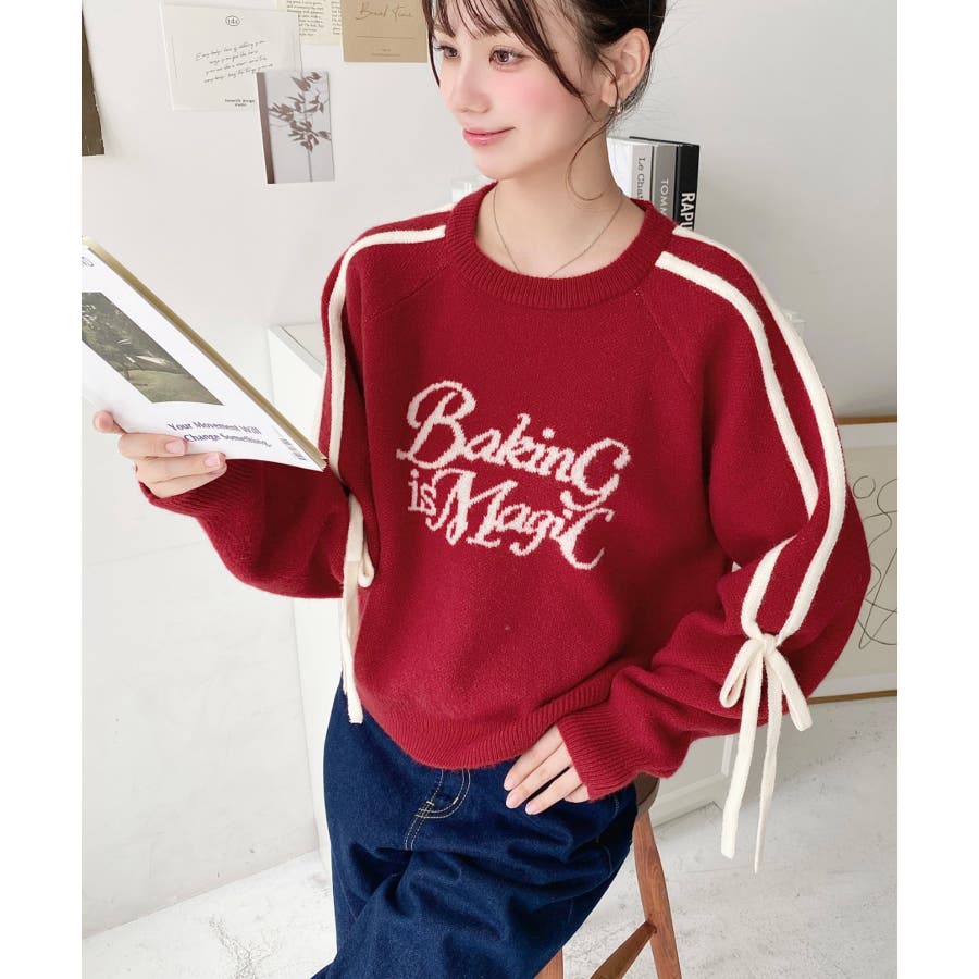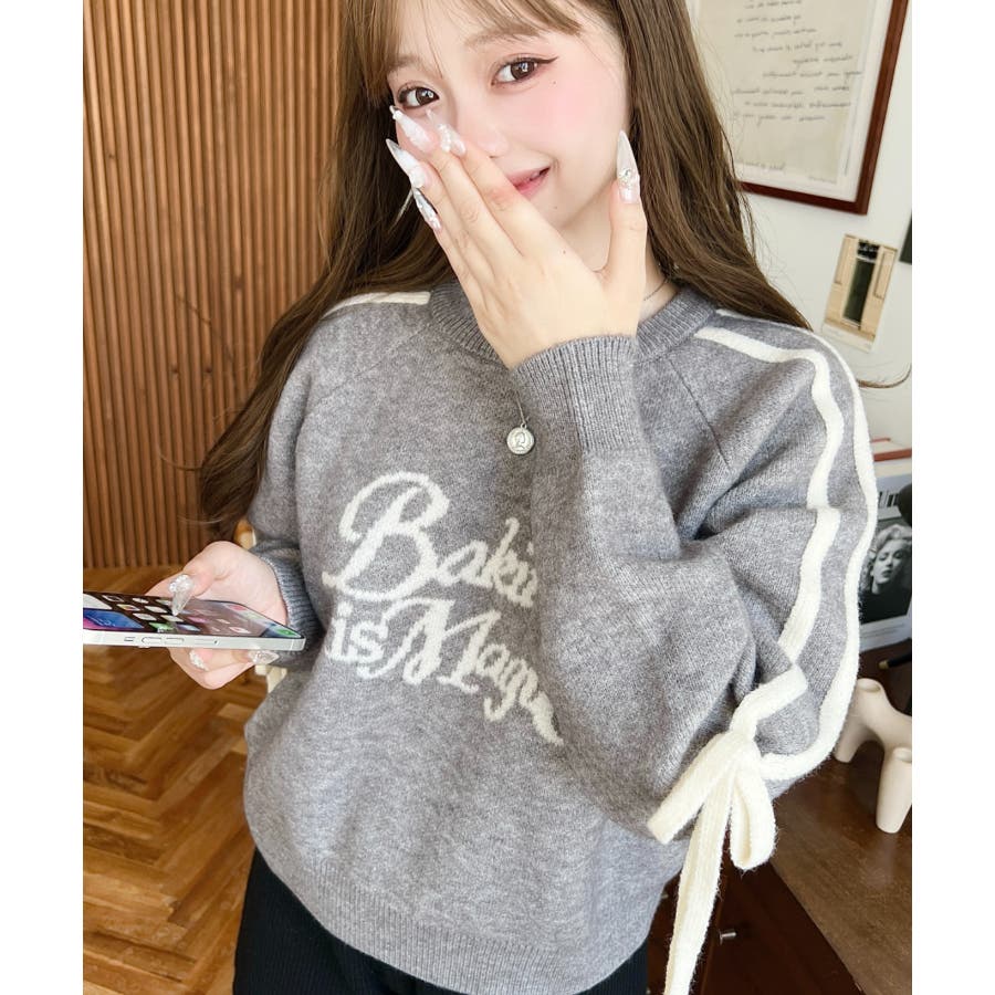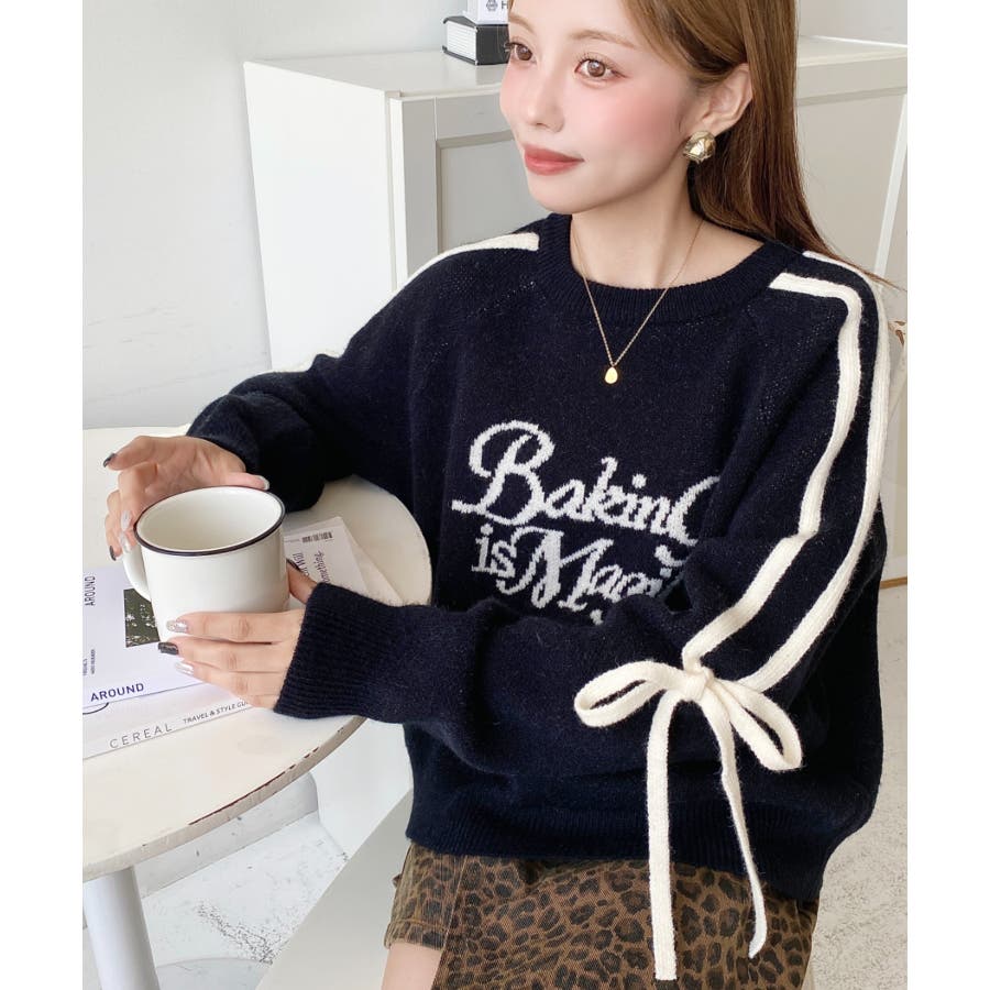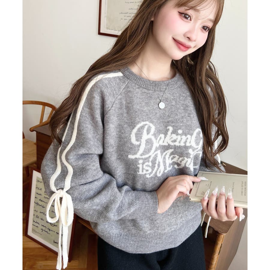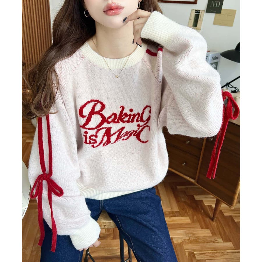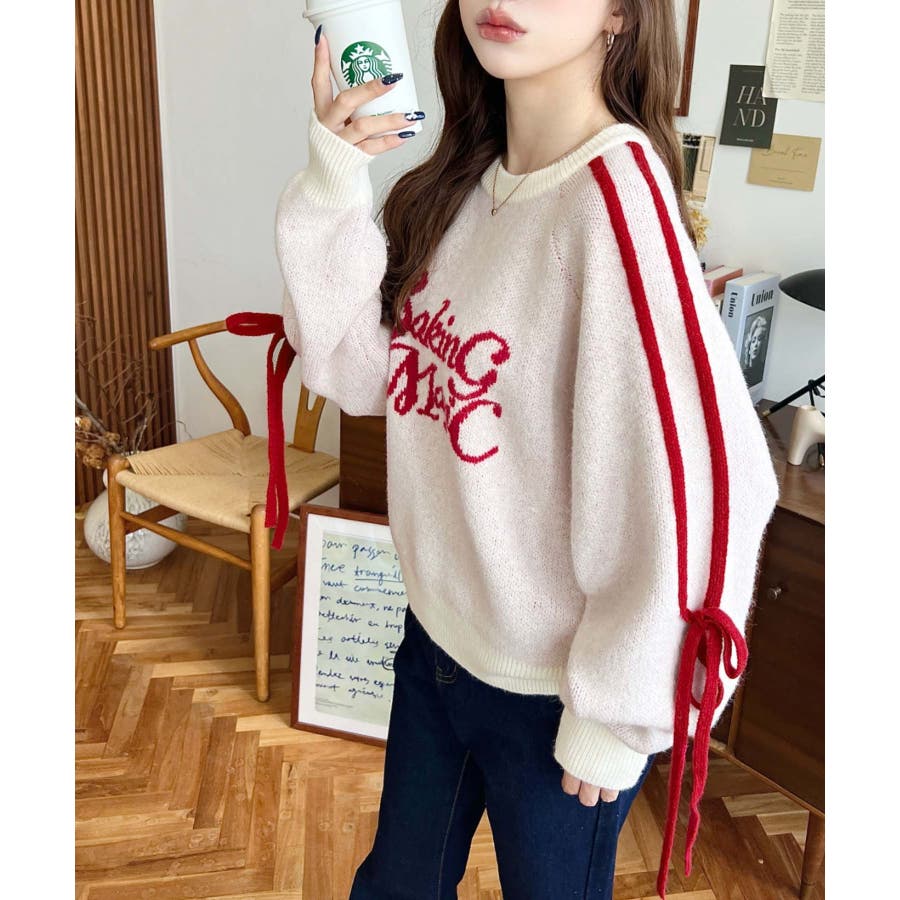 袖のジャガードラインとリボンが可愛くて、1枚でコーデのアクセントになります。