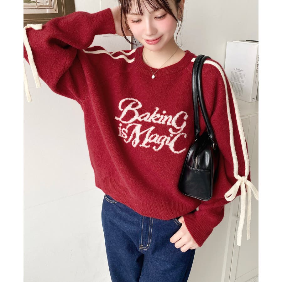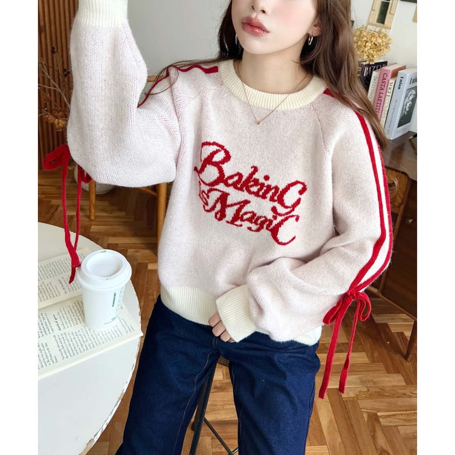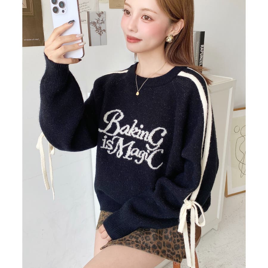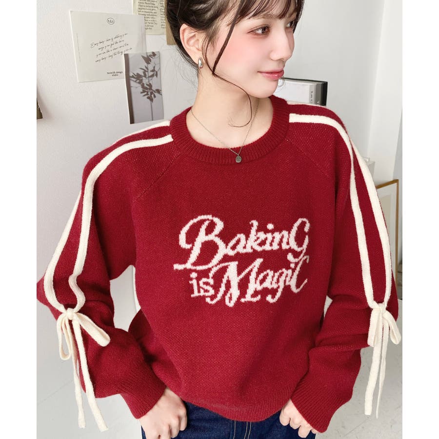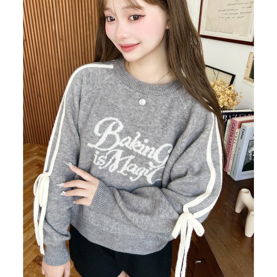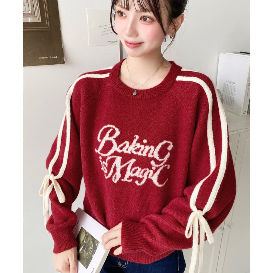 袖のジャガードラインとリボンが可愛くて、1枚でコーデのアクセントになります。