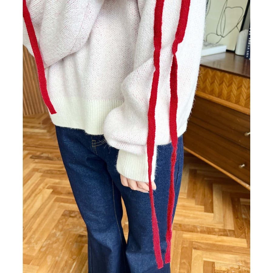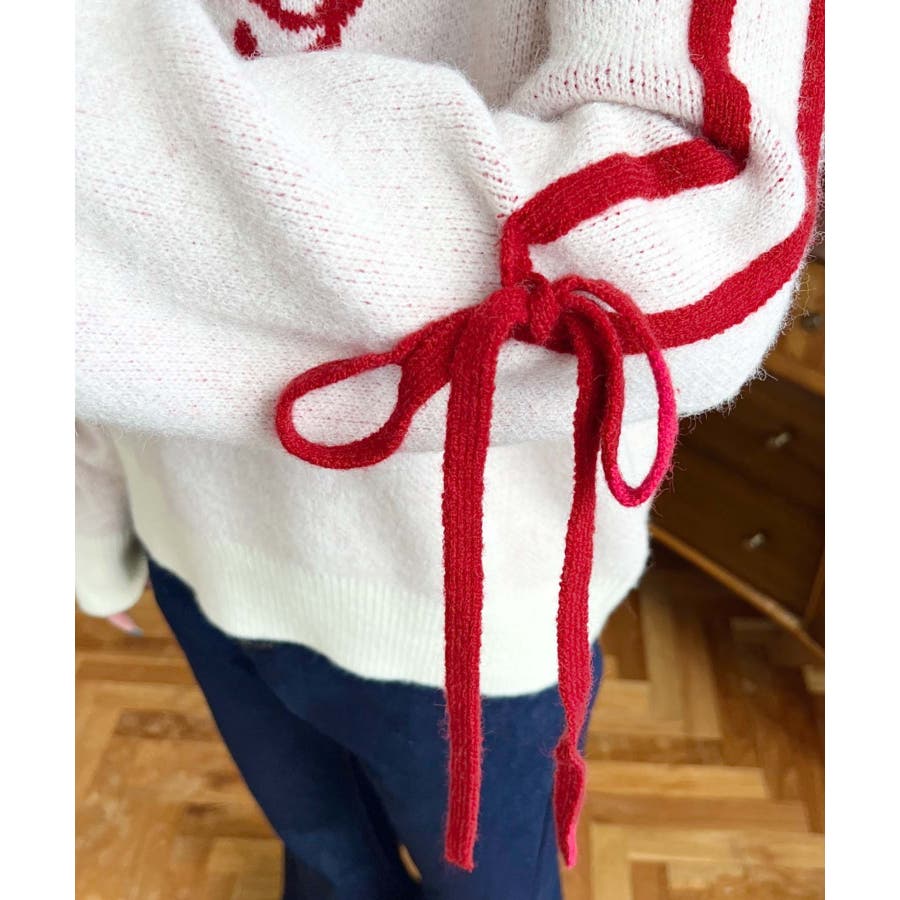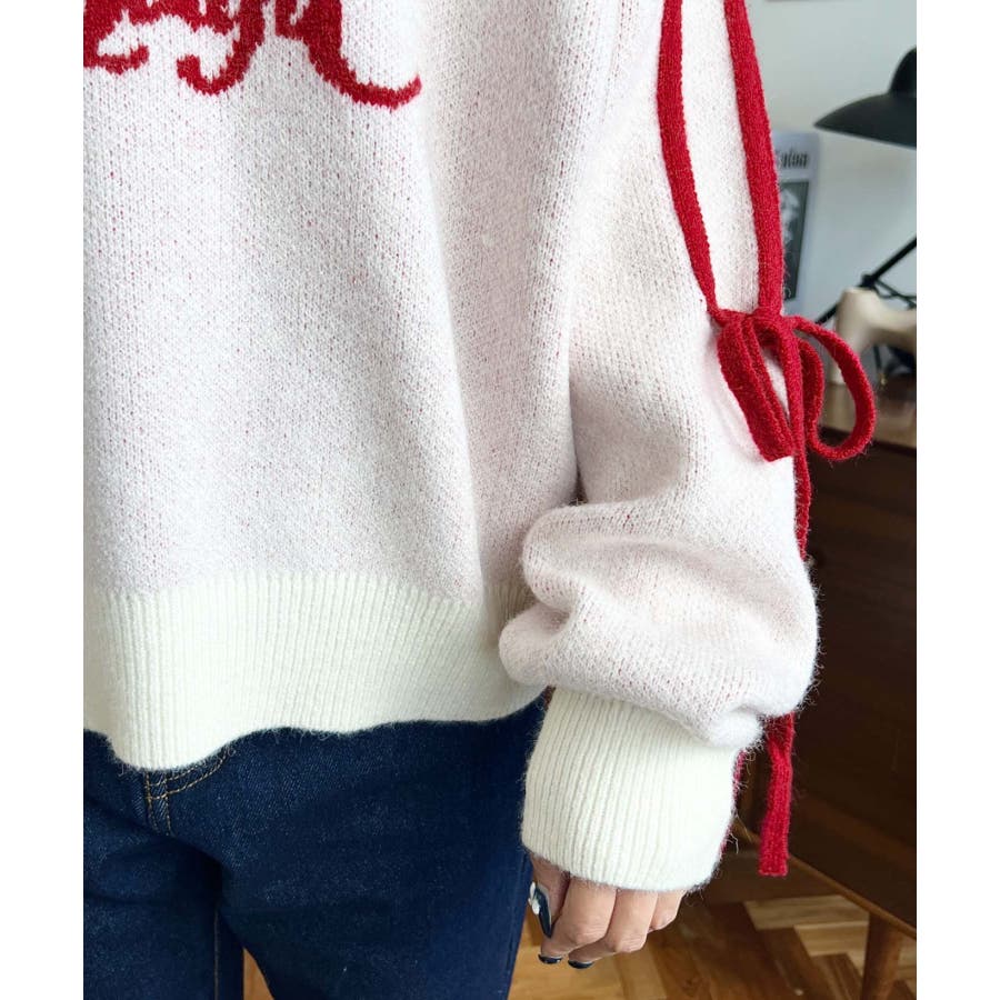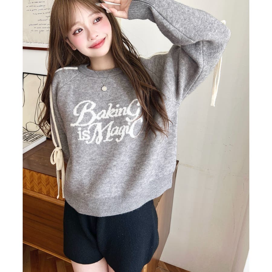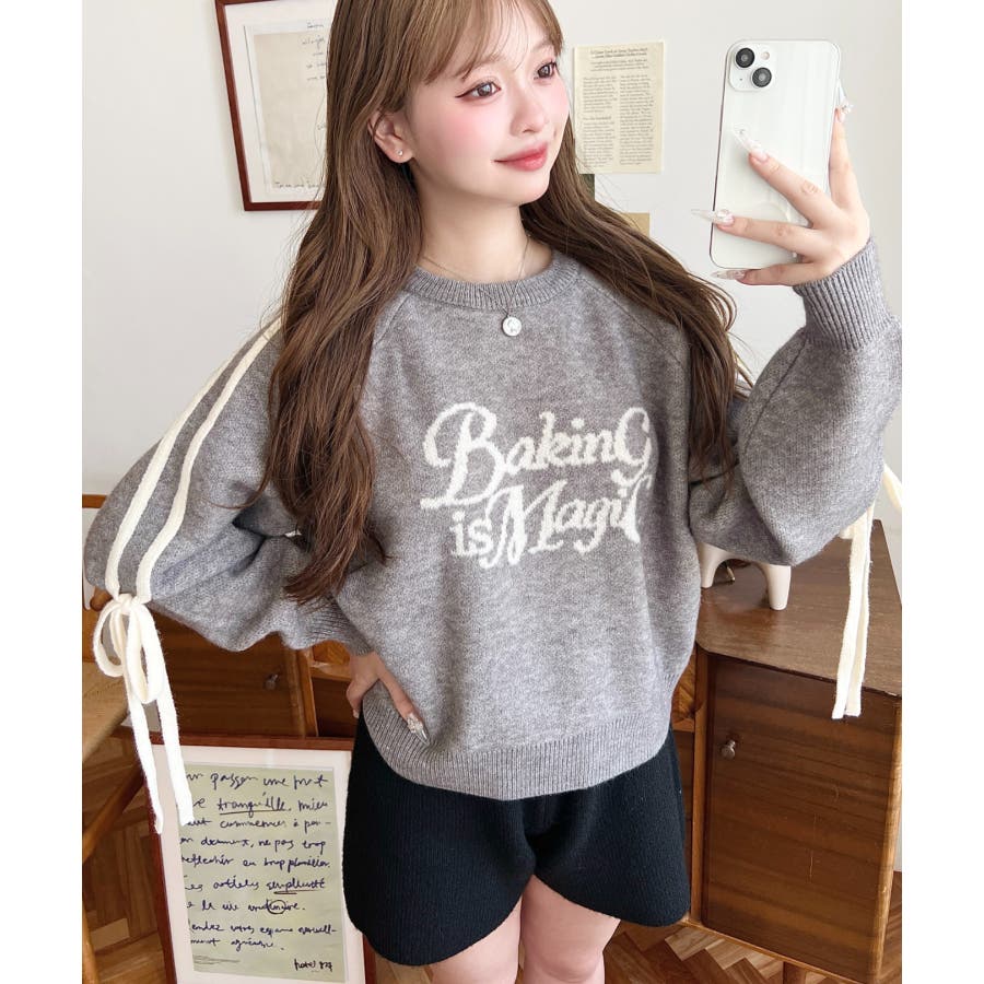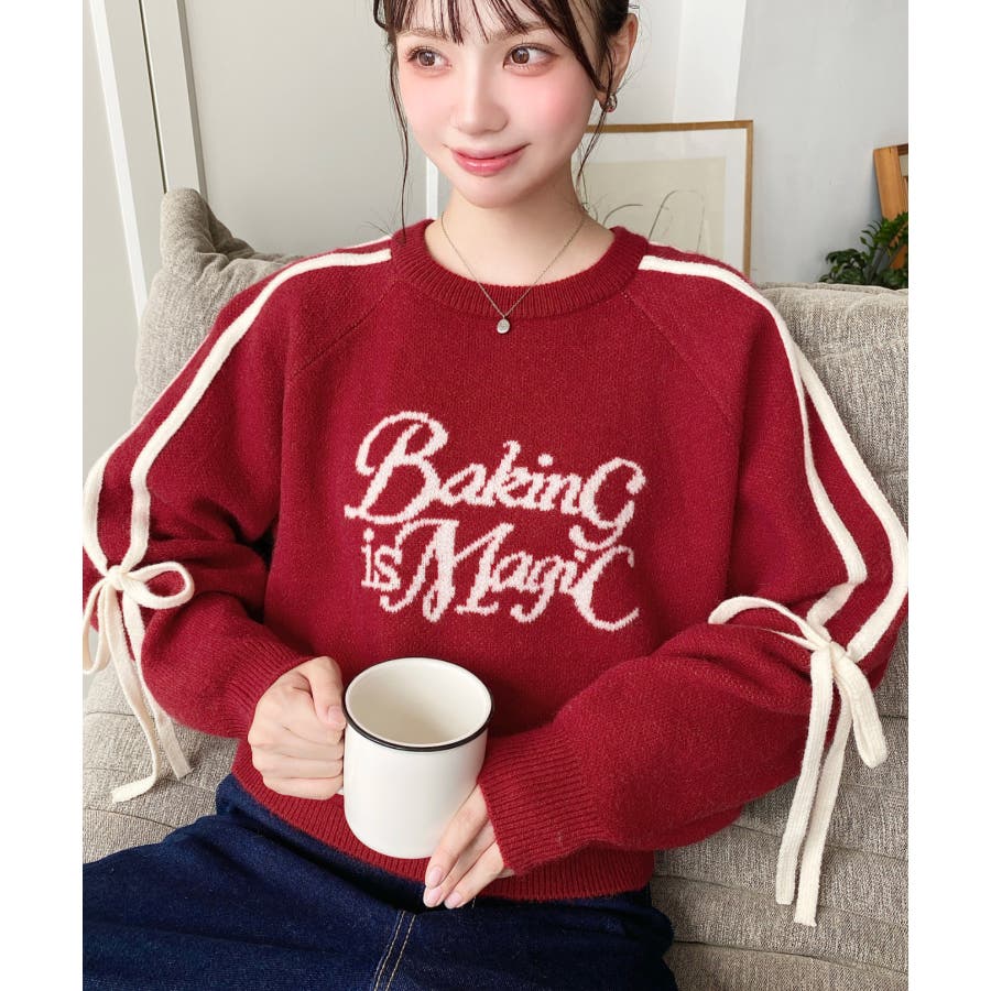 袖のジャガードラインとリボンが可愛くて、1枚でコーデのアクセントになります。