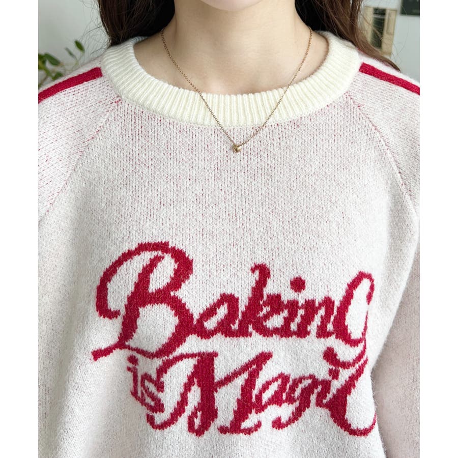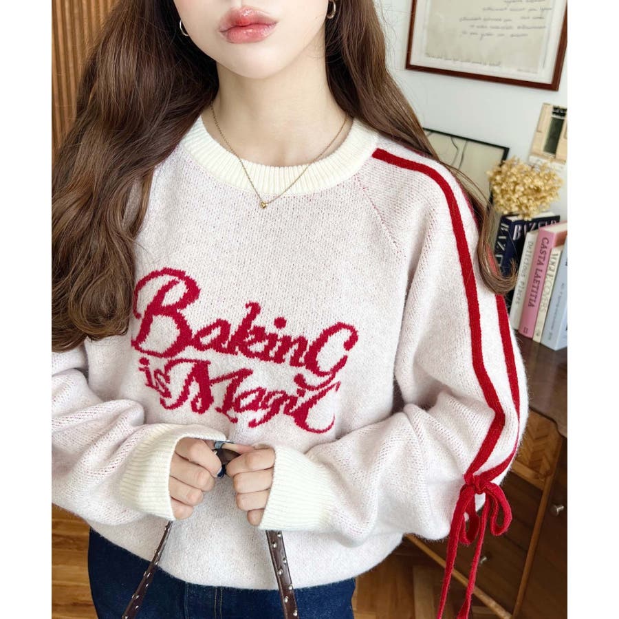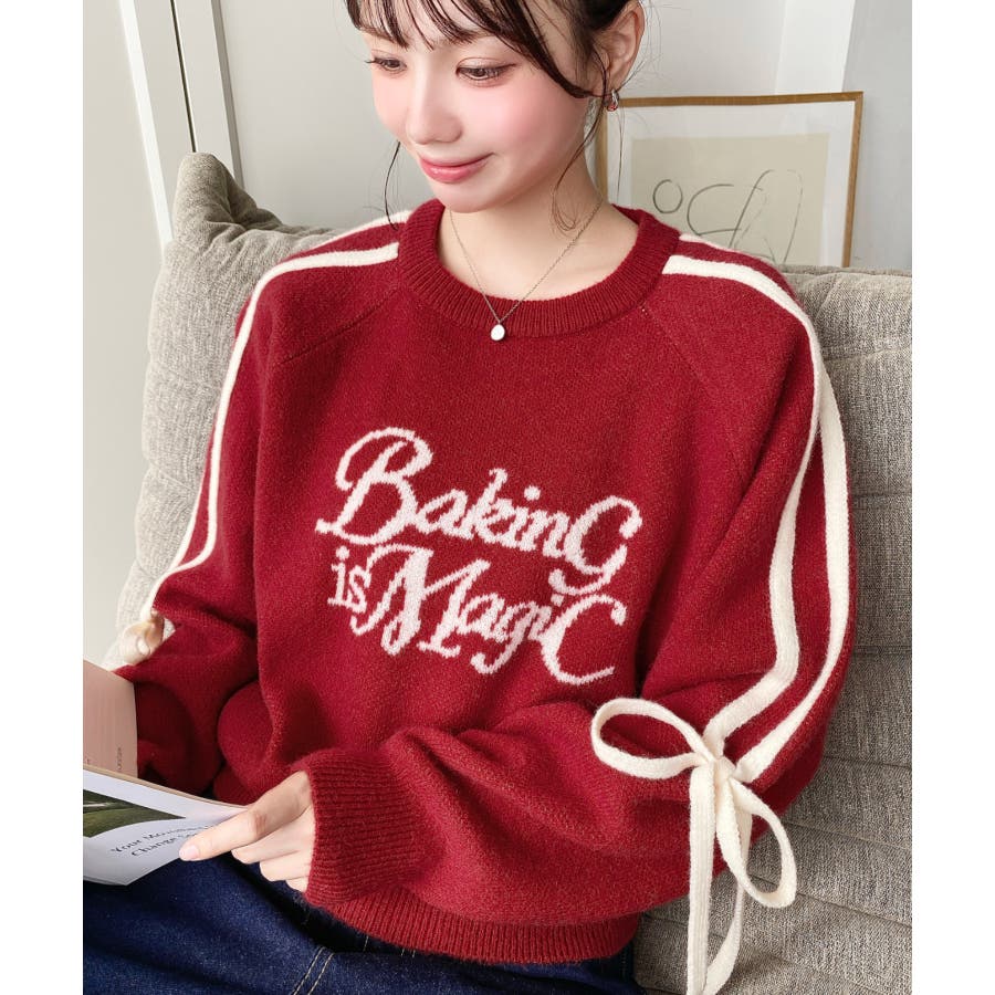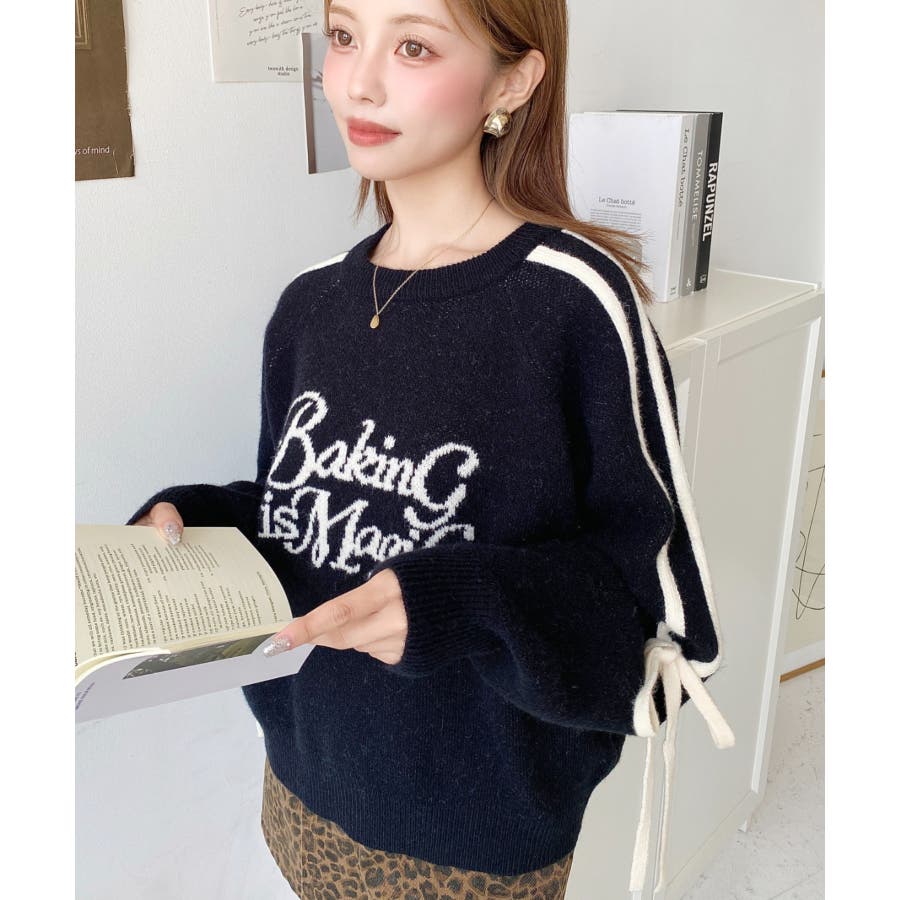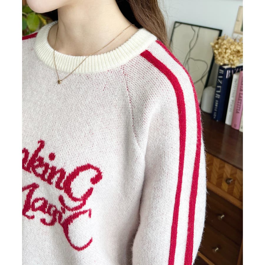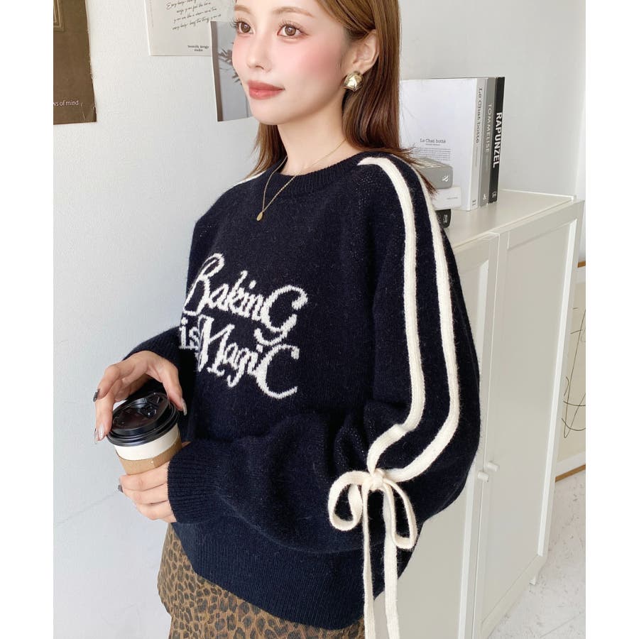 【リボンラインで可愛さとトレンド感をプラス♪Wジャガードラインロゴニット】