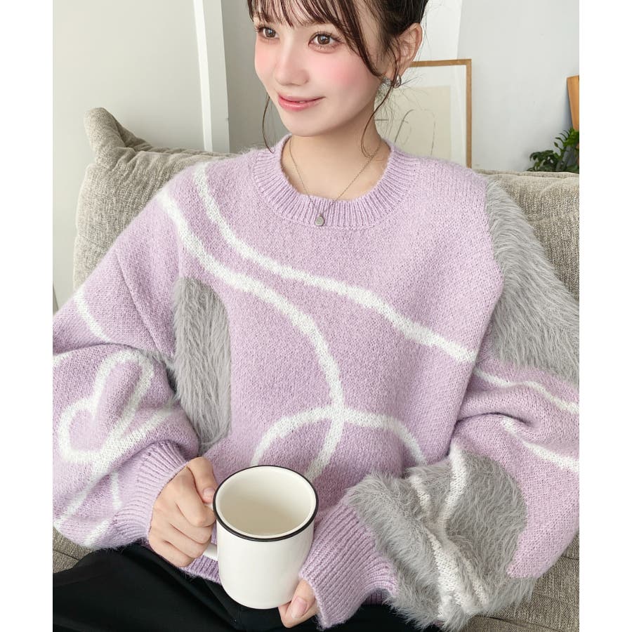 ・フロントから袖にかけて大胆に描かれたハートモチーフと、動きのあるライン柄が目を惹くデザイン♪