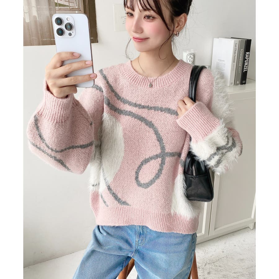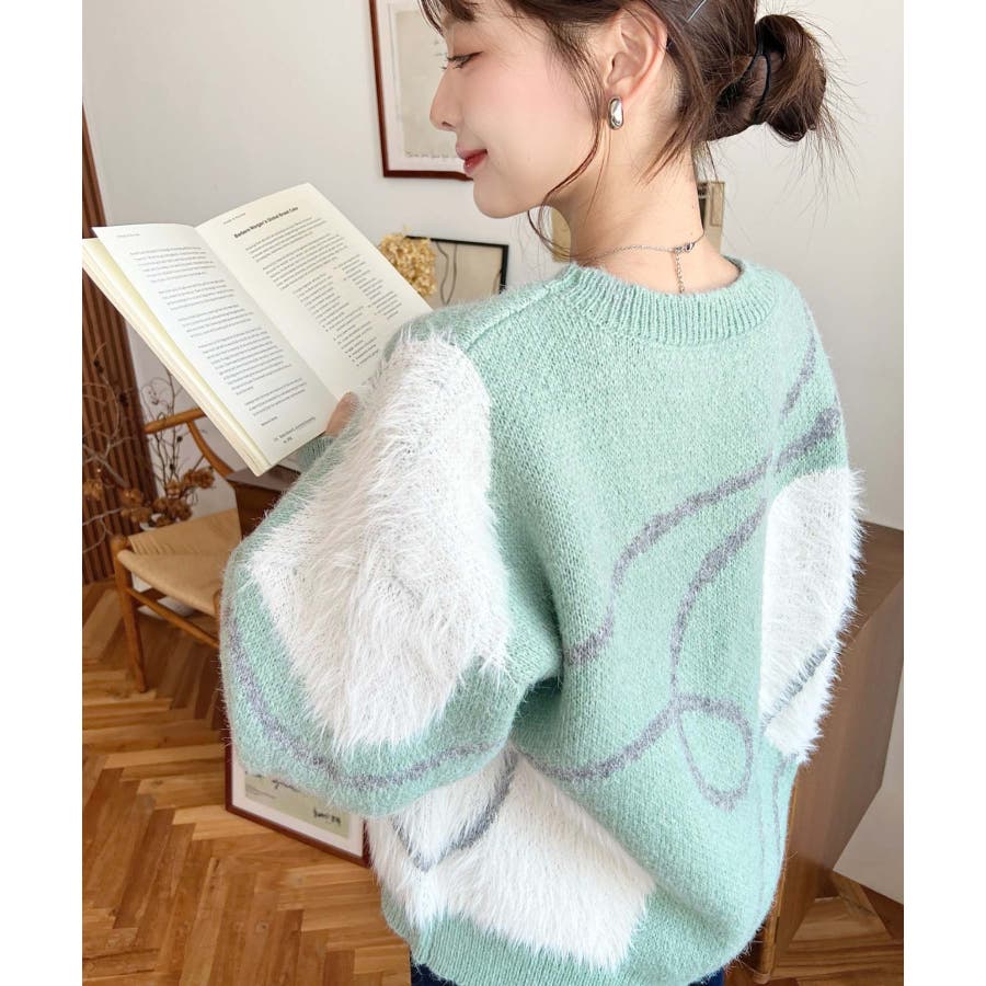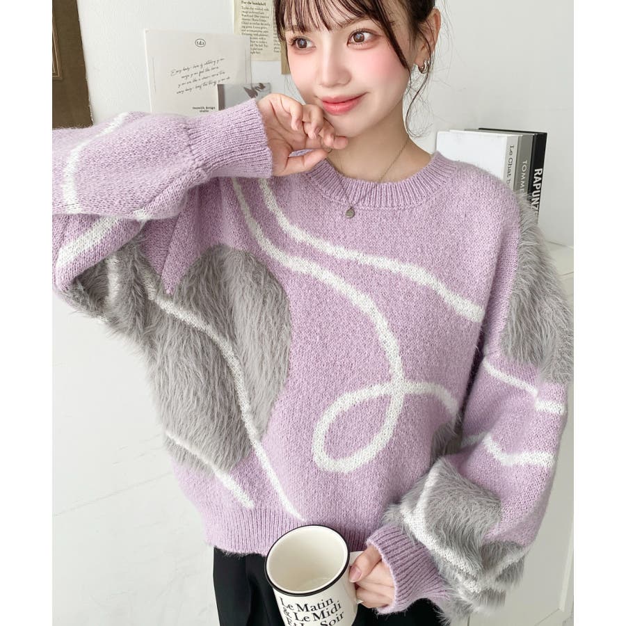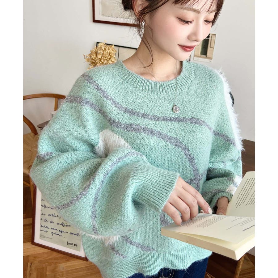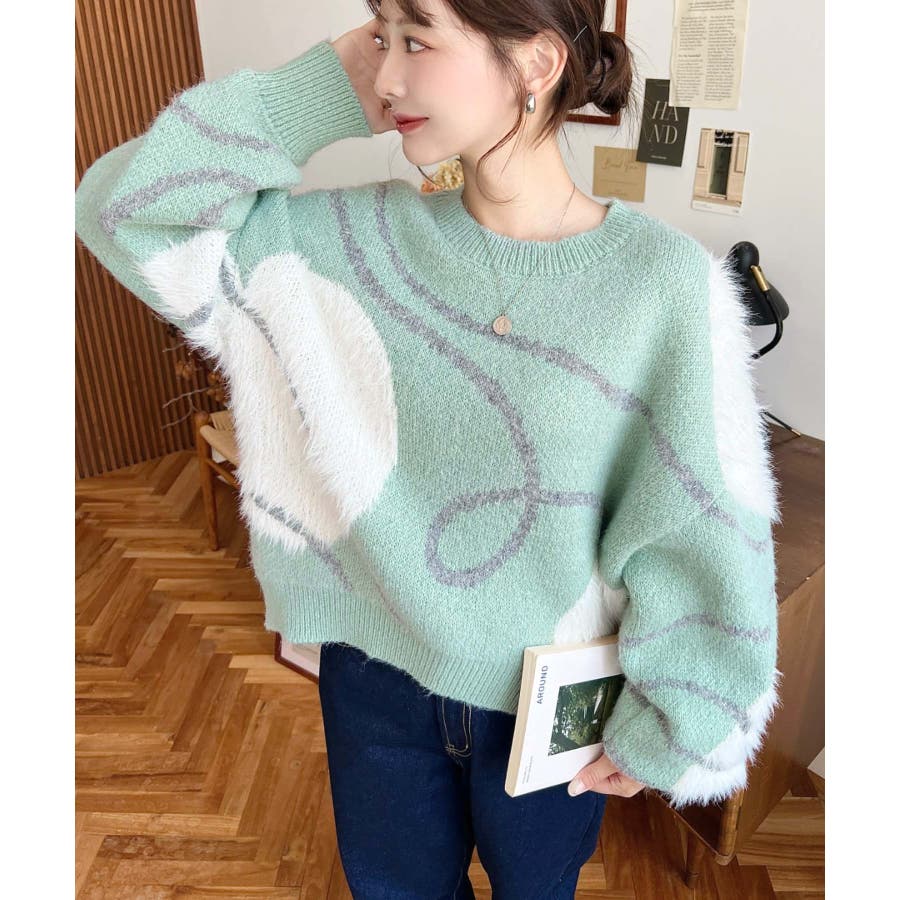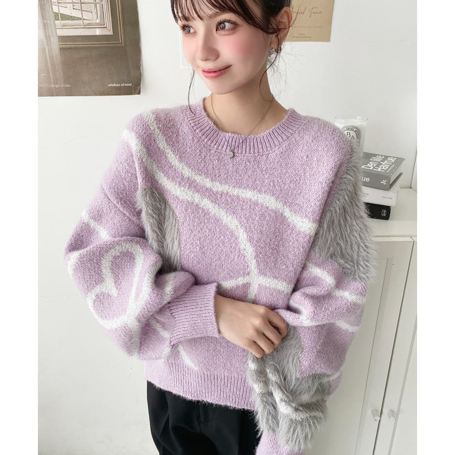 ・ニュアンスカラーで編み込まれたジャガード柄に、ふんわりとしたシャギー素材をドッキング。コーデに表情を添えてくれます◎