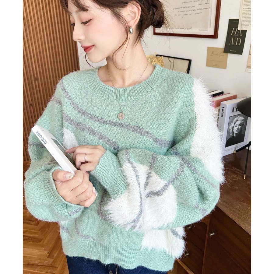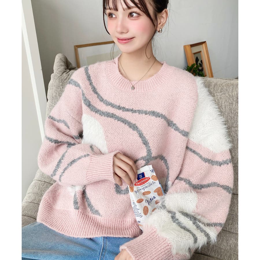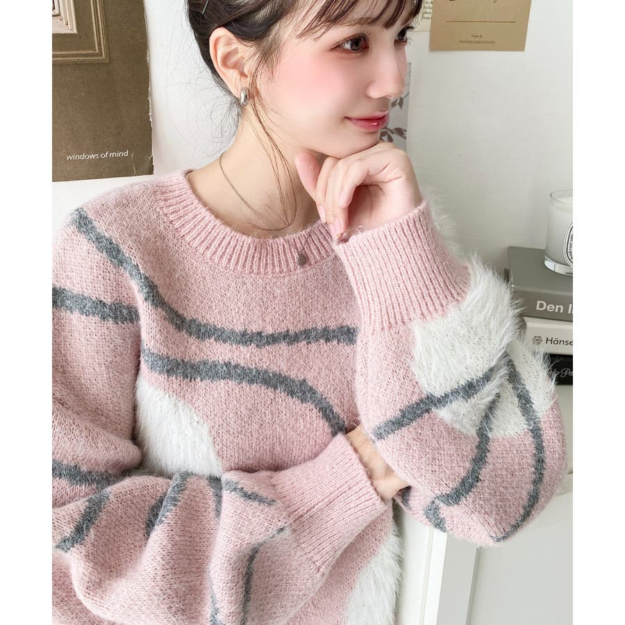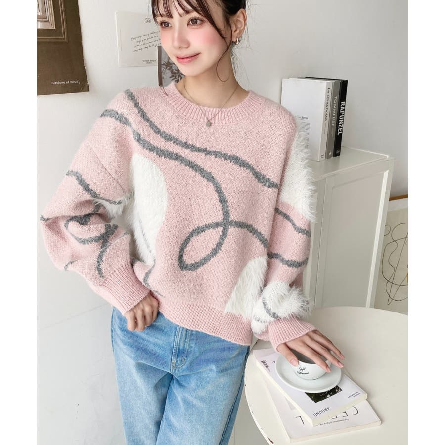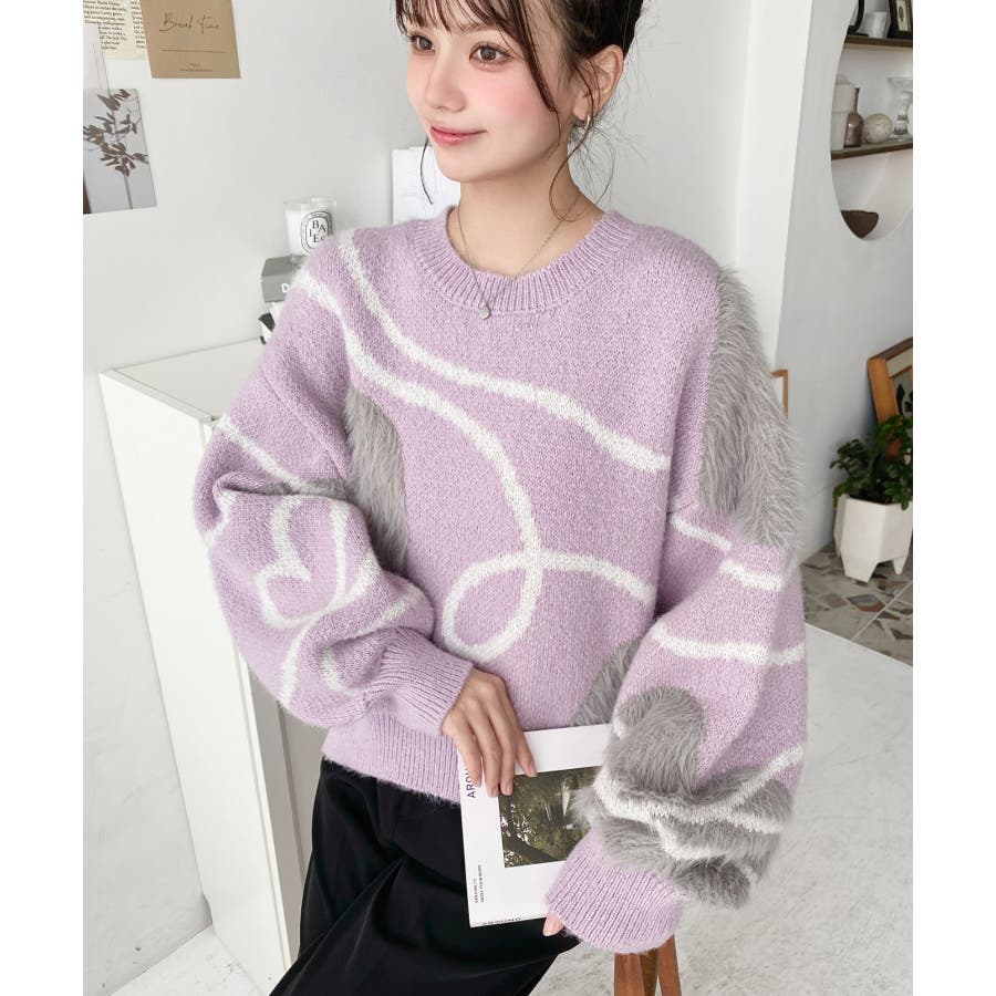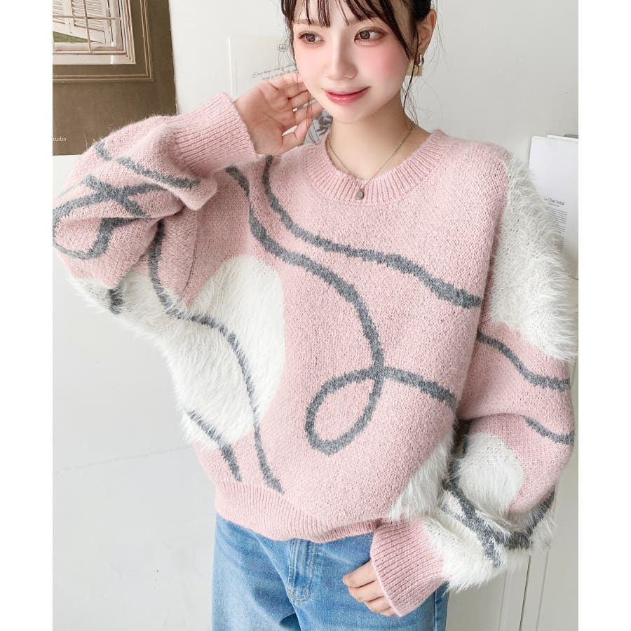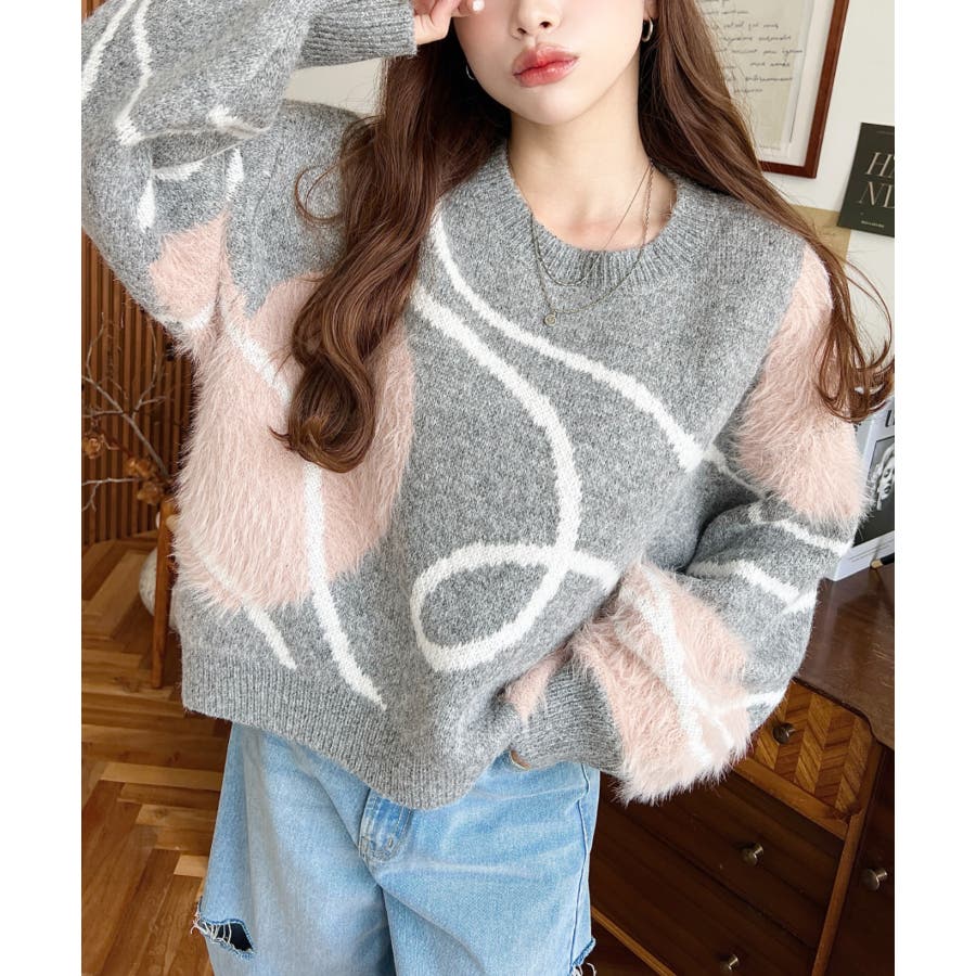 ・ニュアンスカラーで編み込まれたジャガード柄に、ふんわりとしたシャギー素材をドッキング。コーデに表情を添えてくれます◎