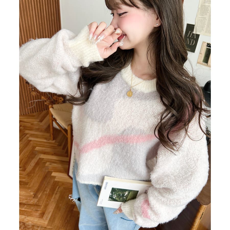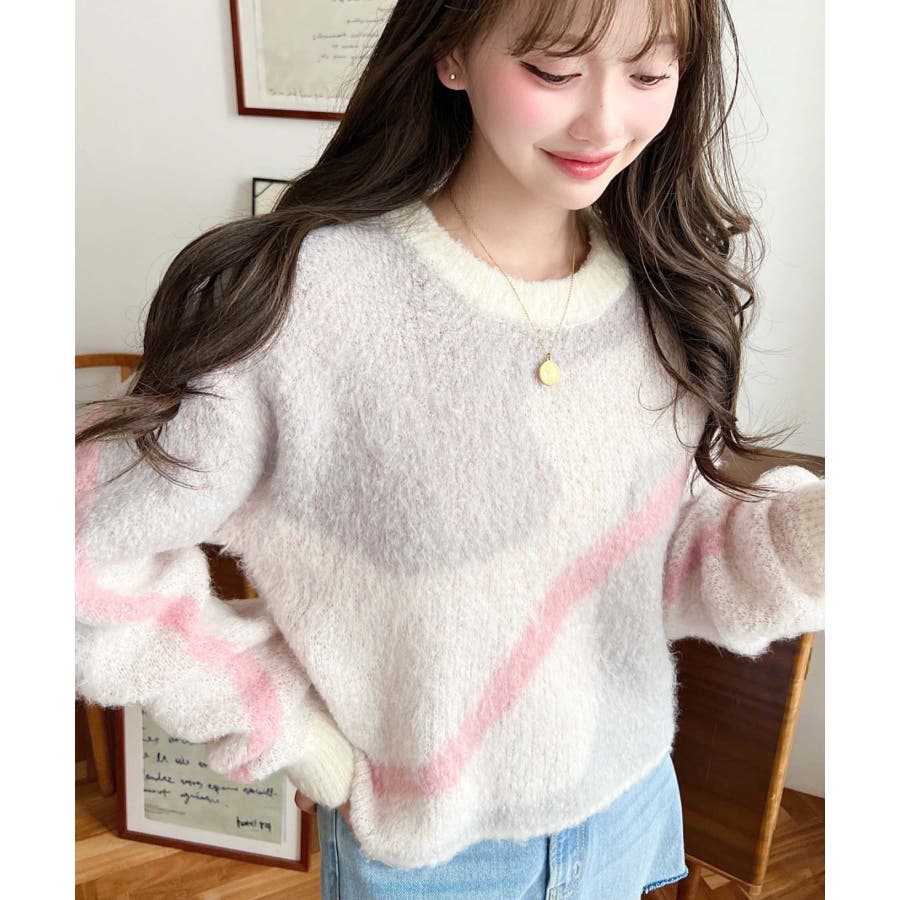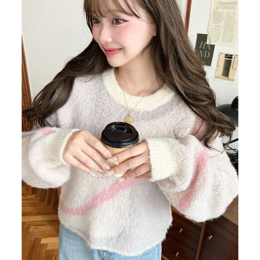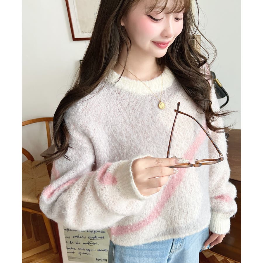 ・ニュアンスのあるライン柄をジャガードで表現したニットプルオーバー。