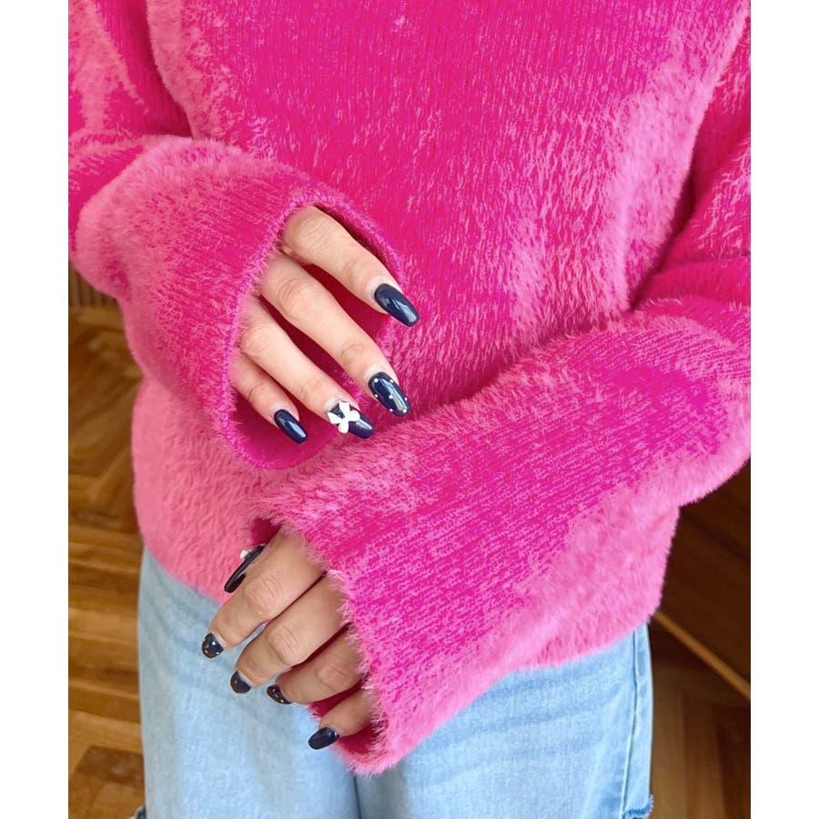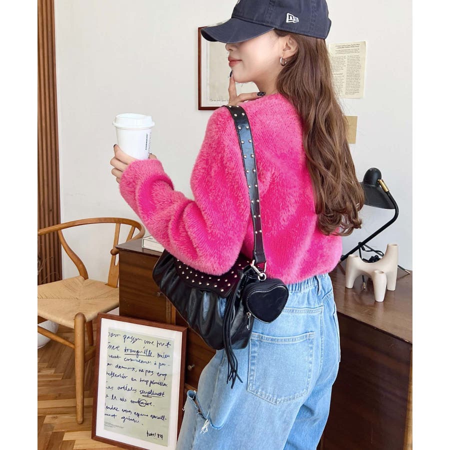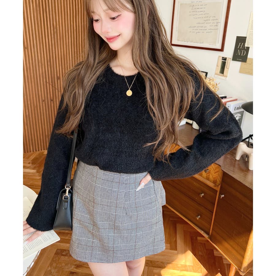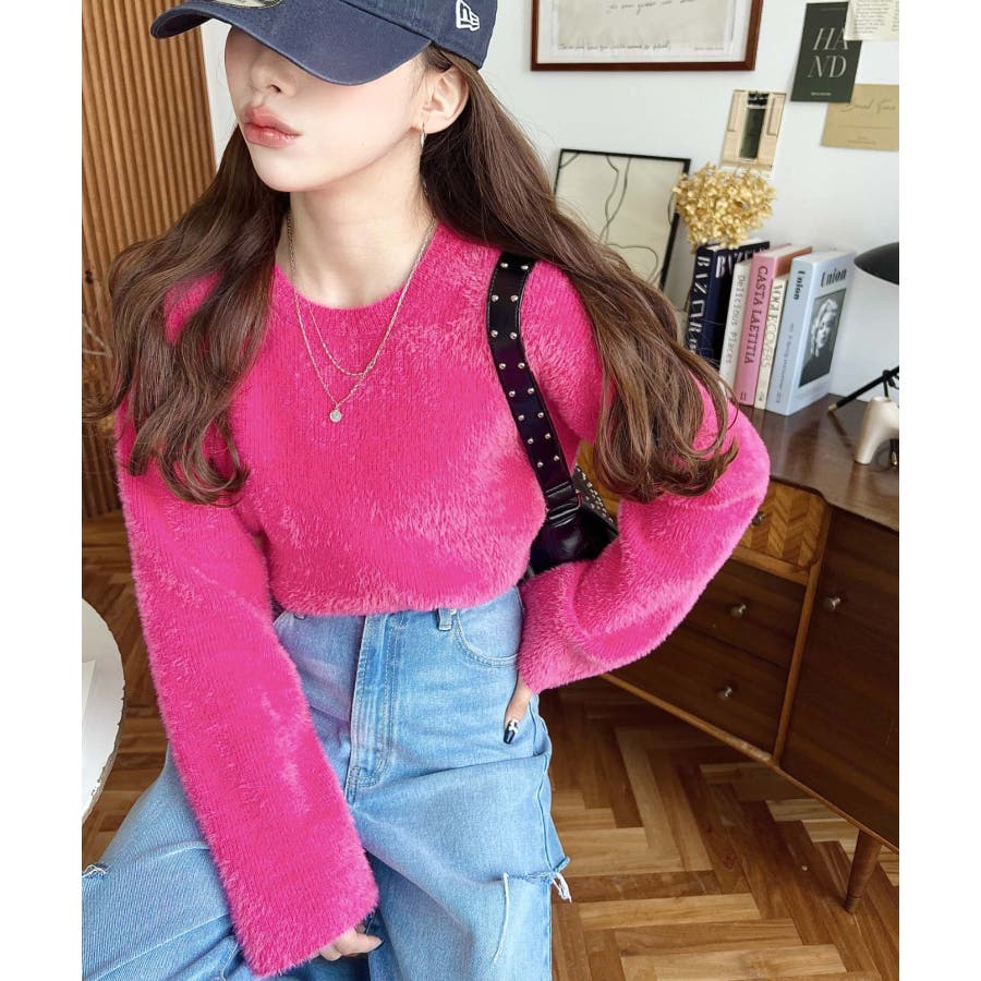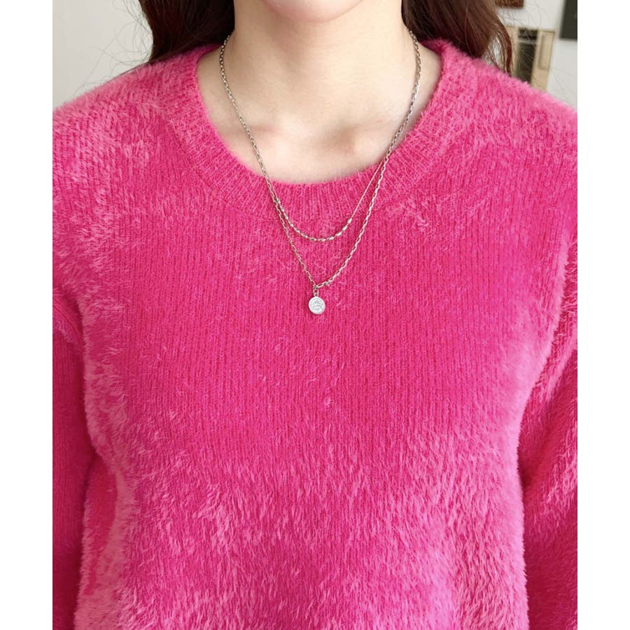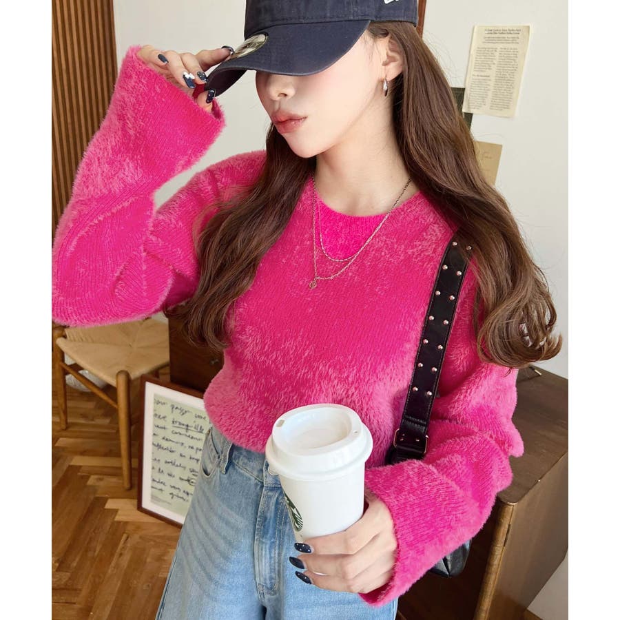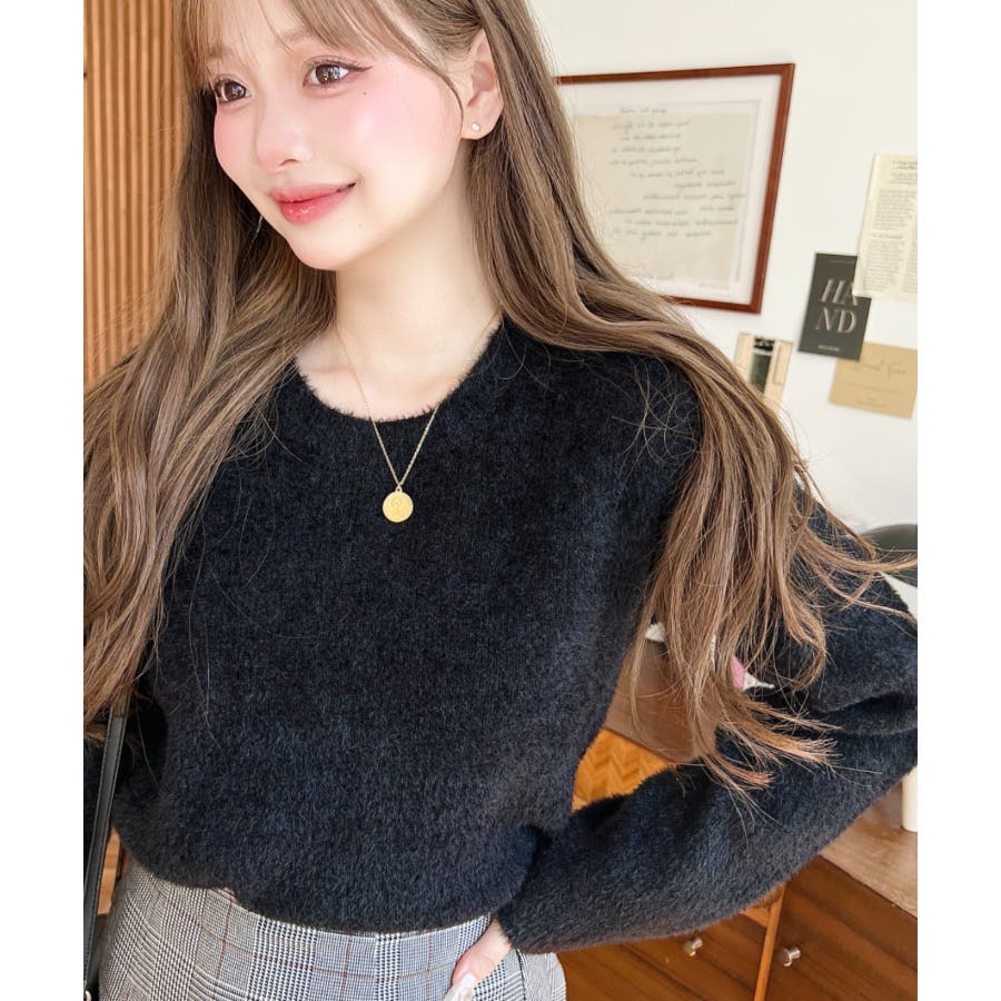 ・コモコのシャギーが柔らかく包み込むような着心地。クールネックとショート丈の組み合わせで軽やかに見え、ラフに着たときも自然に形がキープされます◎