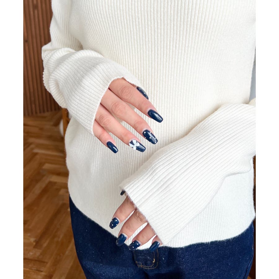 ・身体のラインを自然に拾ってスッキリ見せる細めのリブが着やせ効果に。