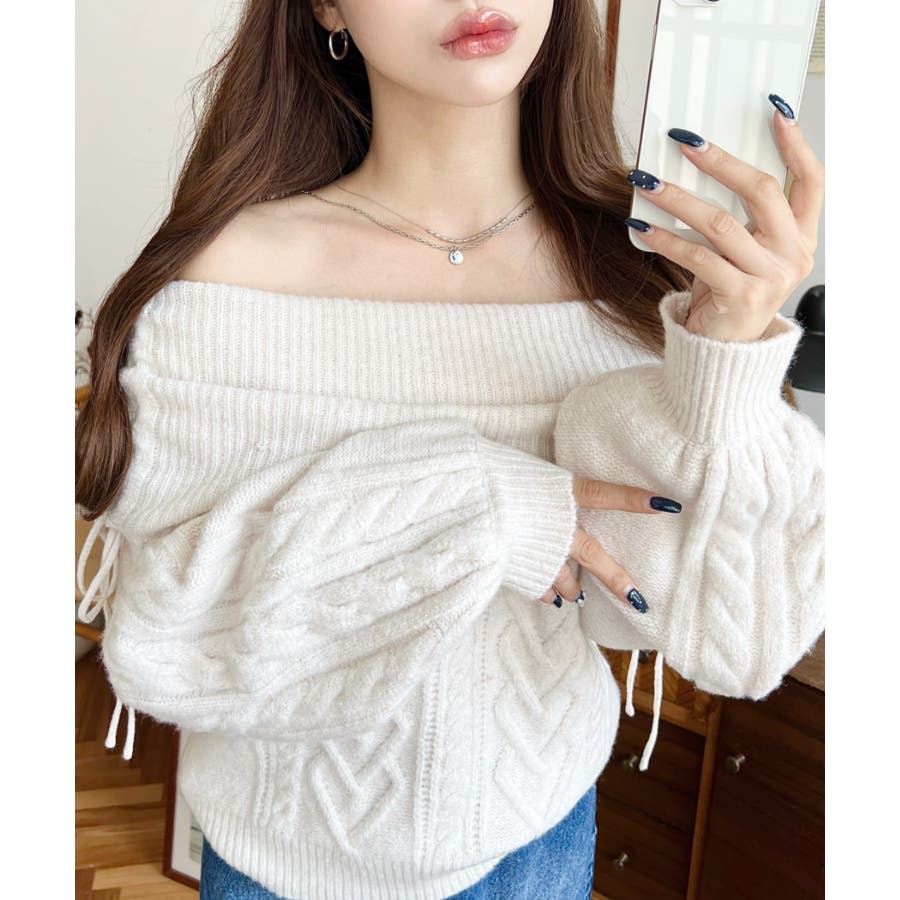 【ケーブル編み×オフショルの抜け感で可愛い要素をたっぷり詰め込んだ、ニットプルオーバーが登場♪】
