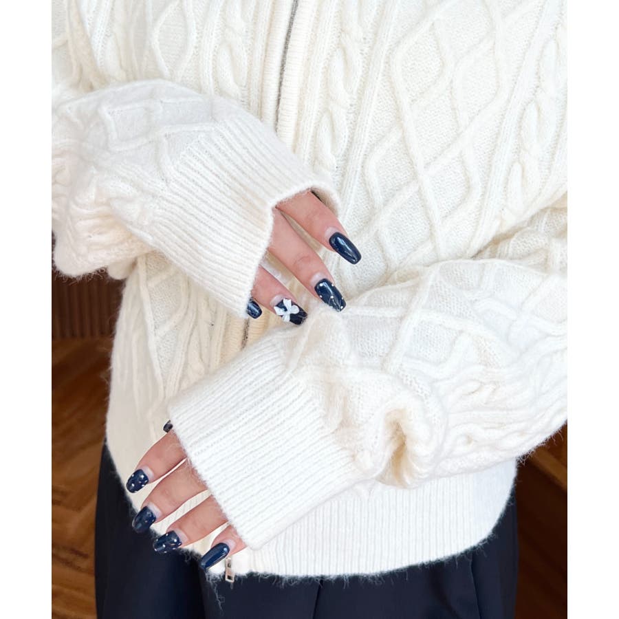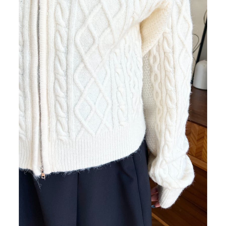 ・ジップアップでカジュアルに着やすい、ケーブルニットのフードカーディガン◎
