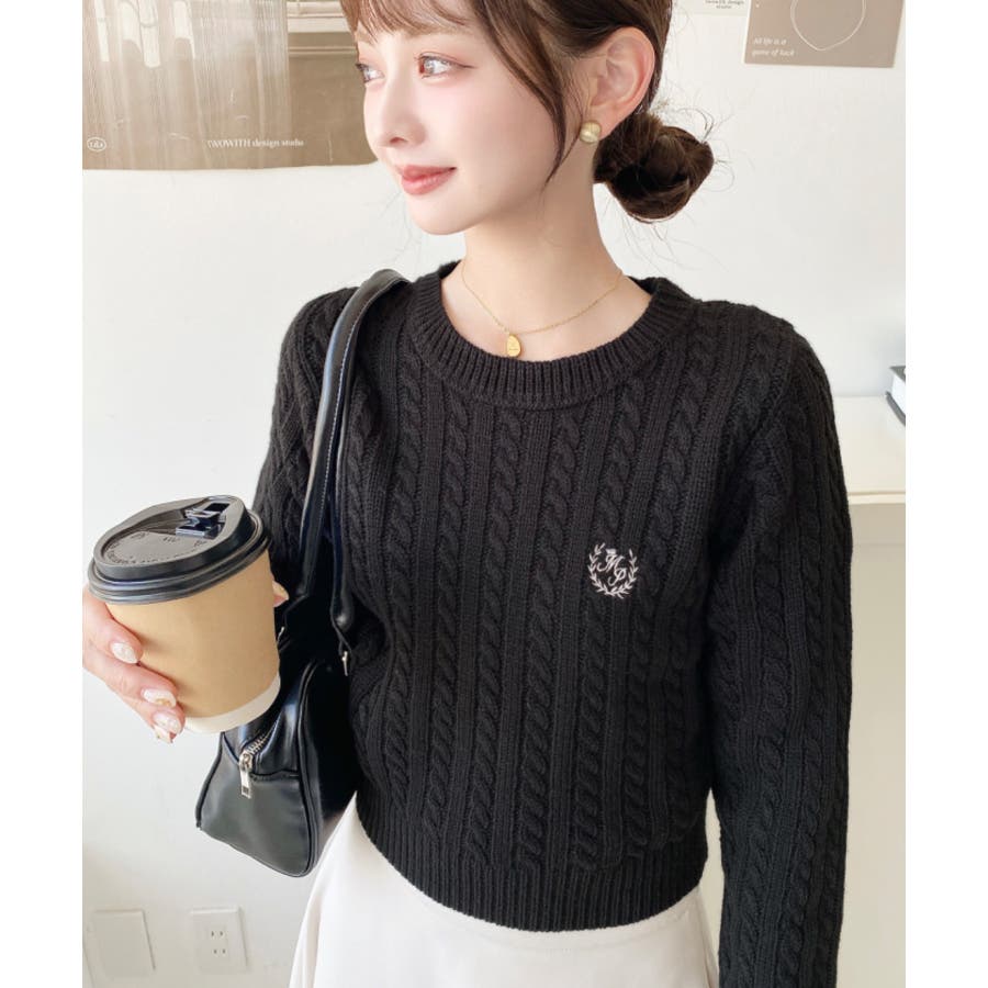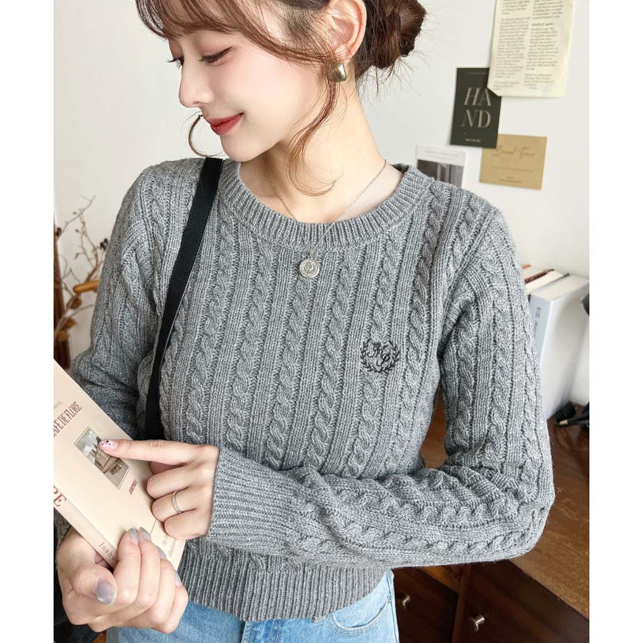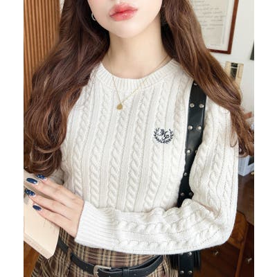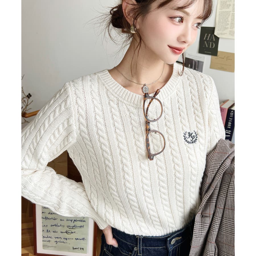 【胸元の刺繍でさりげない可愛さを◎冬の定番、ほっこりかわいいケーブル編みニットが新登場】