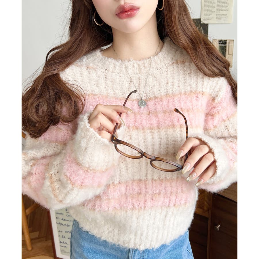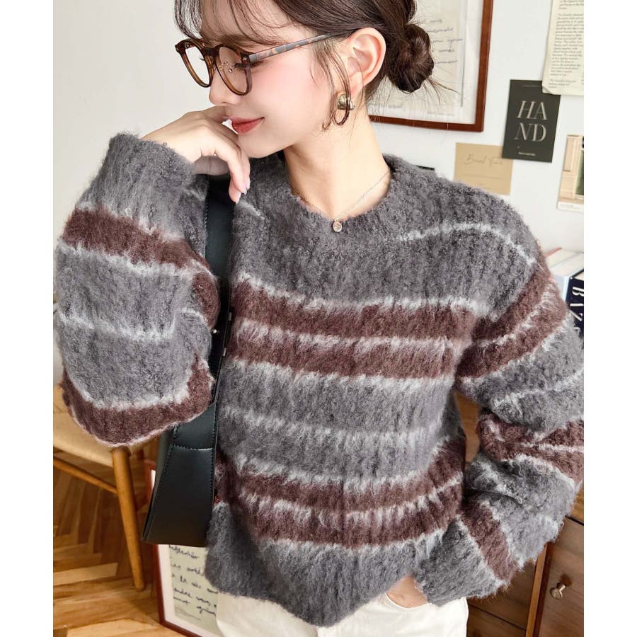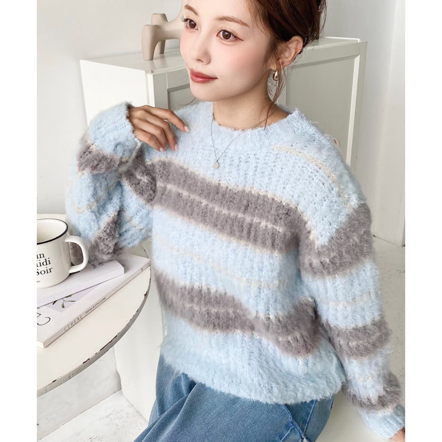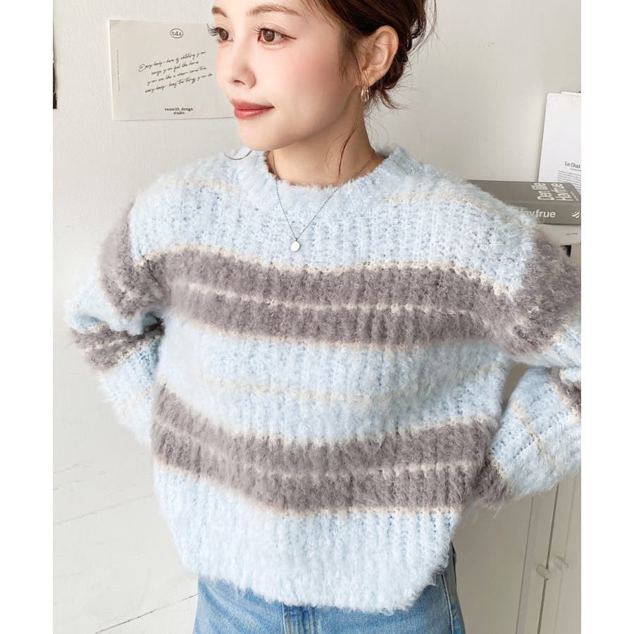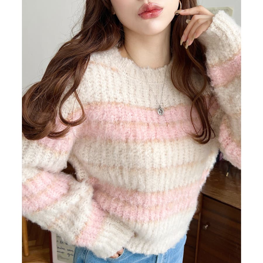 ・ふんわりぼかしのボーダー柄がかわいいニット♪