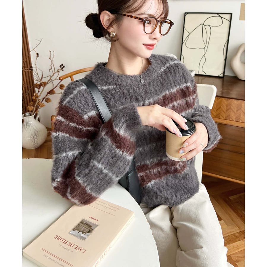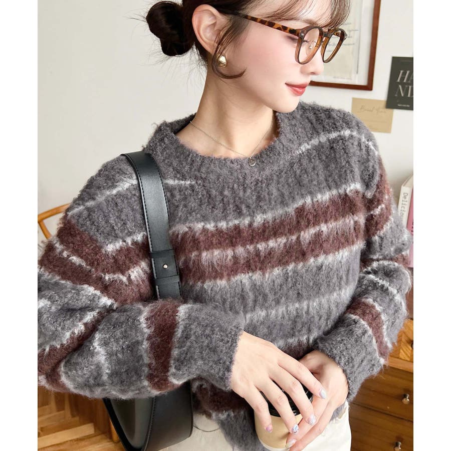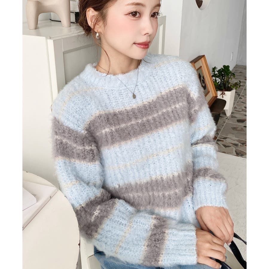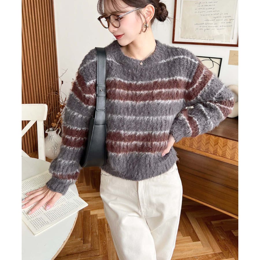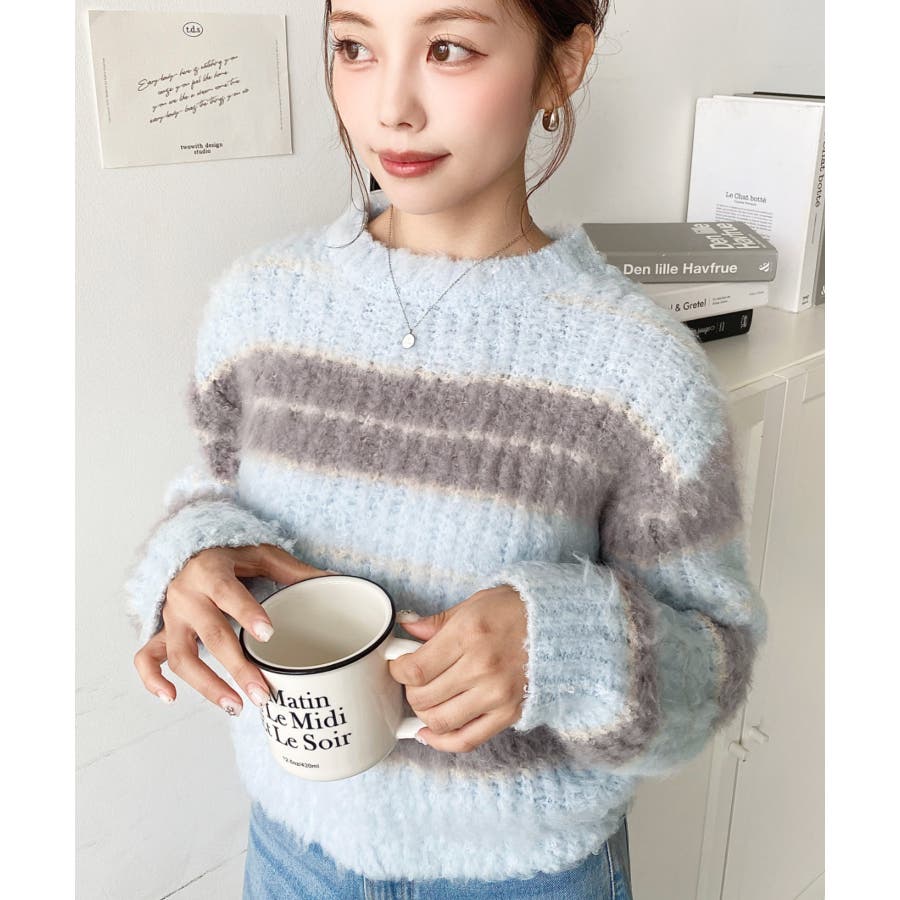 ・ふんわりぼかしのボーダー柄がかわいいニット♪