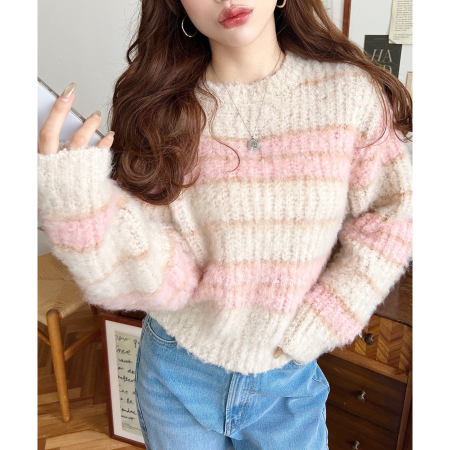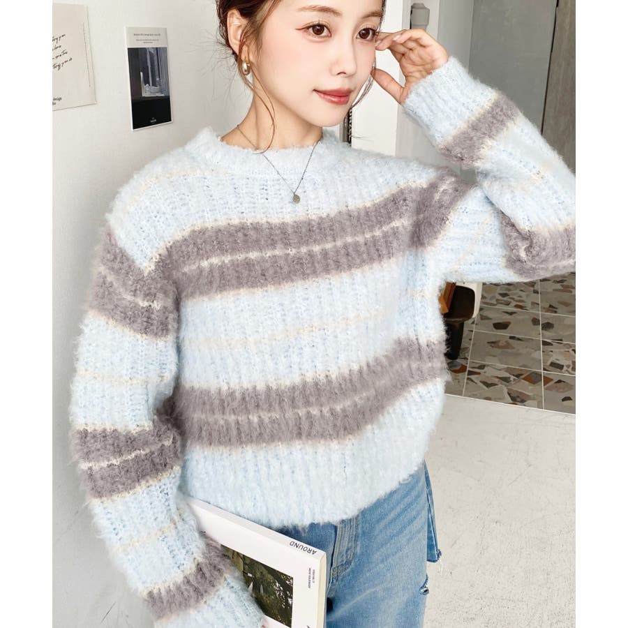 【一枚でカジュアルフェミニンガールに♪映えふんわりボーダーニット登場!】
