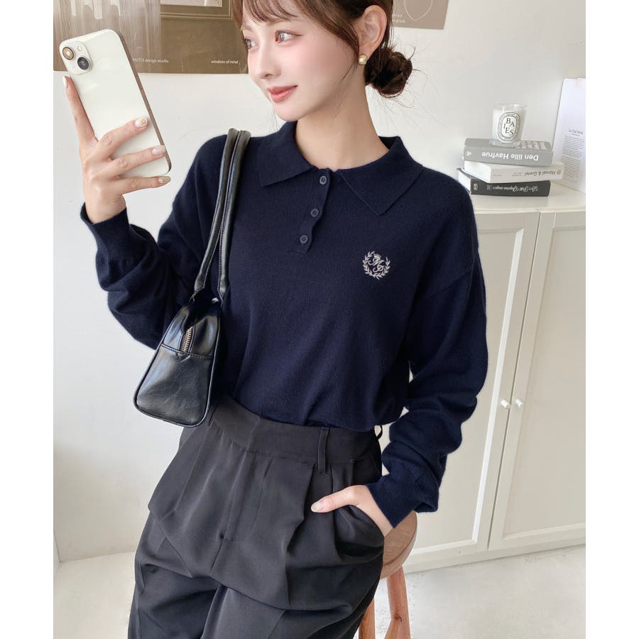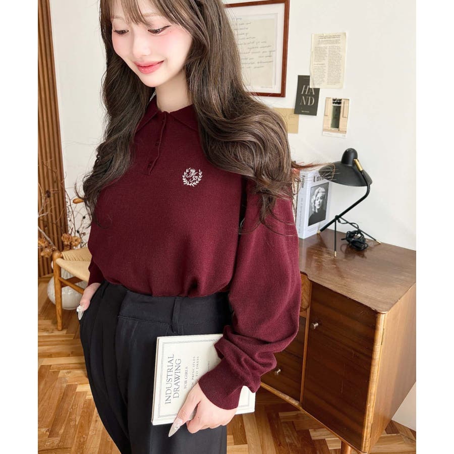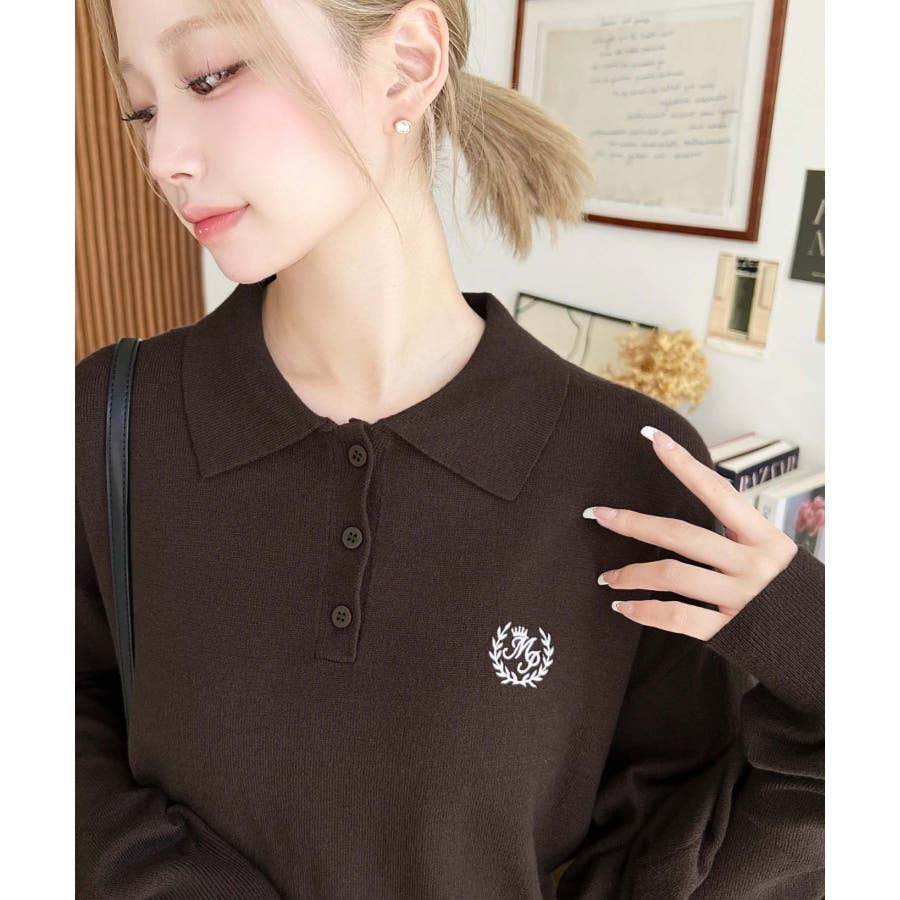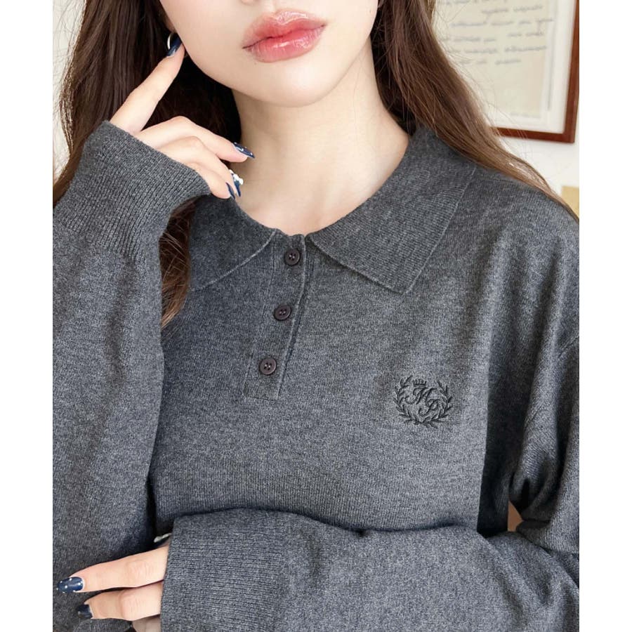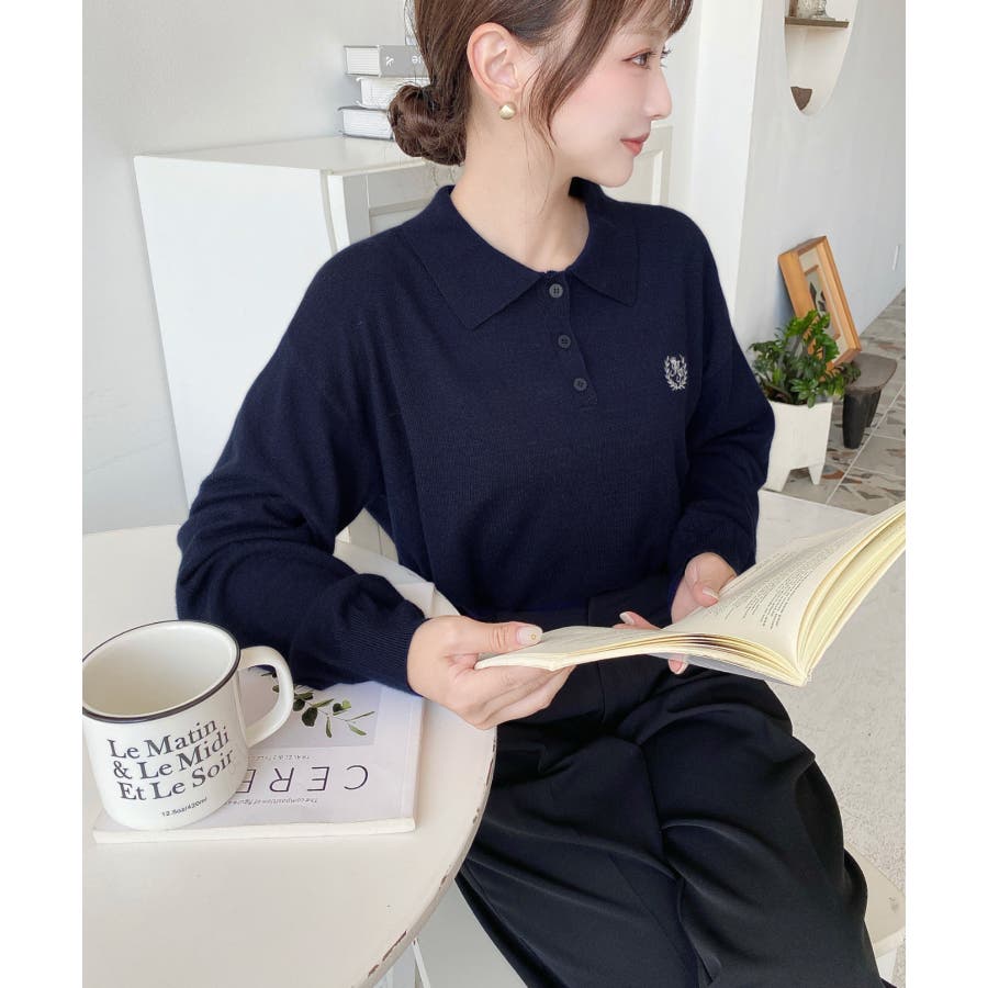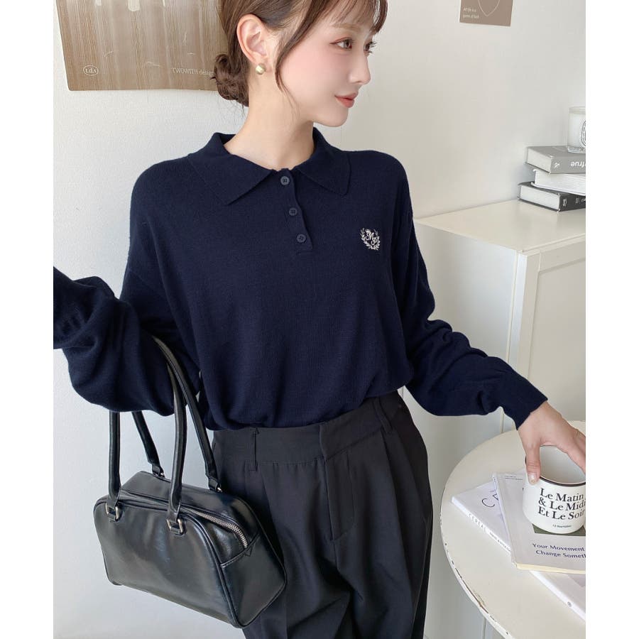 ・ロゴ刺繍の配色カラーがマニッシュなムード漂うゆるっとしたシルエットのポロニット。