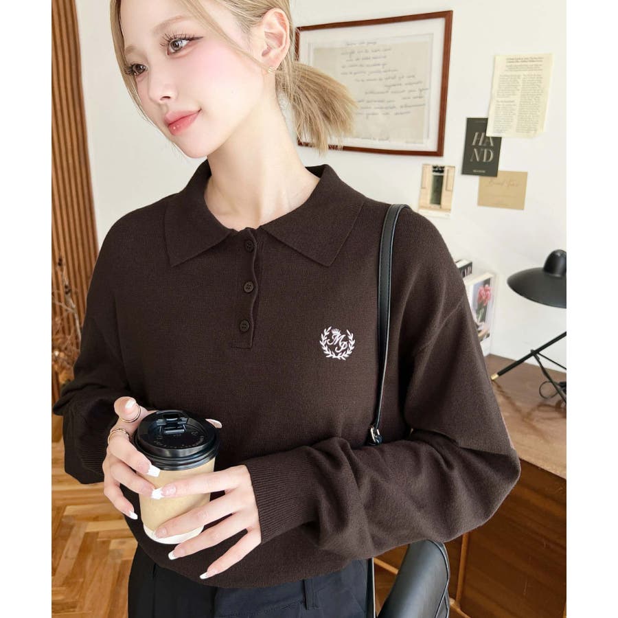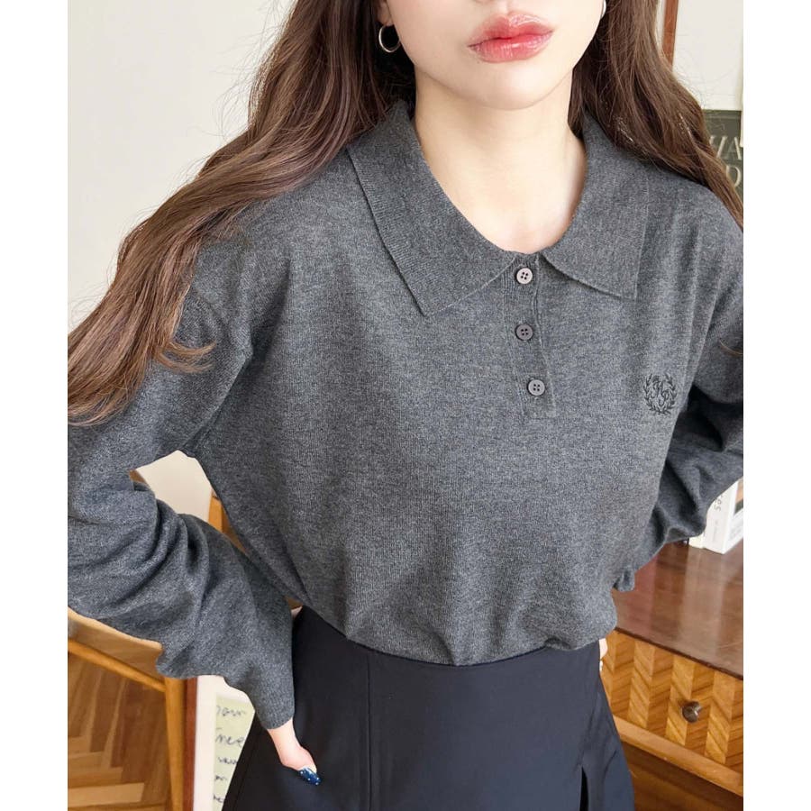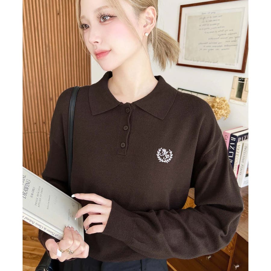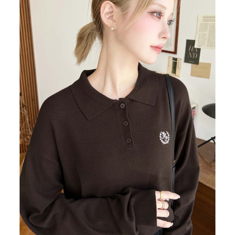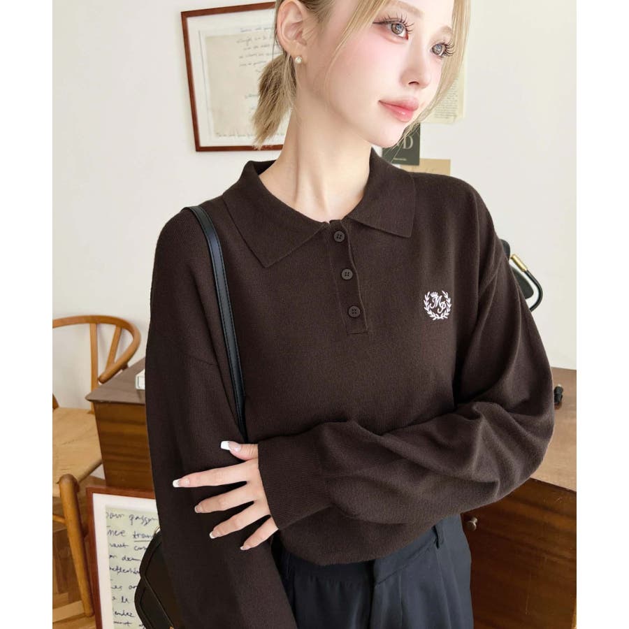 ・ロゴ刺繍の配色カラーがマニッシュなムード漂うゆるっとしたシルエットのポロニット。