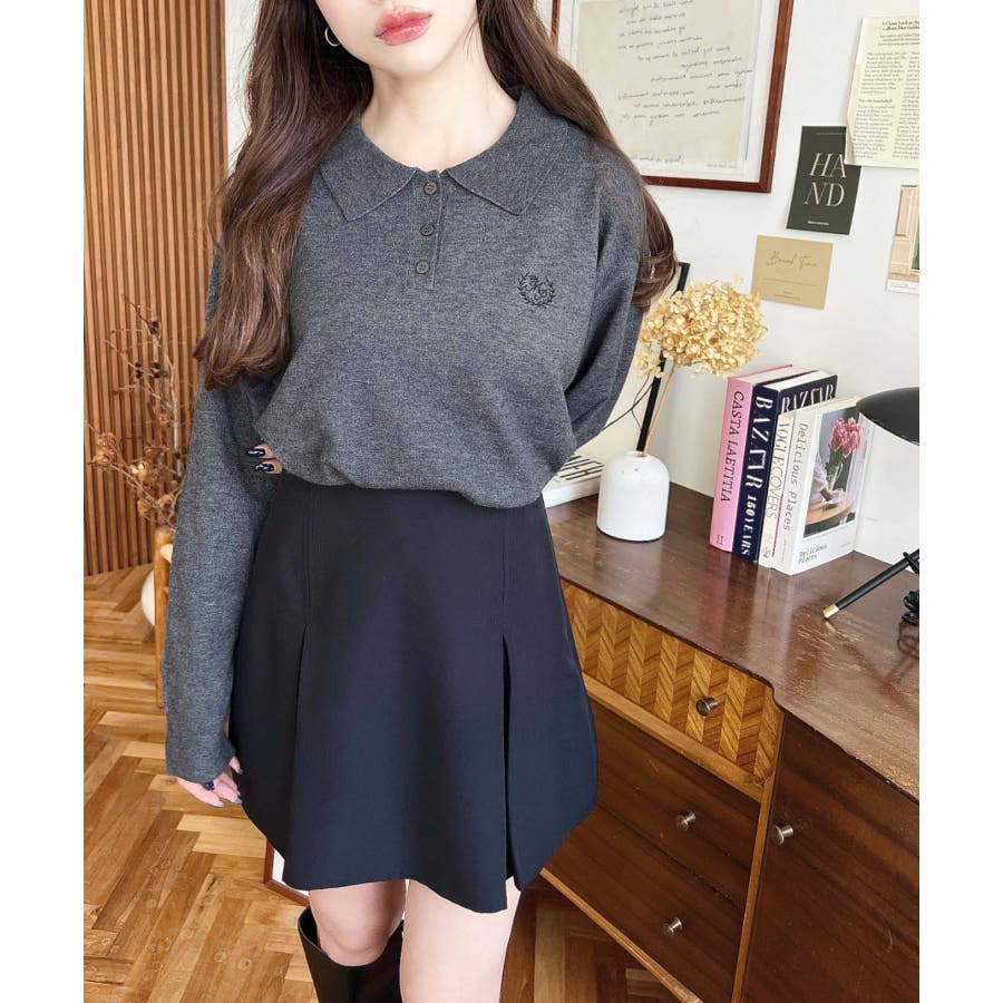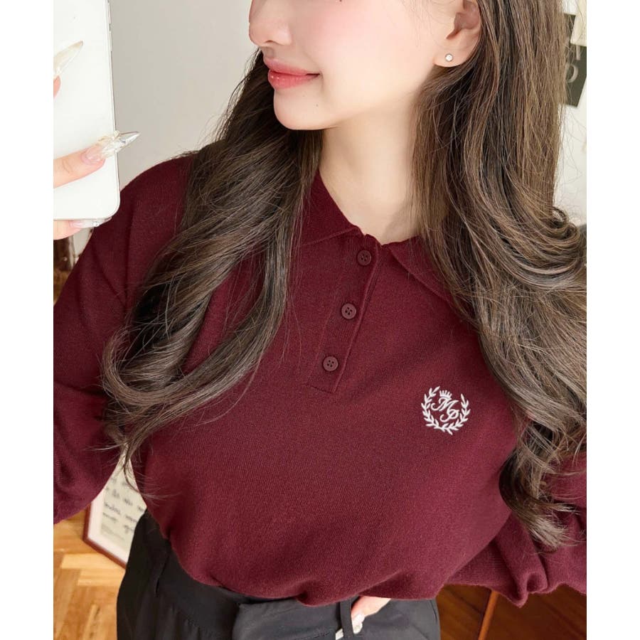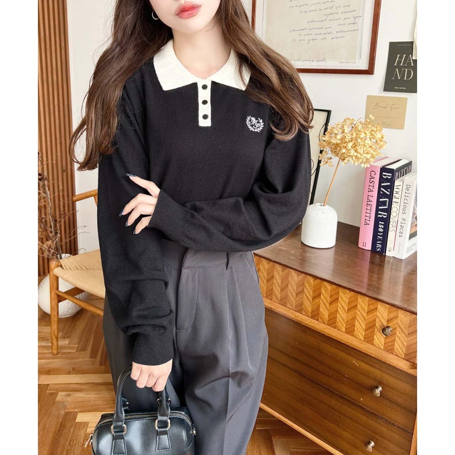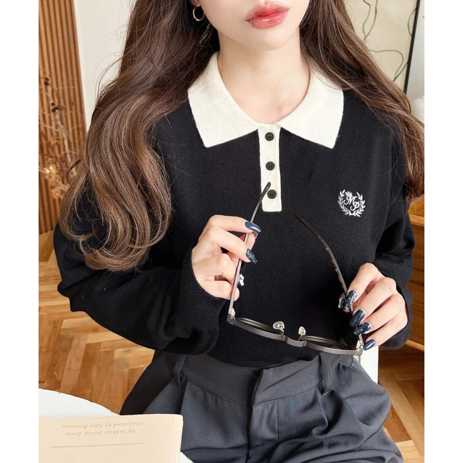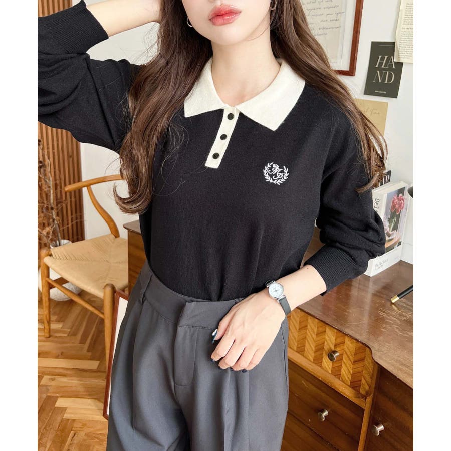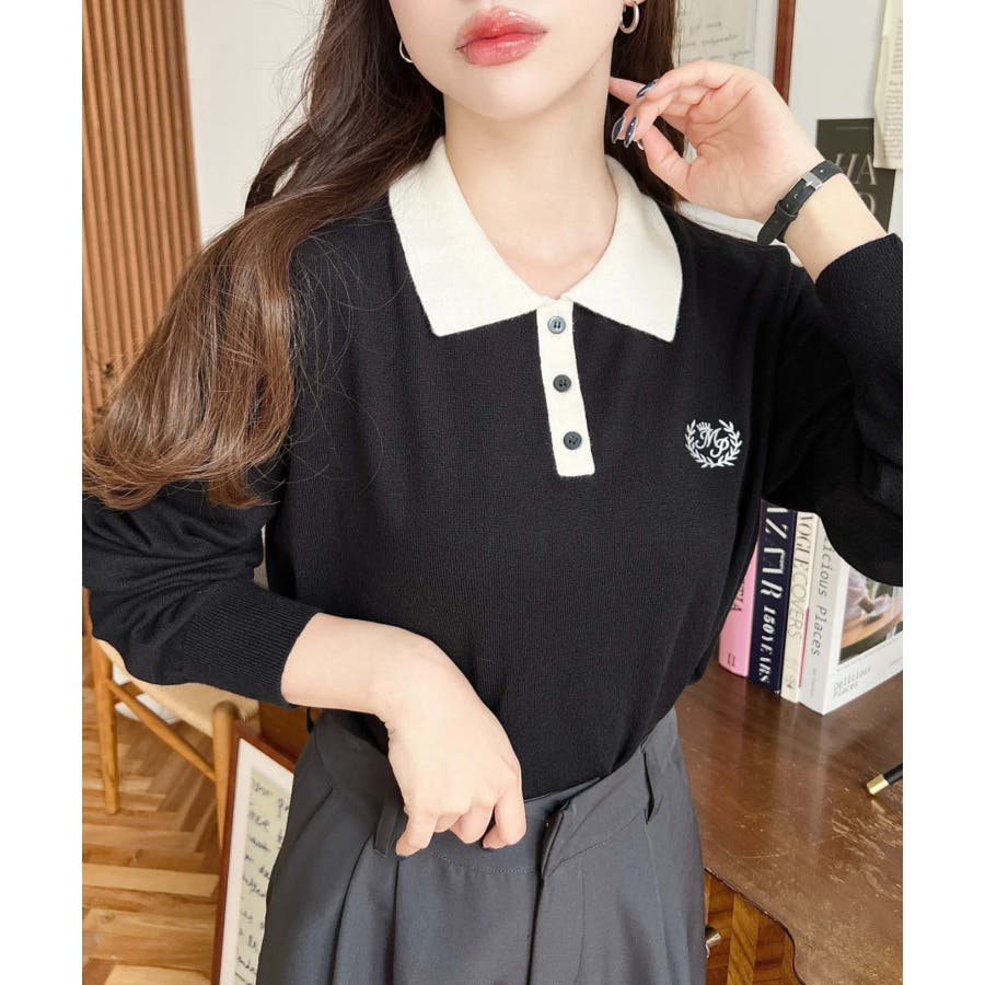 ・ロゴ刺繍の配色カラーがマニッシュなムード漂うゆるっとしたシルエットのポロニット。