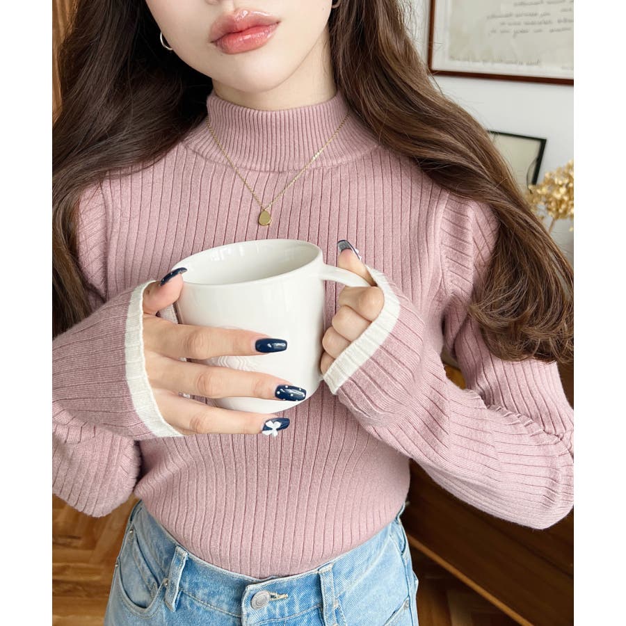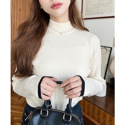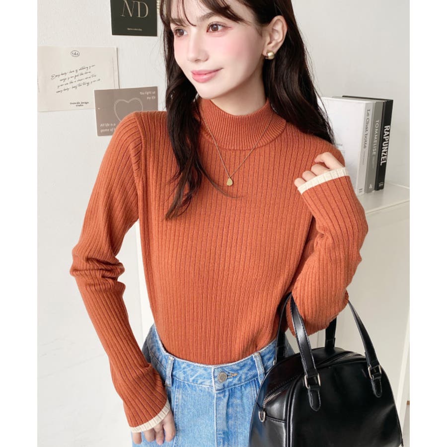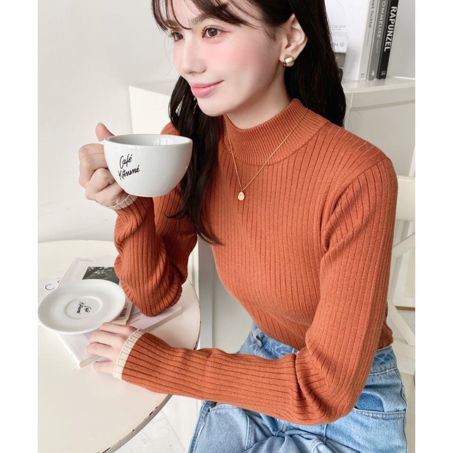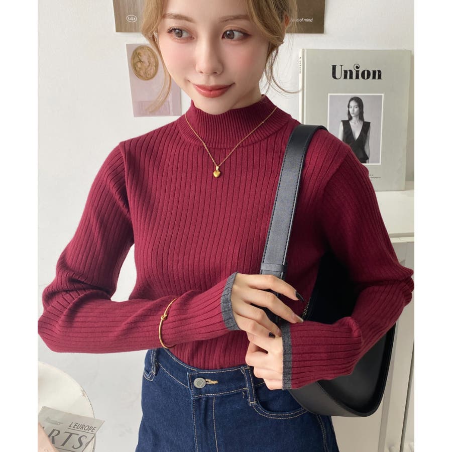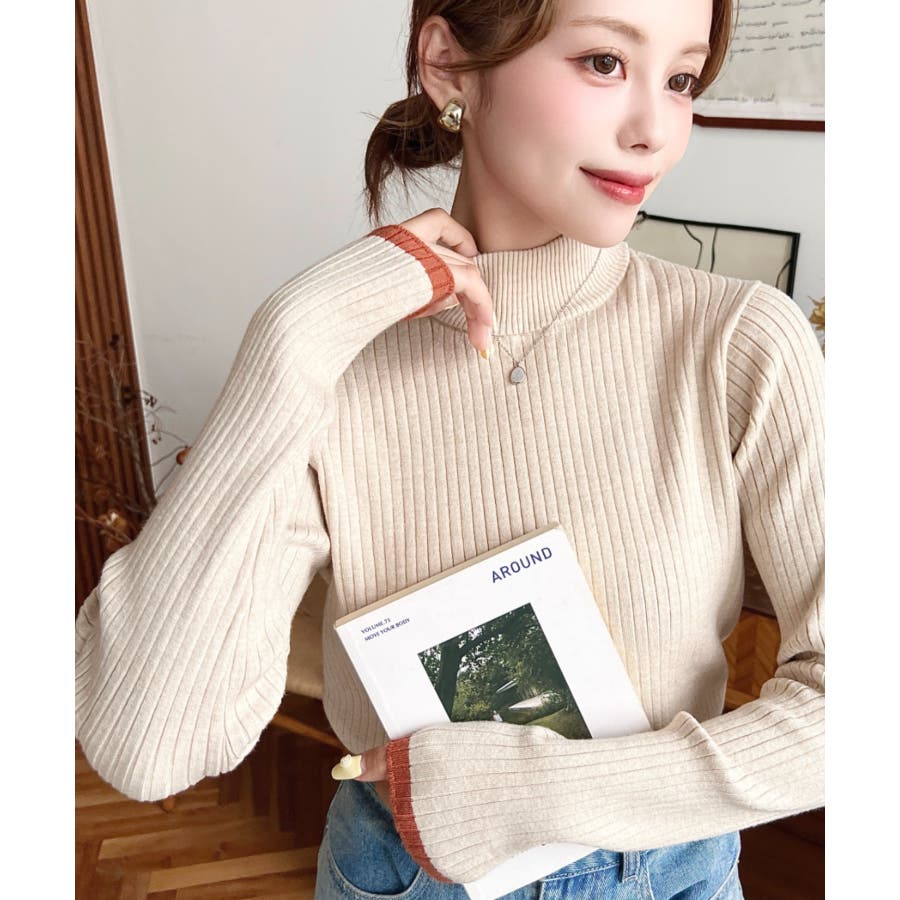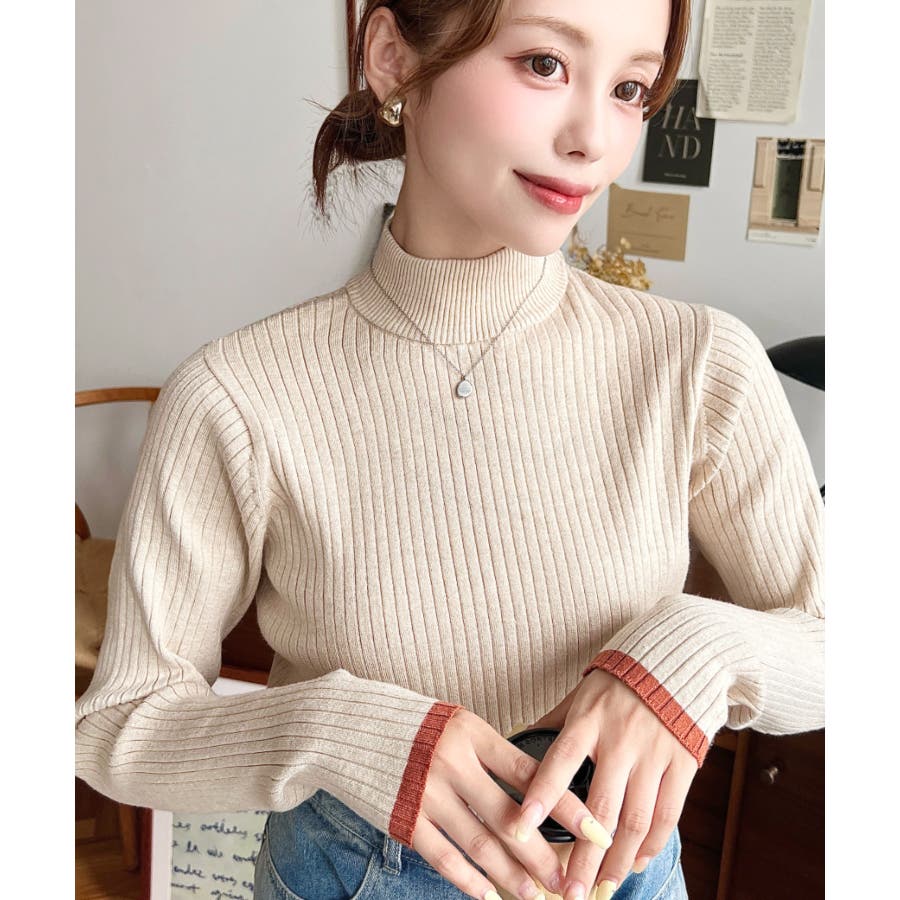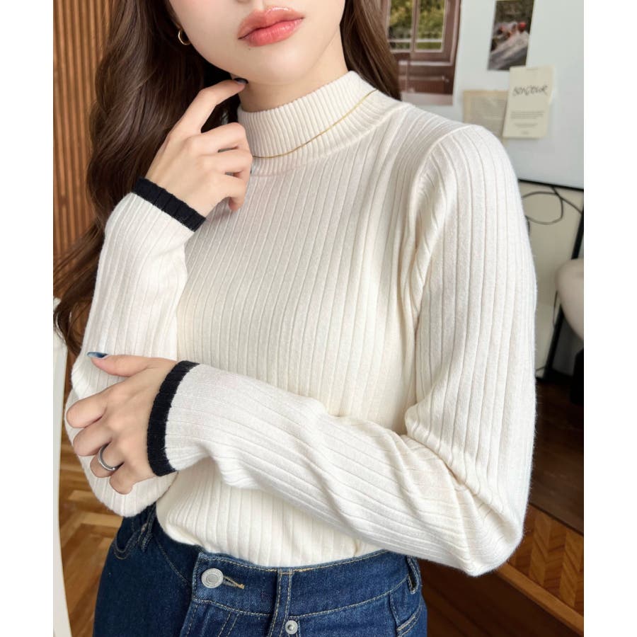 【配色デザインが目を惹く可愛さ◎大人気ボトルネックリブニットが新登場!】