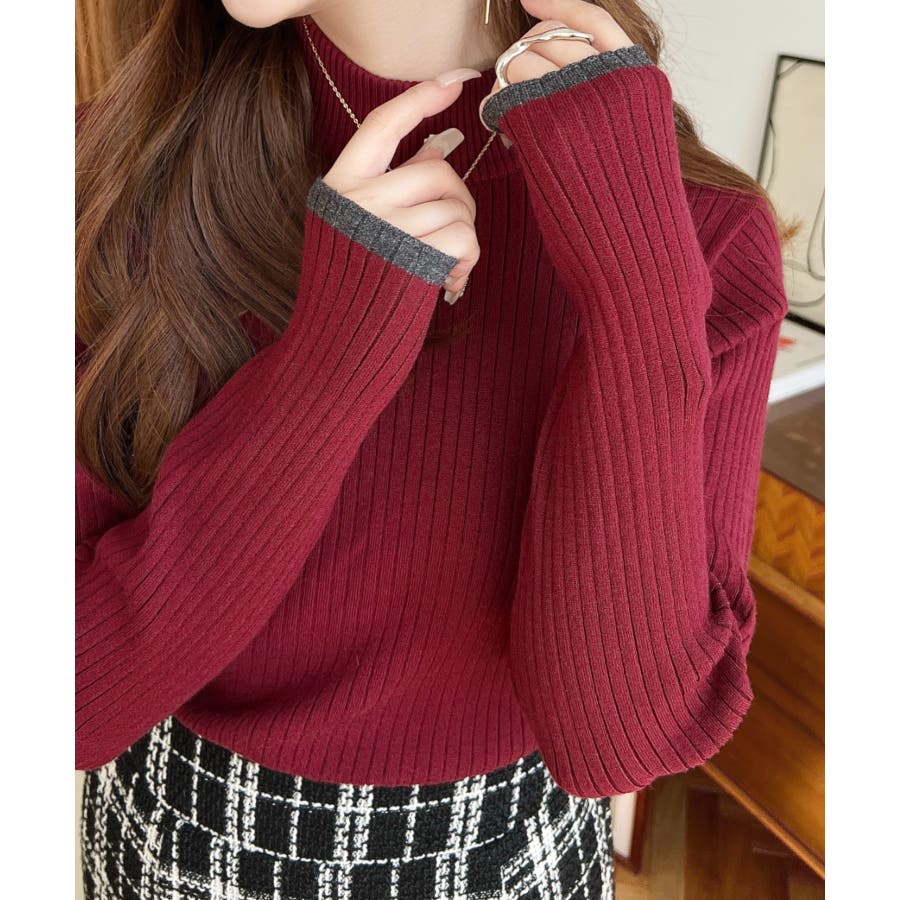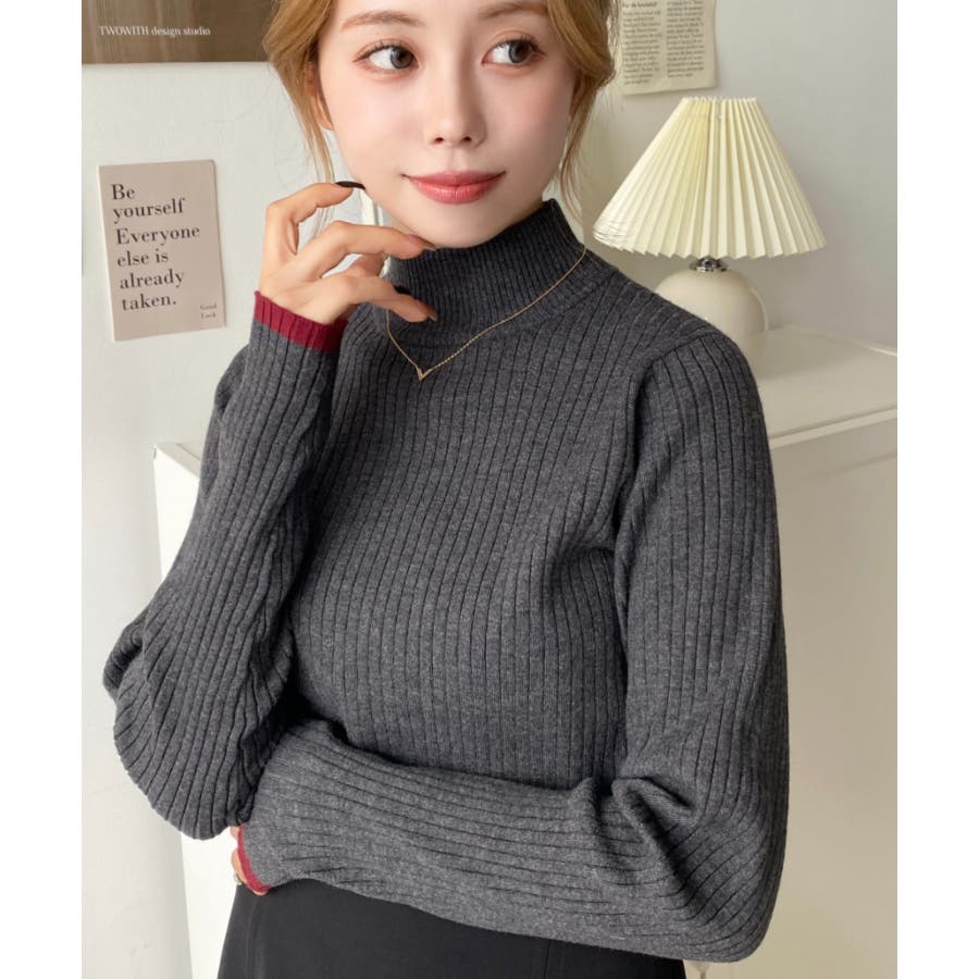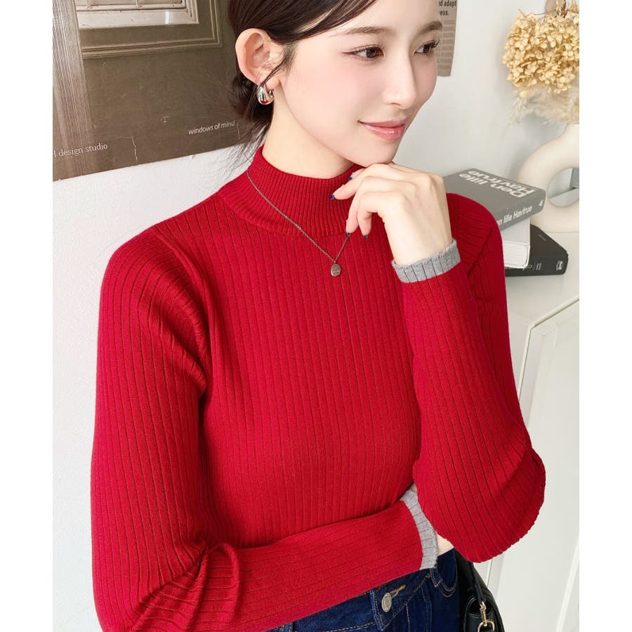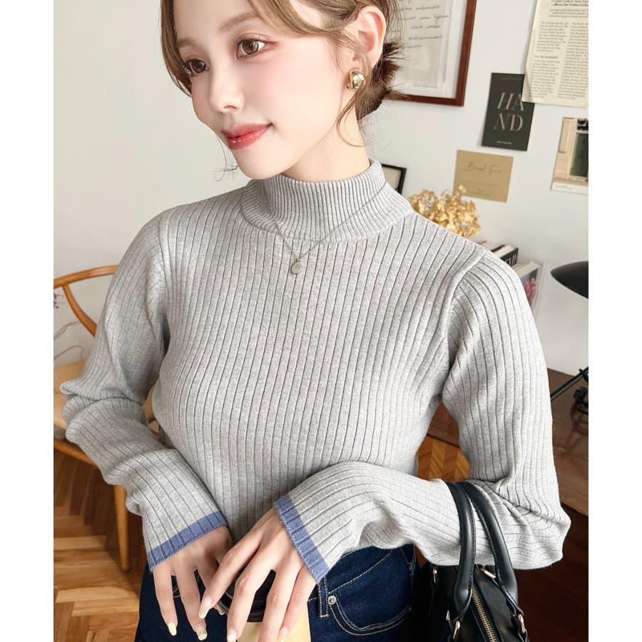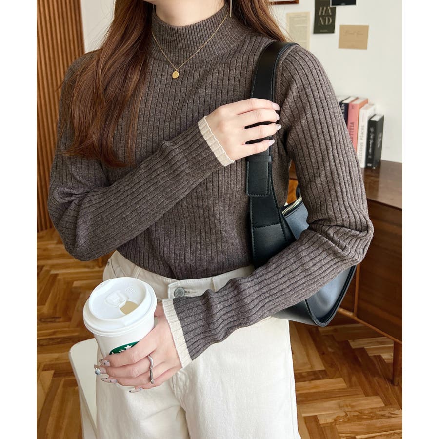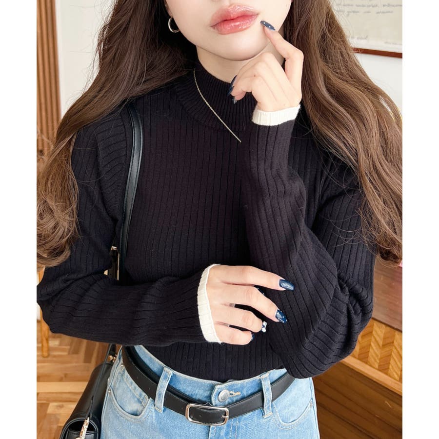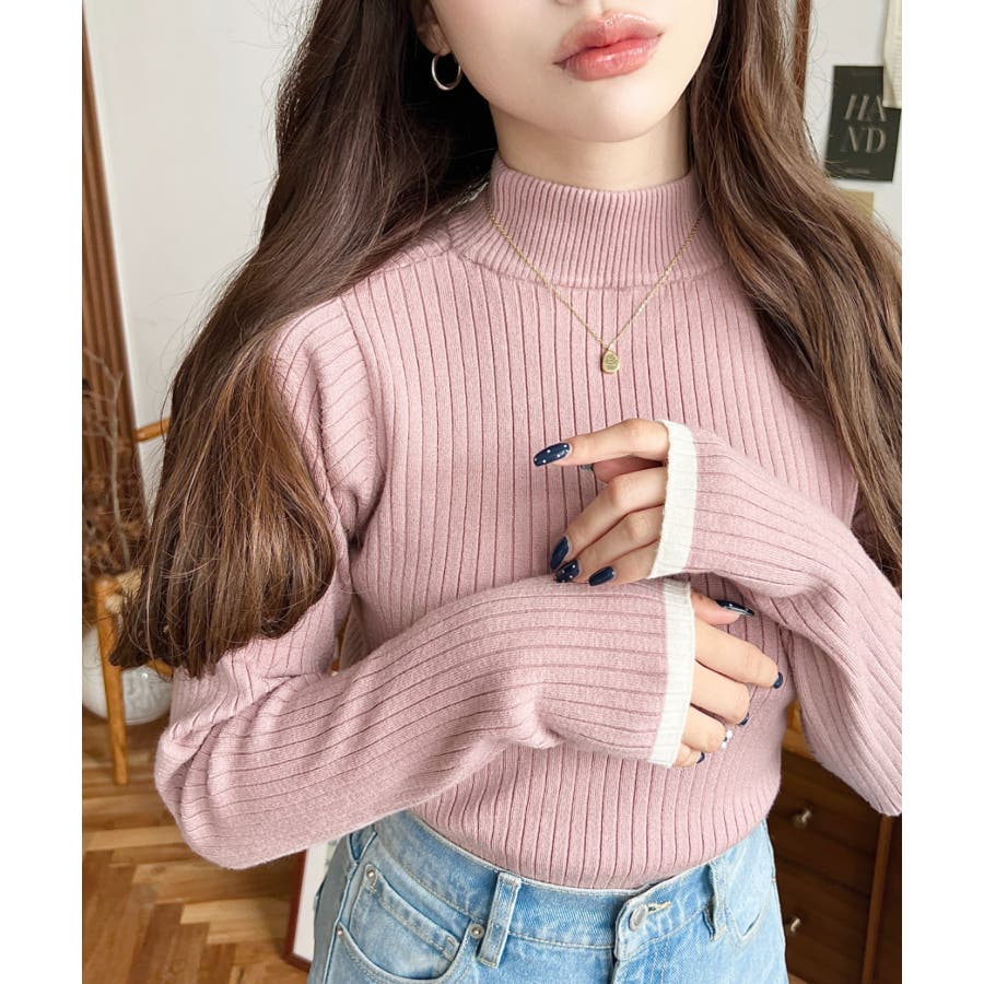 【配色デザインが目を惹く可愛さ◎大人気ボトルネックリブニットが新登場!】