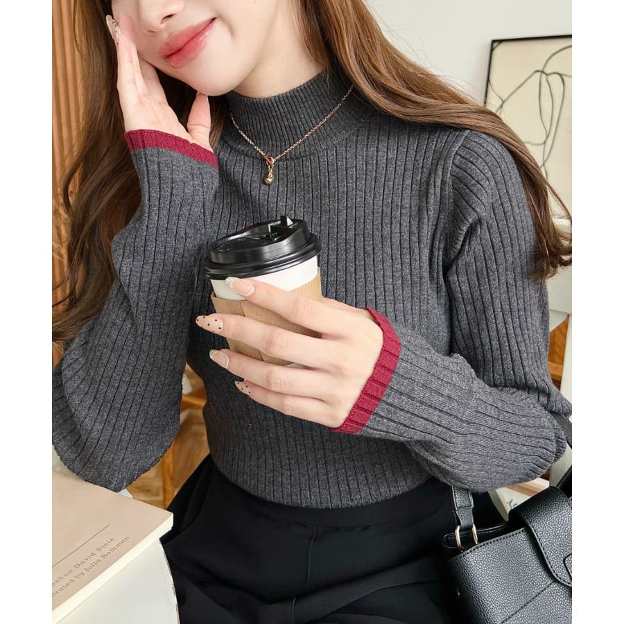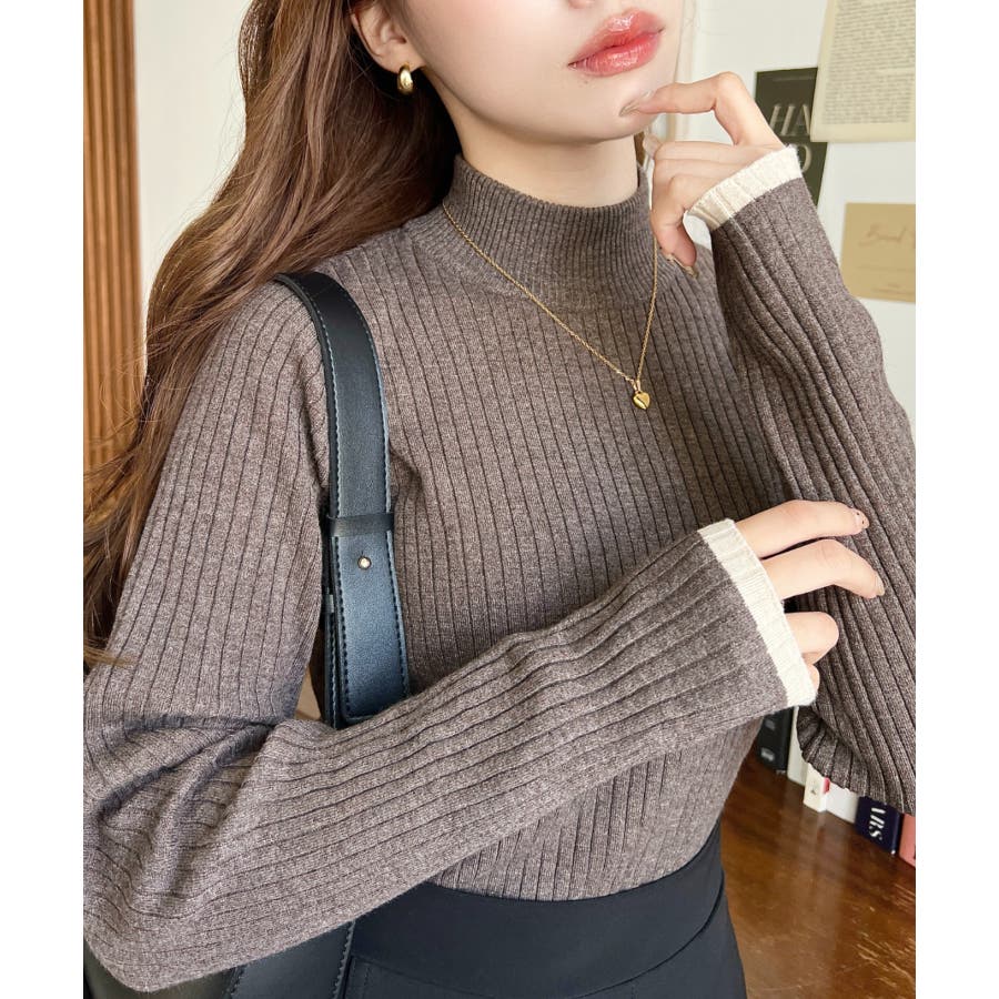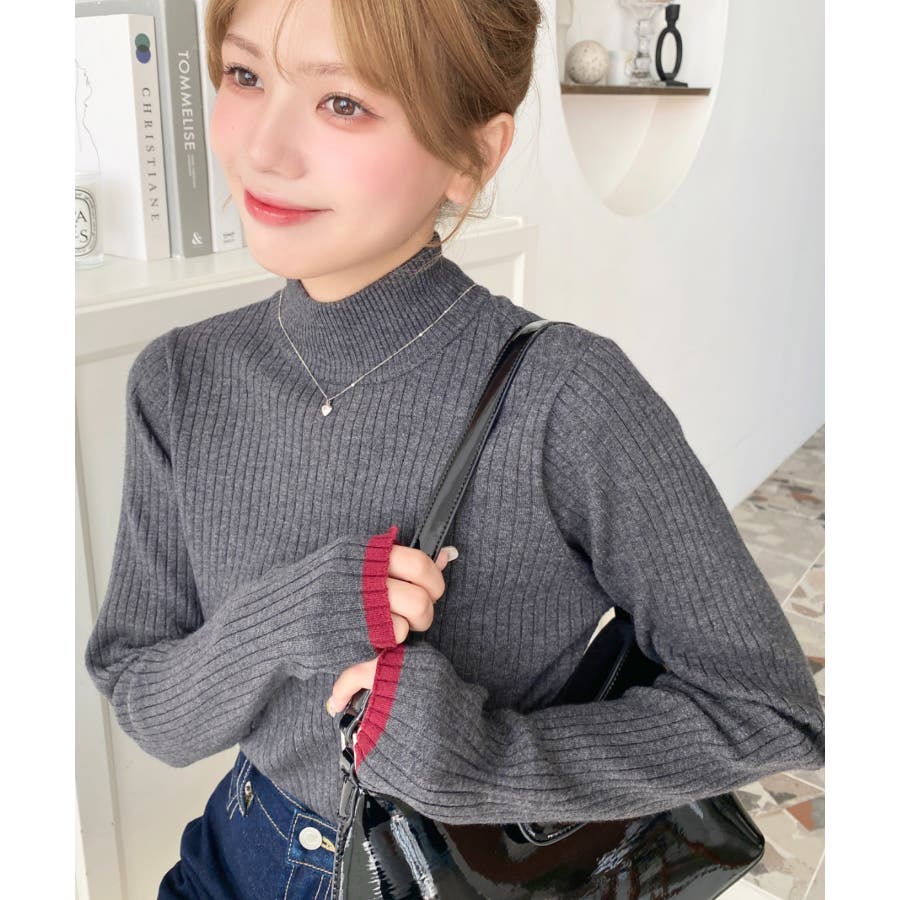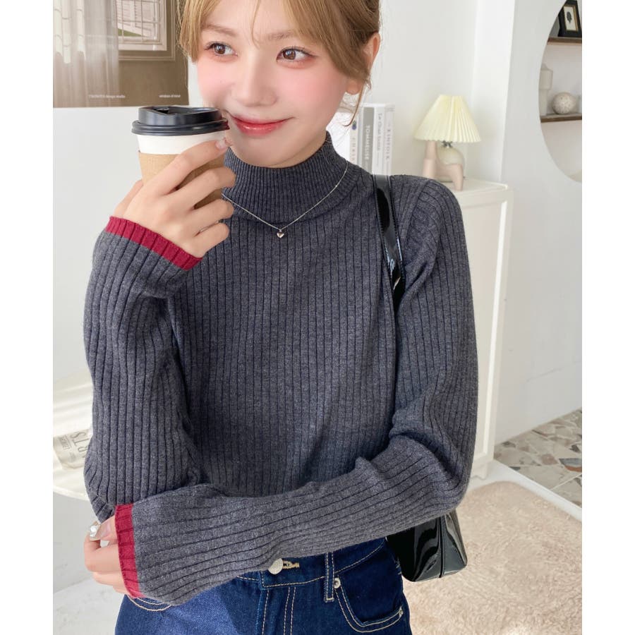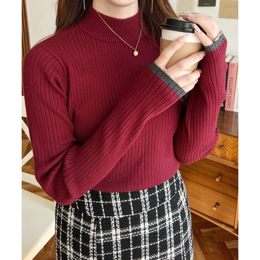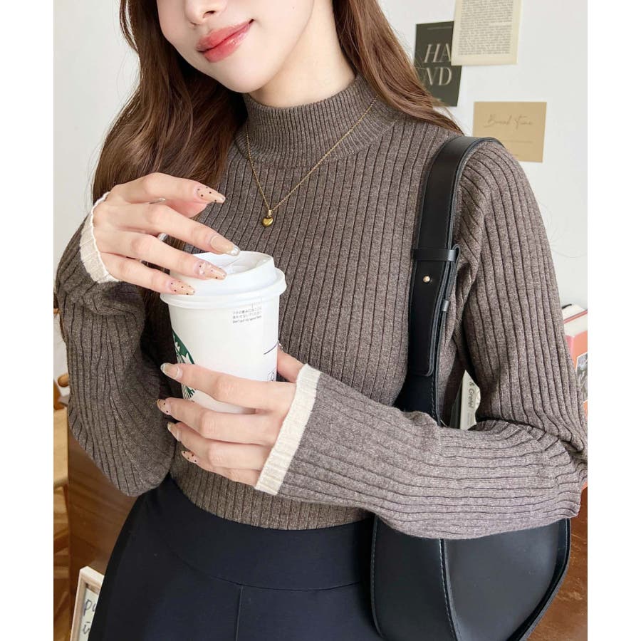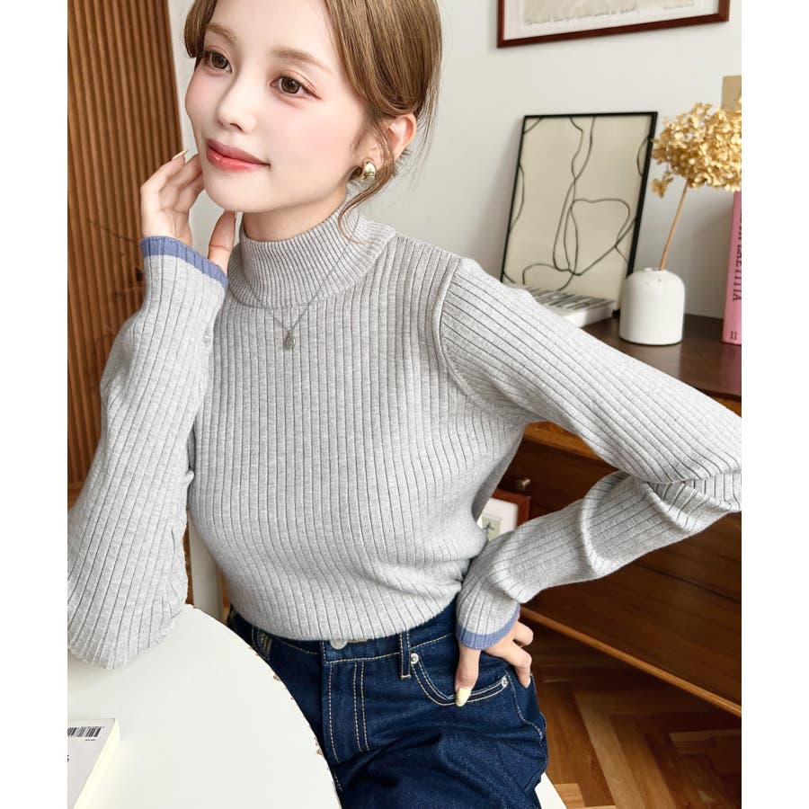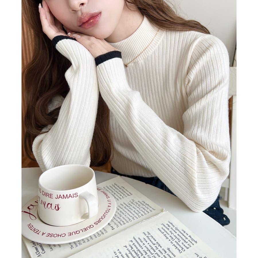 【配色デザインが目を惹く可愛さ◎大人気ボトルネックリブニットが新登場!】