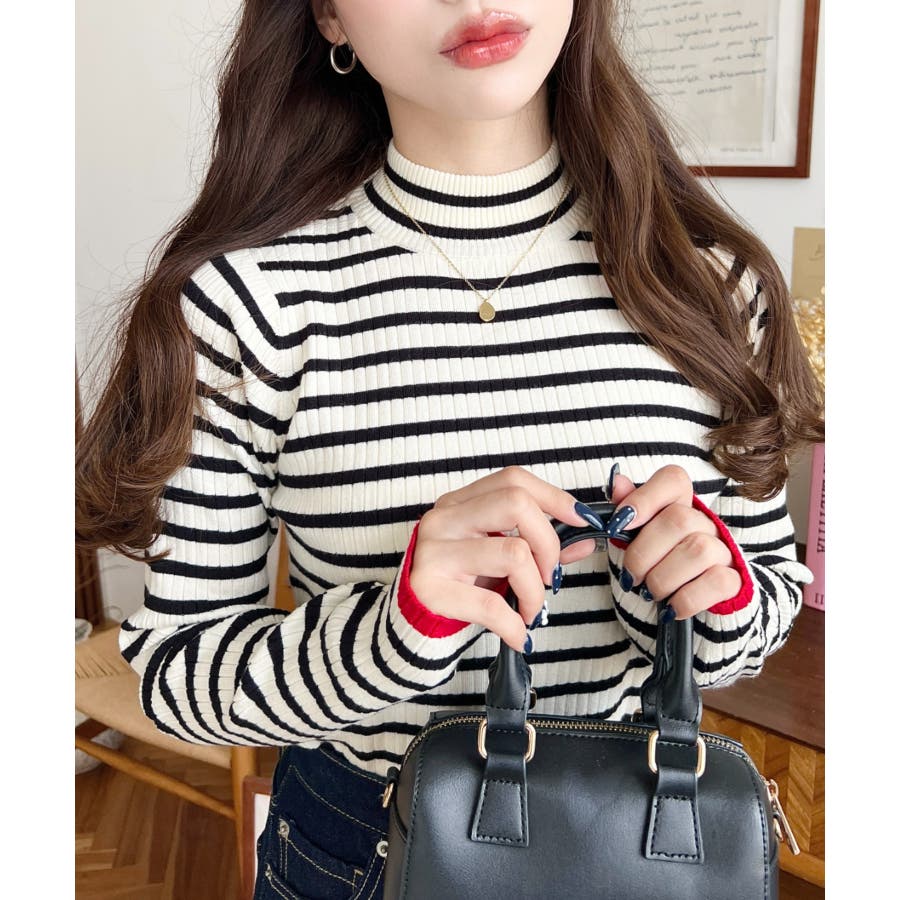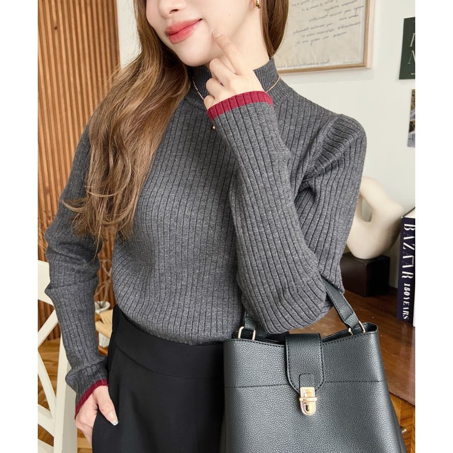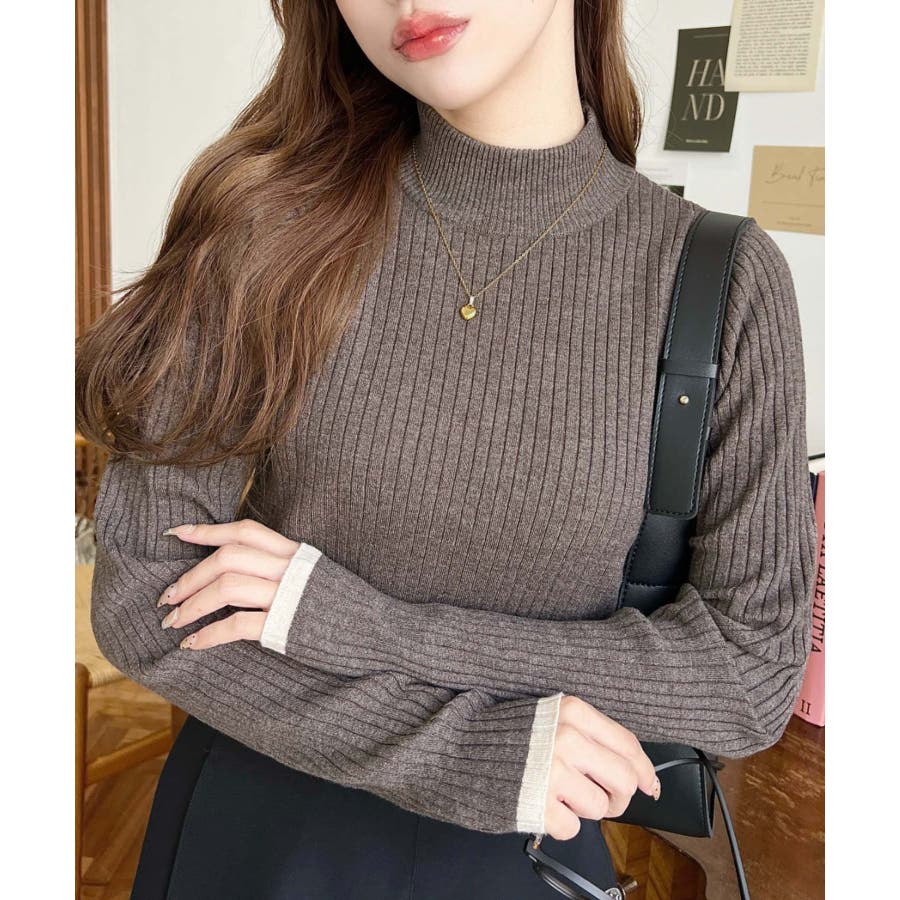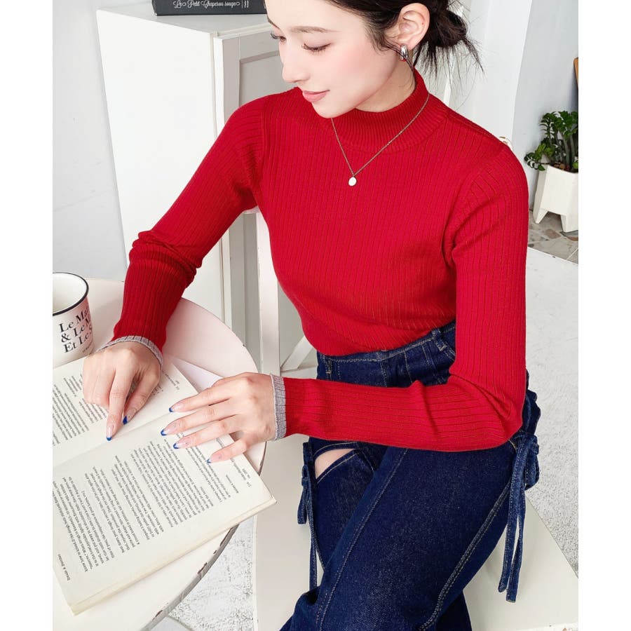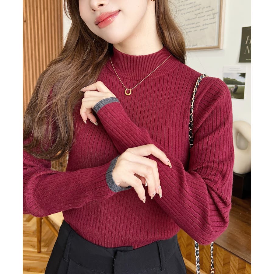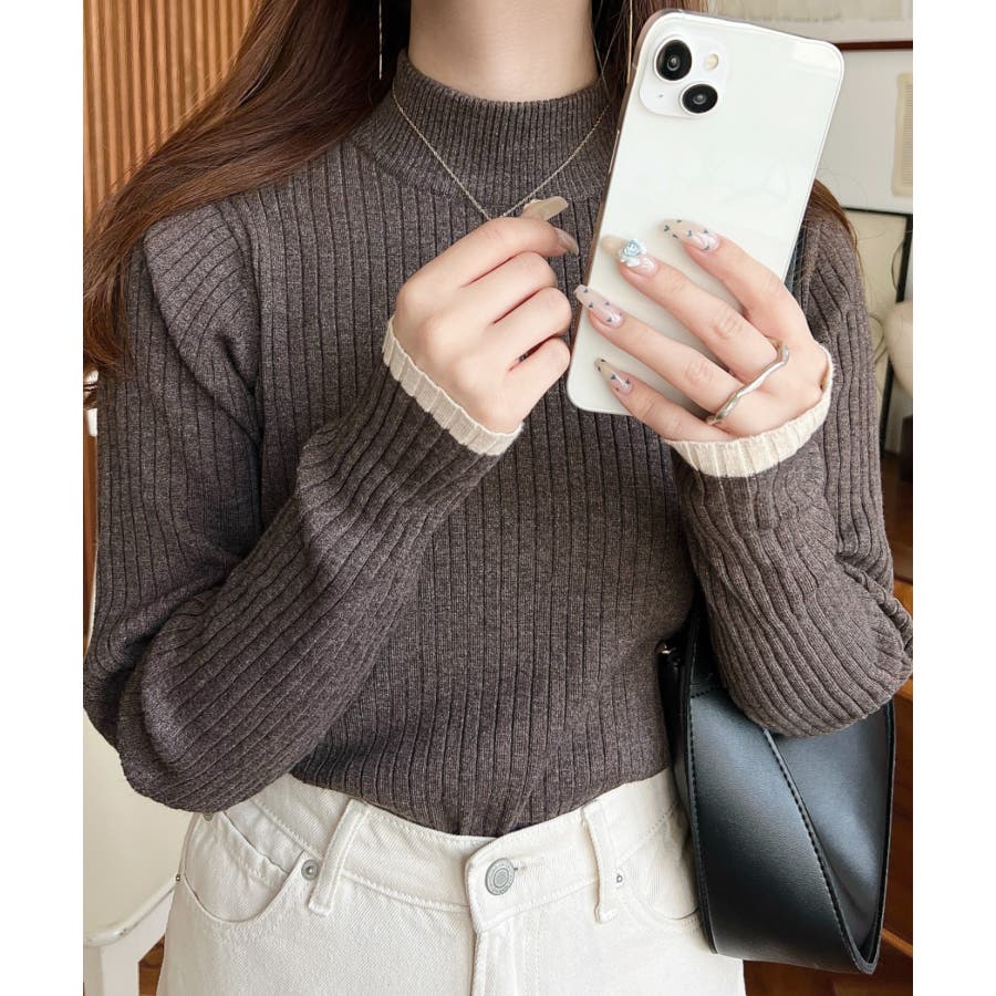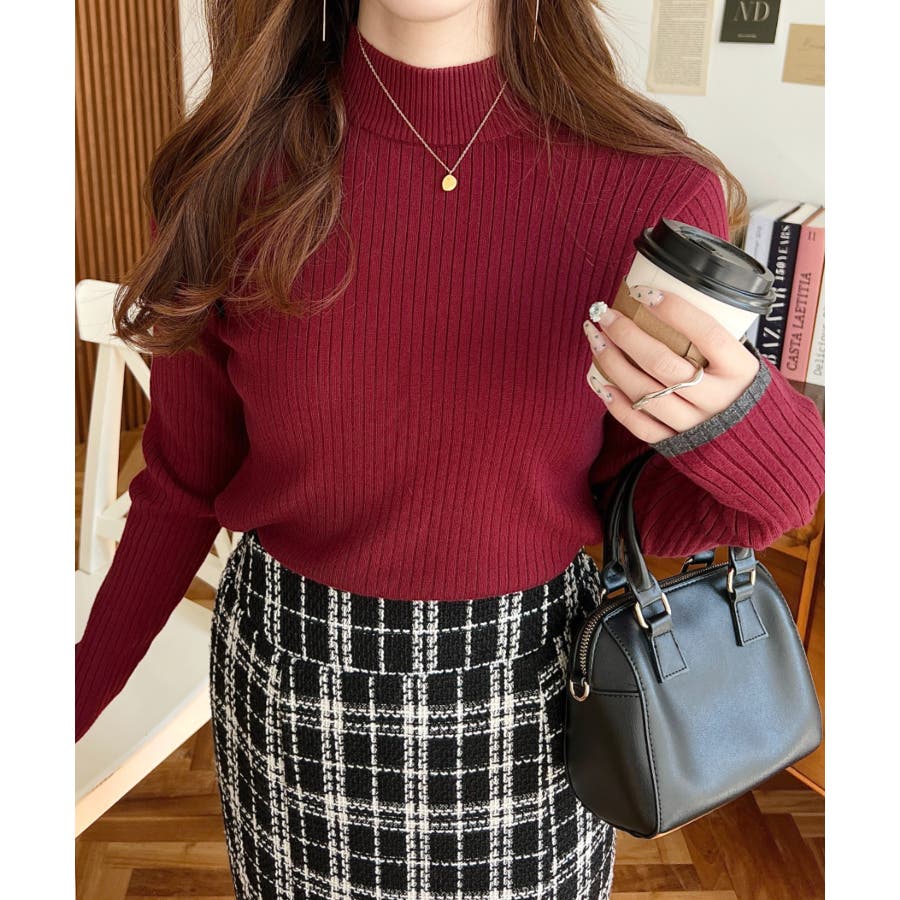 【配色デザインが目を惹く可愛さ◎大人気ボトルネックリブニットが新登場!】