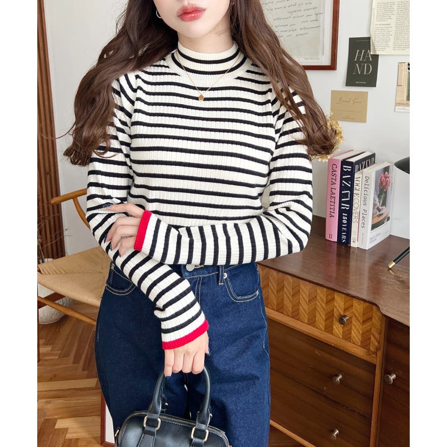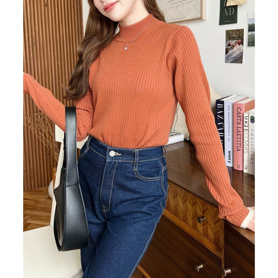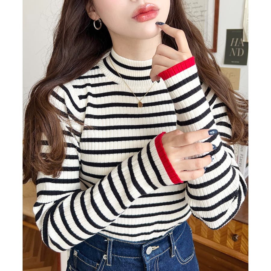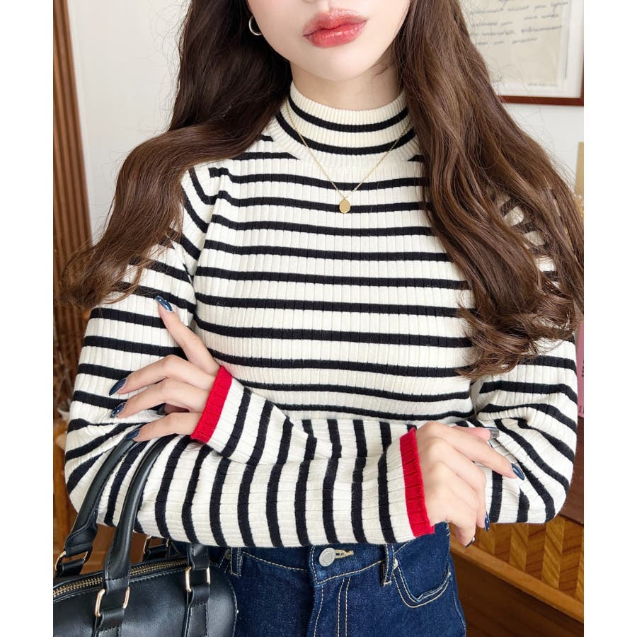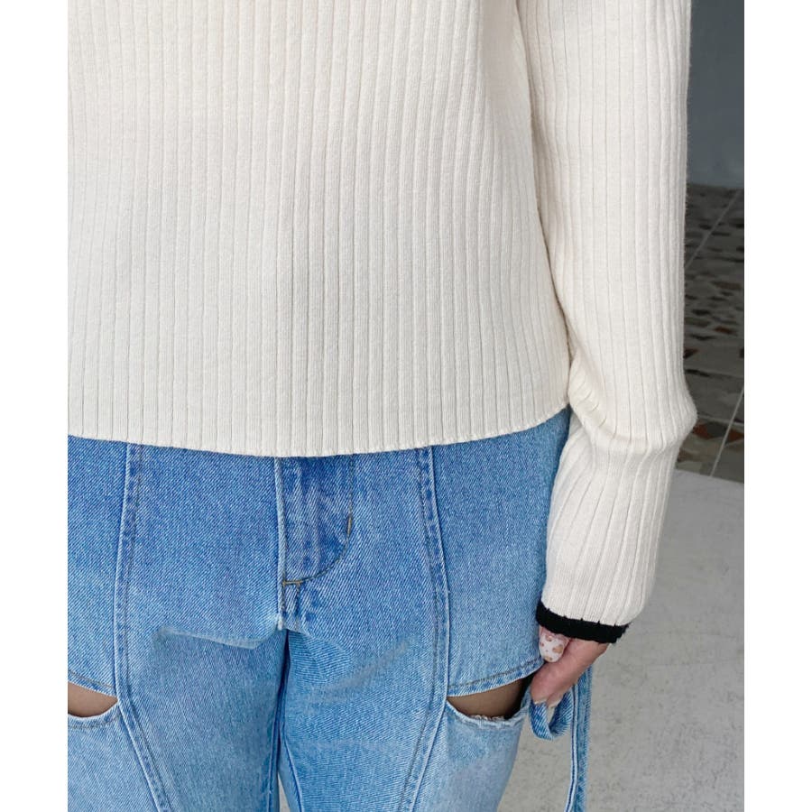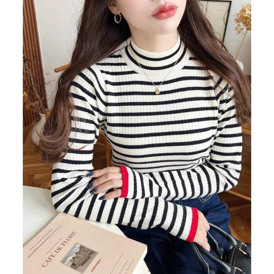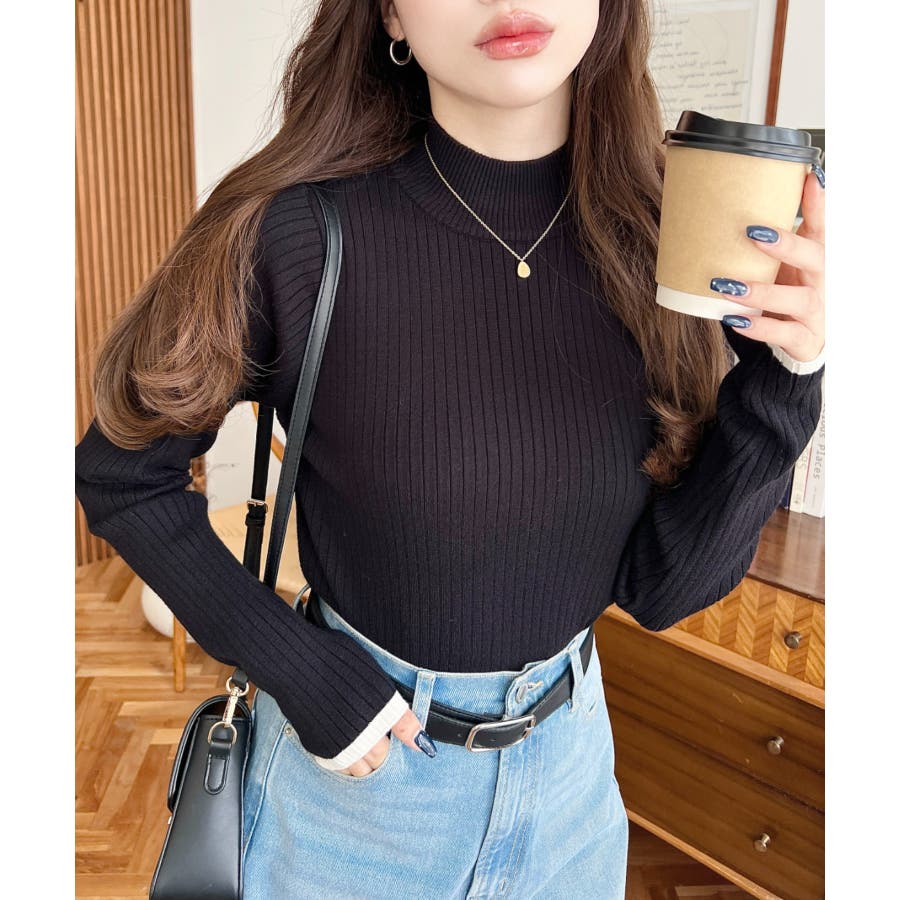 【配色デザインが目を惹く可愛さ◎大人気ボトルネックリブニットが新登場!】