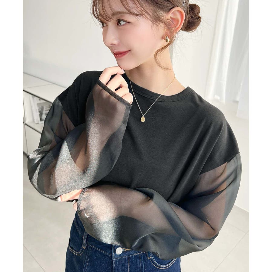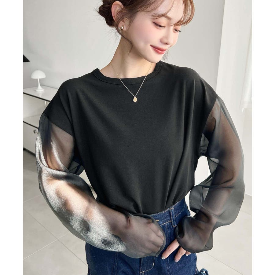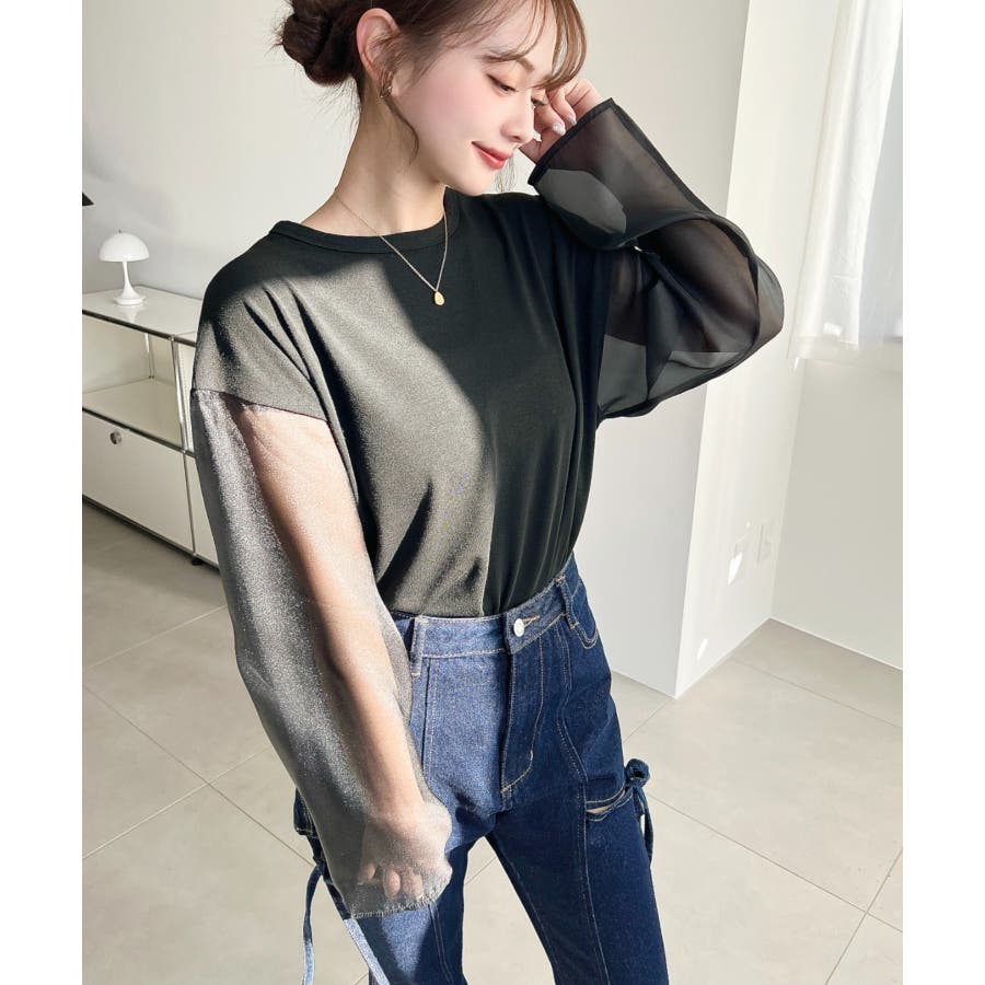ジャケットやアウターのインナーに着て、袖のシアー部分をチラ見せしても可愛いです♪