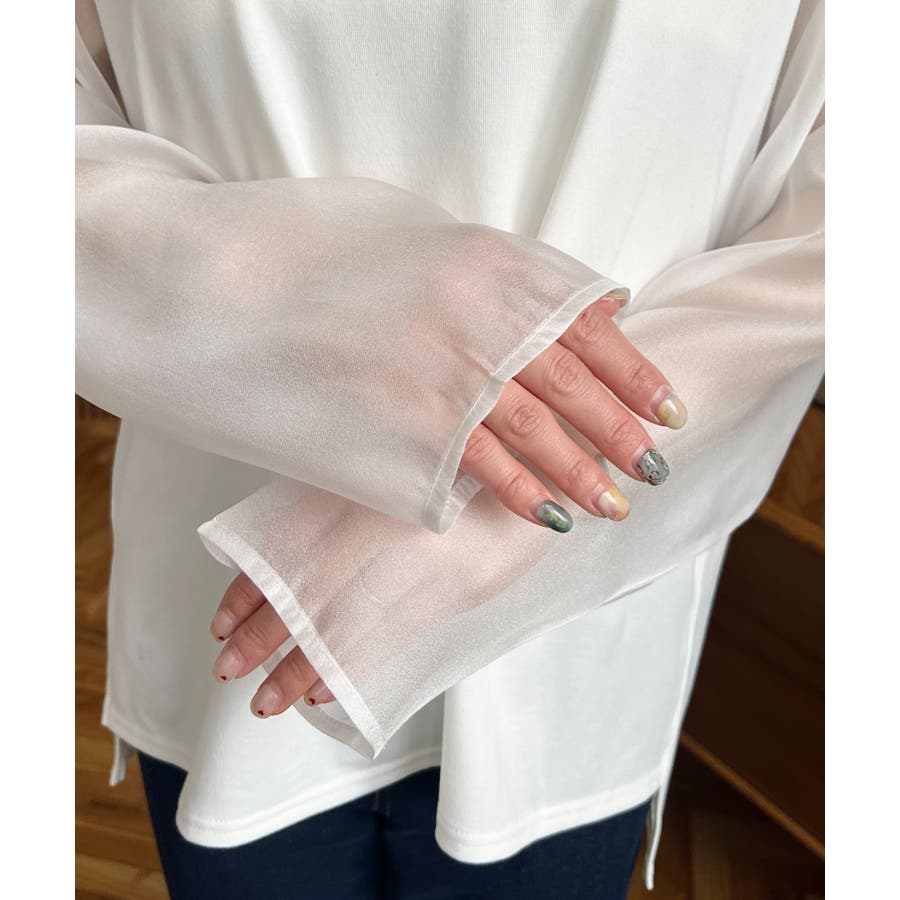・袖からシアーをのぞかせてレイヤードコーデも◎