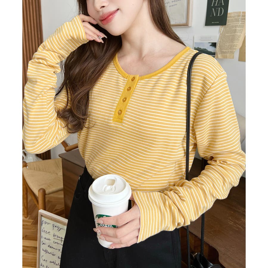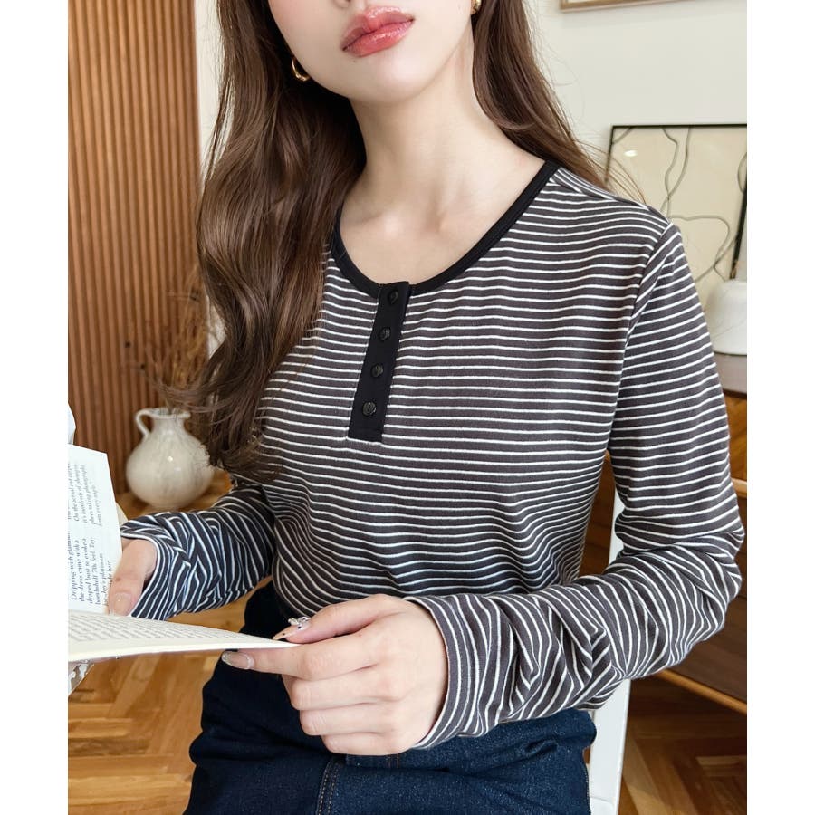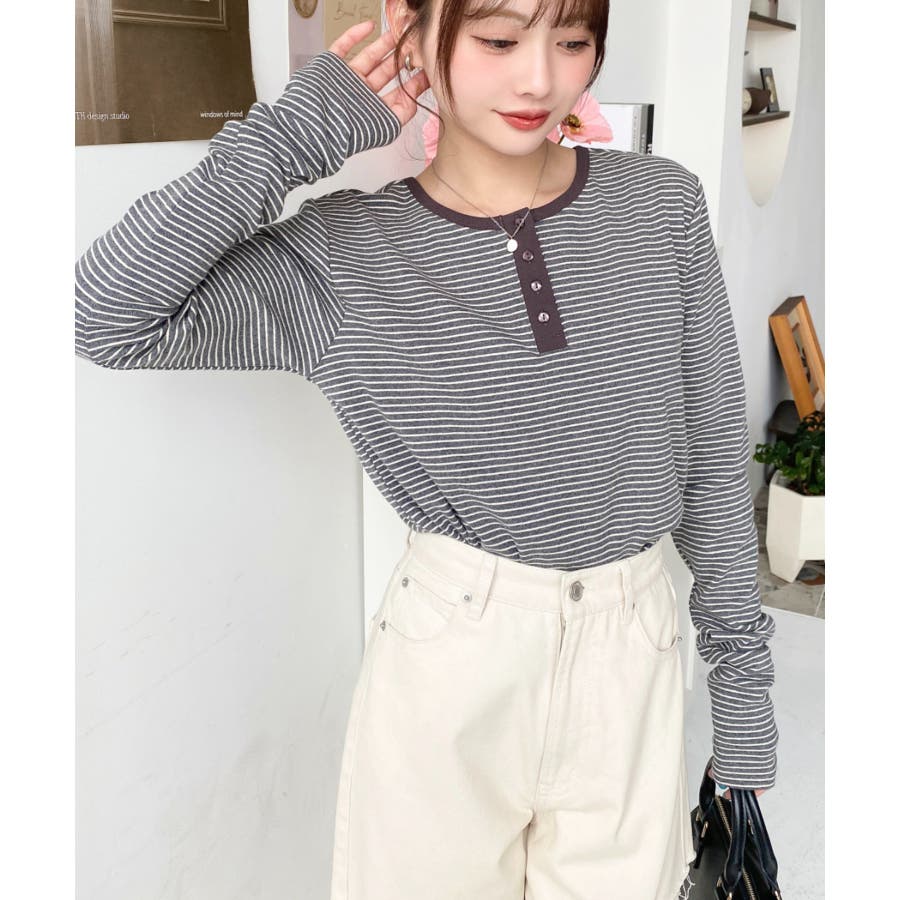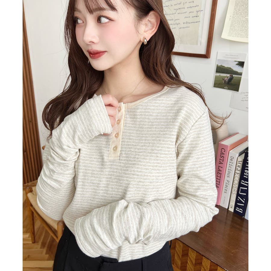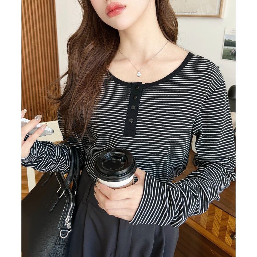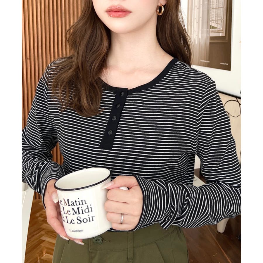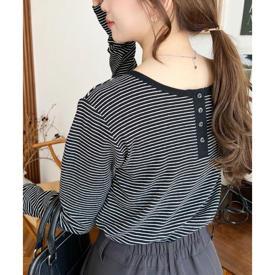 ・首周りをきれいに魅せてくれるヘンリーネック仕様。気分に合わせて前後2WAYでお楽しみいただけます◎