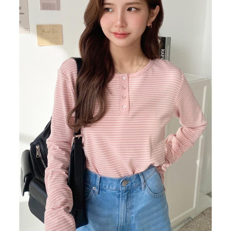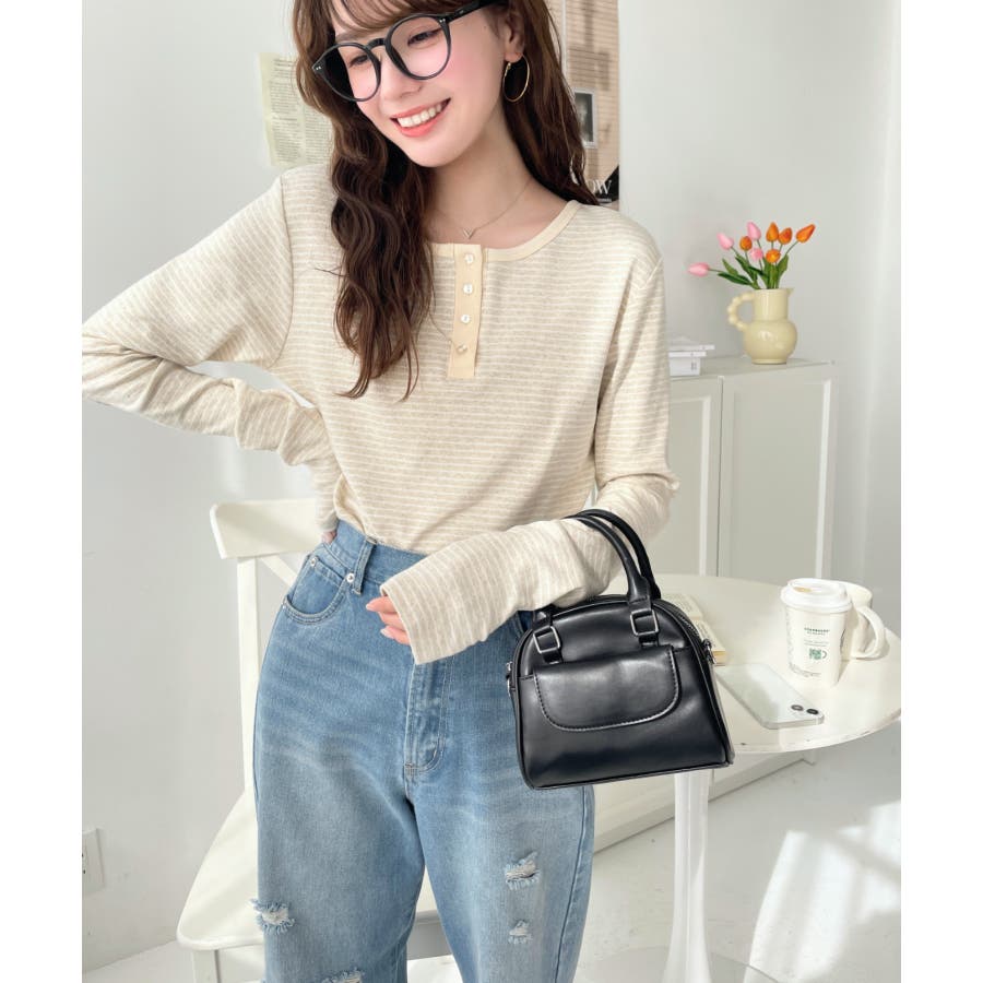 ヘンリーネックデザインがポイントになり、コーデがシンプルになりすぎないのもデイリー使いにぴったりです◎