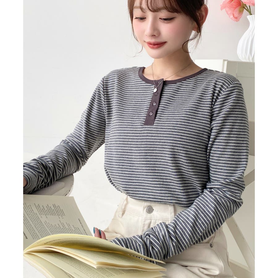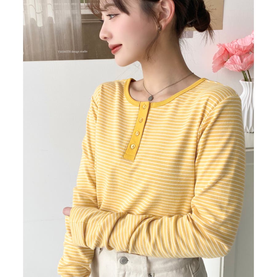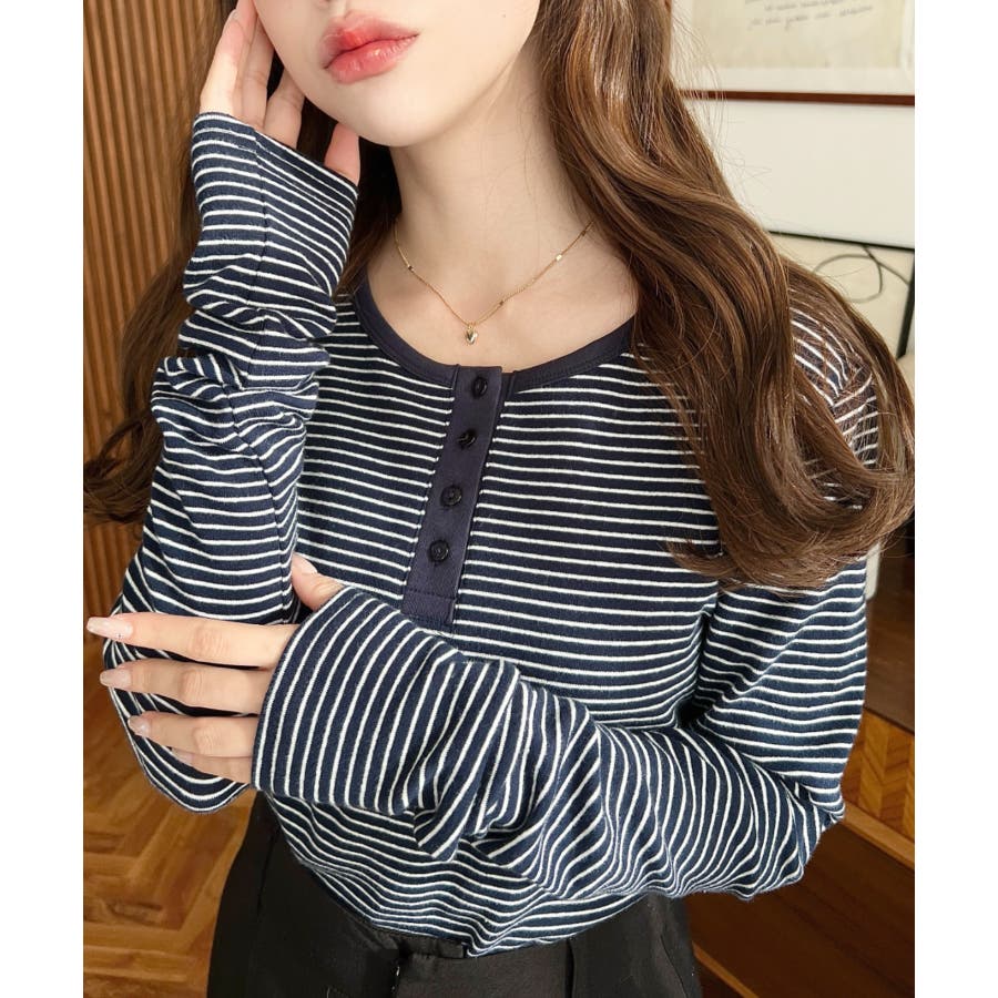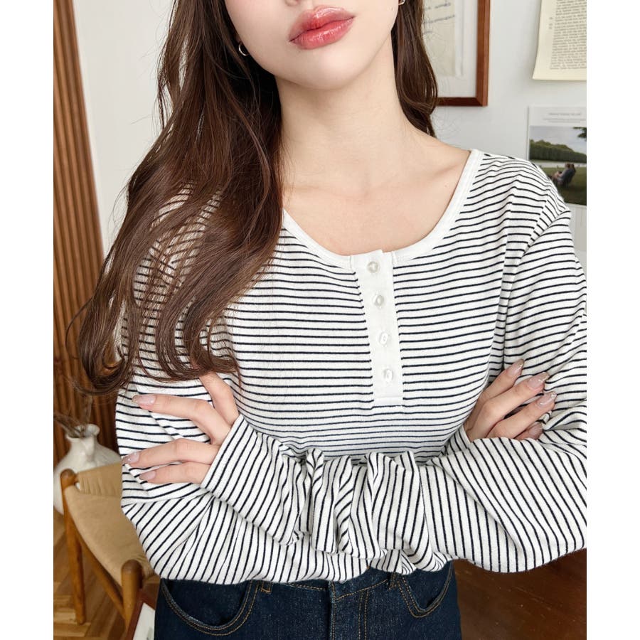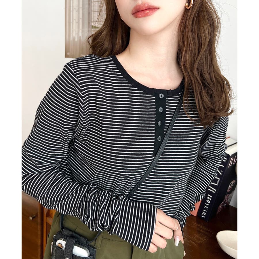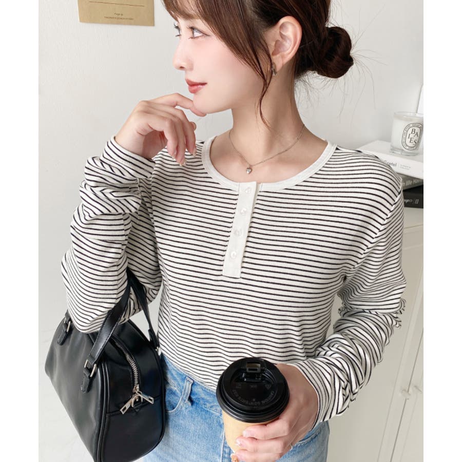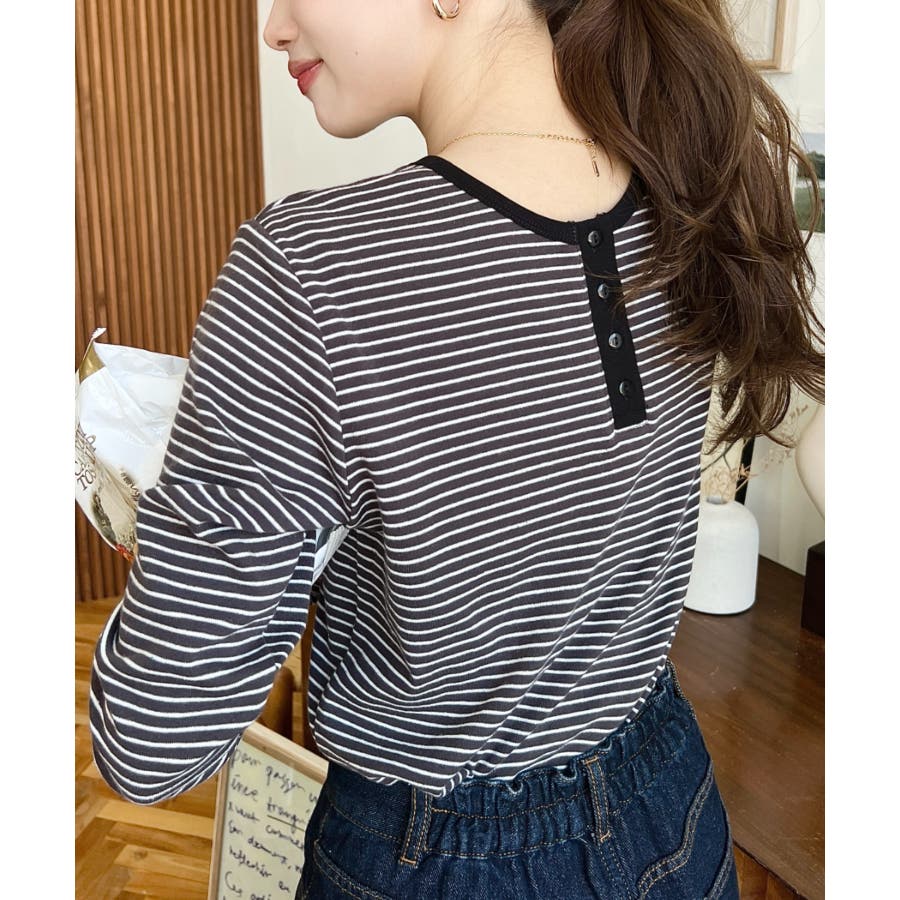 前後2WAY袖くしゅくしゅヘンリーネックボーダーロンT
