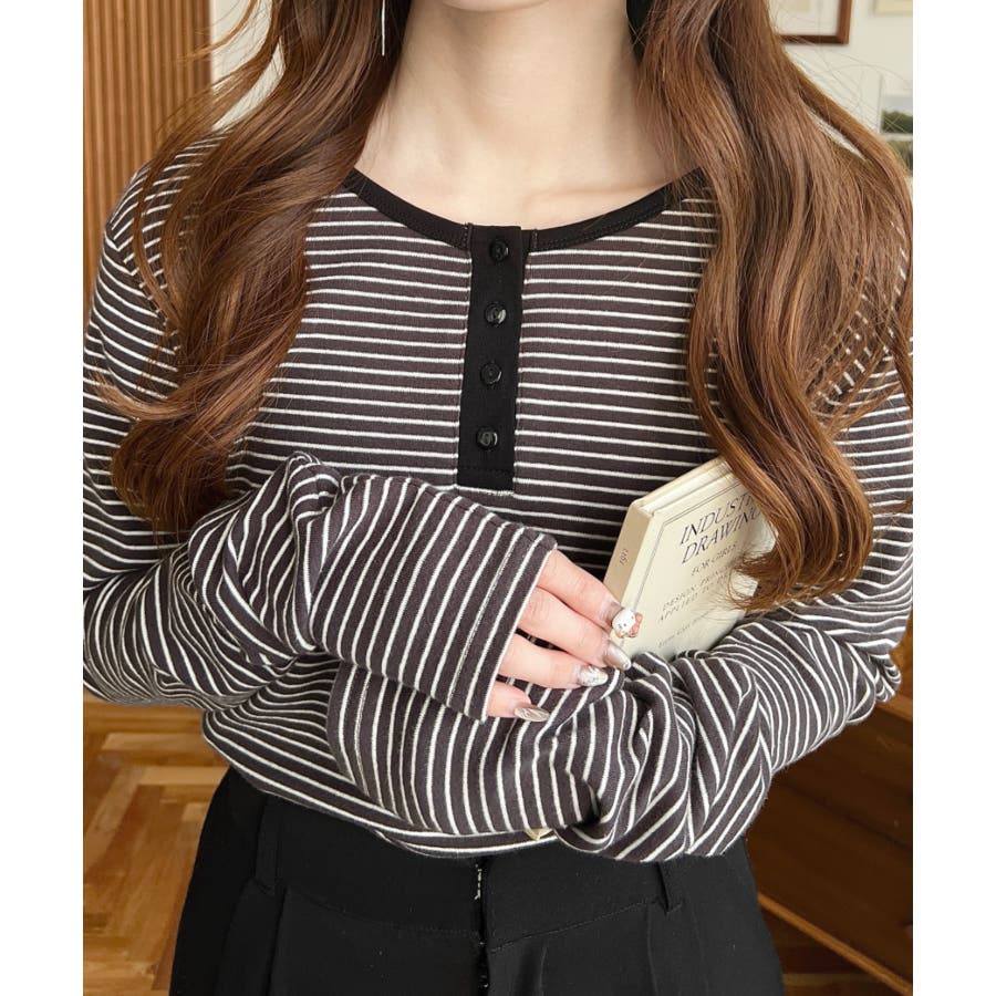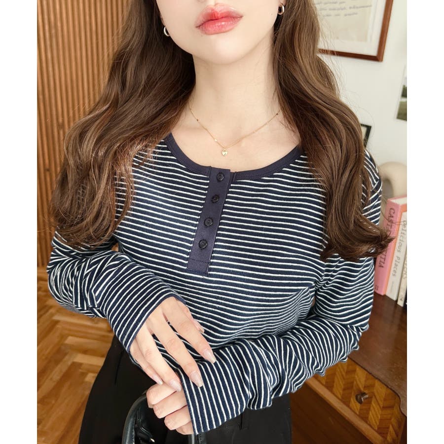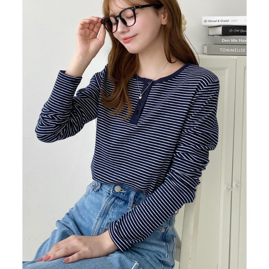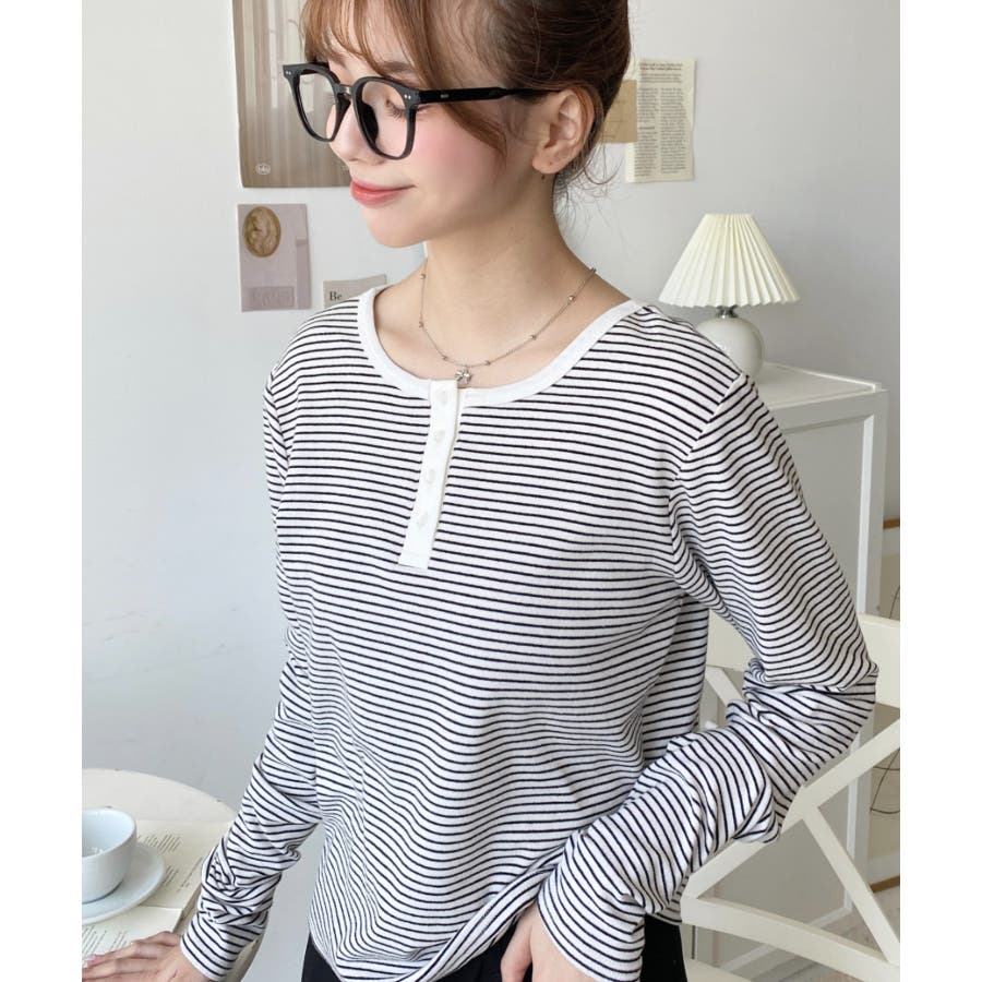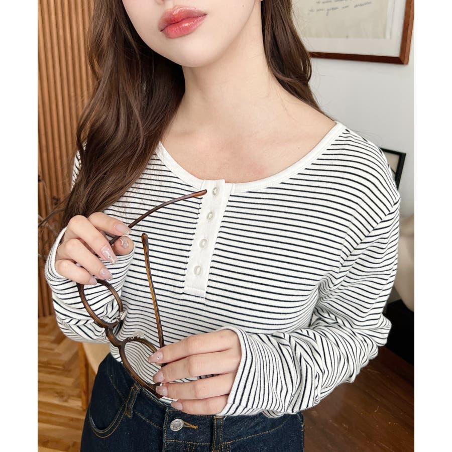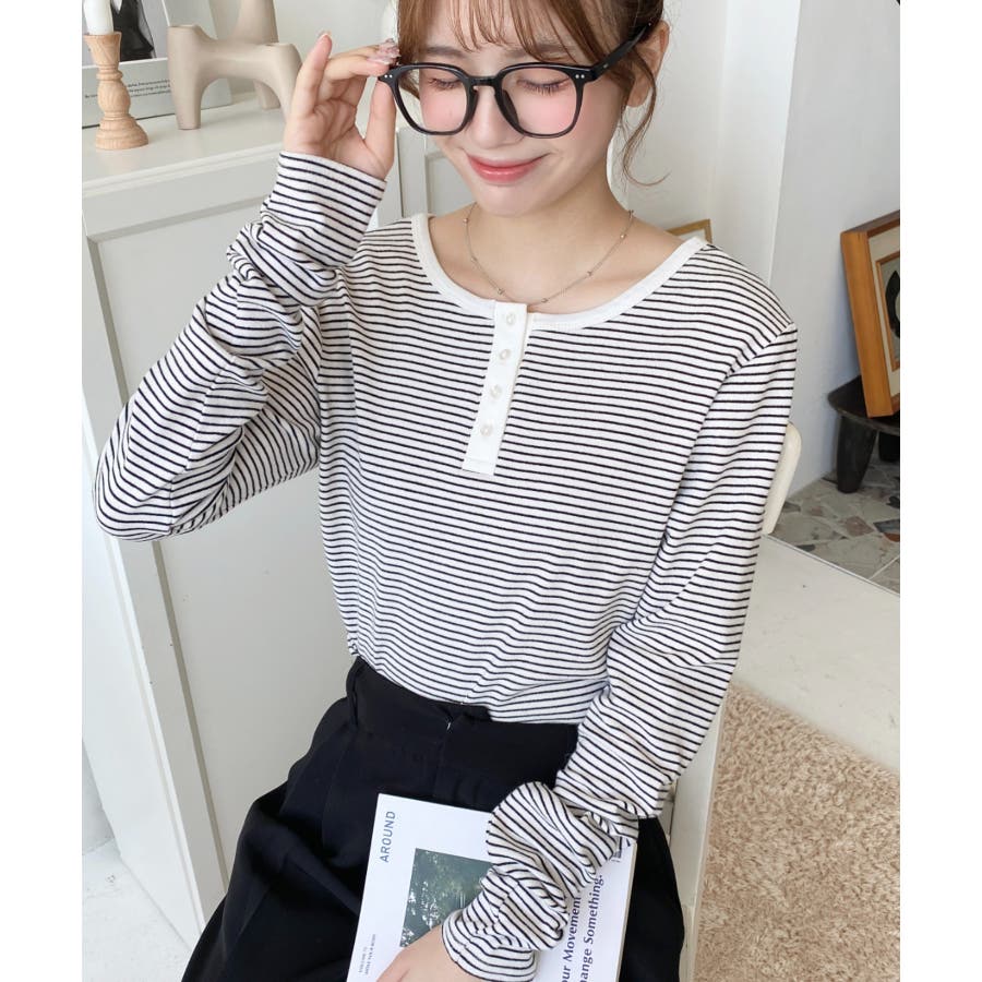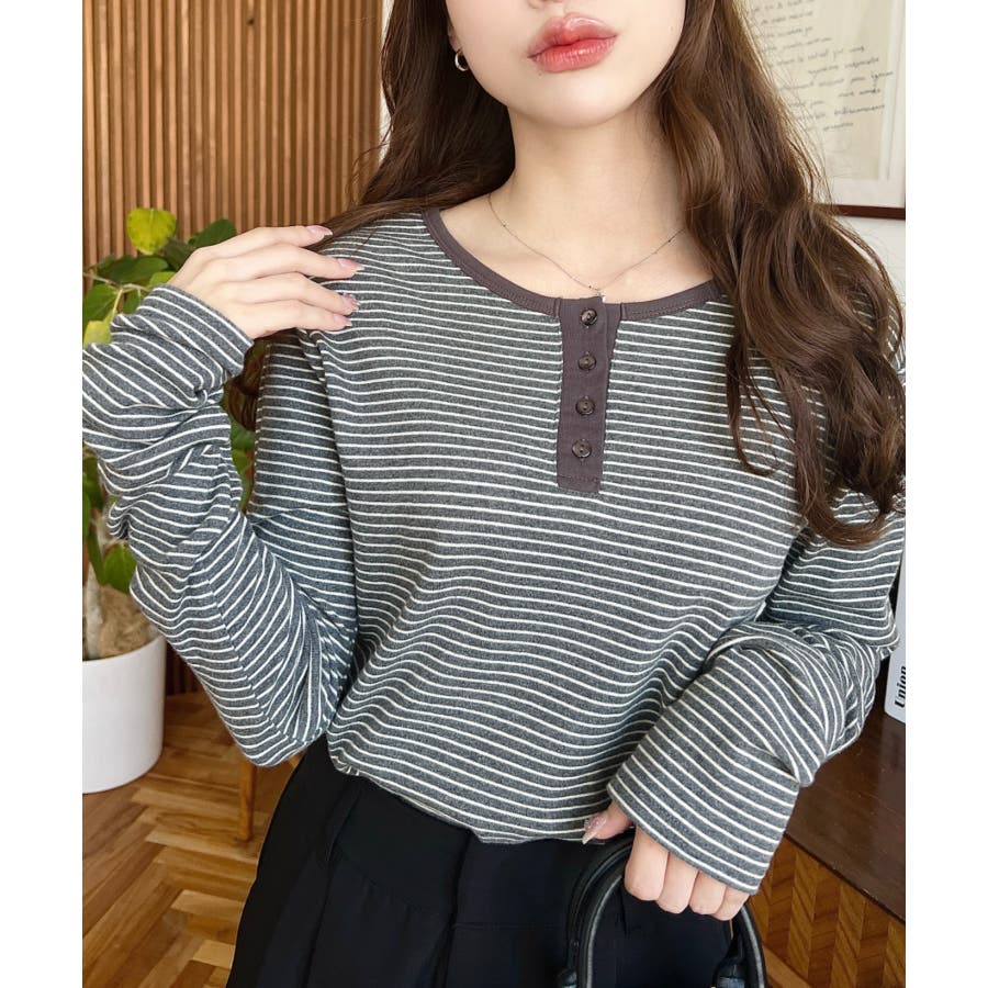 前後2WAY袖くしゅくしゅヘンリーネックボーダーロンT
