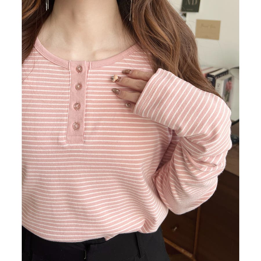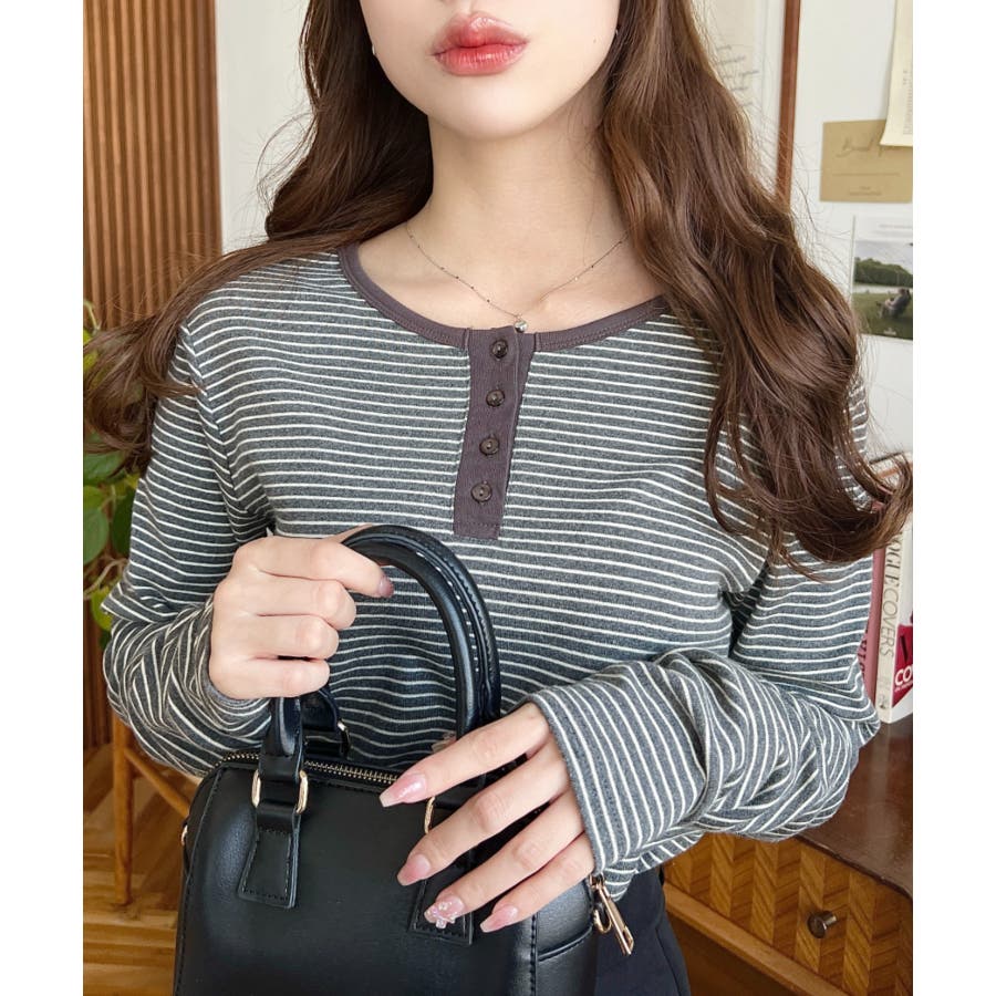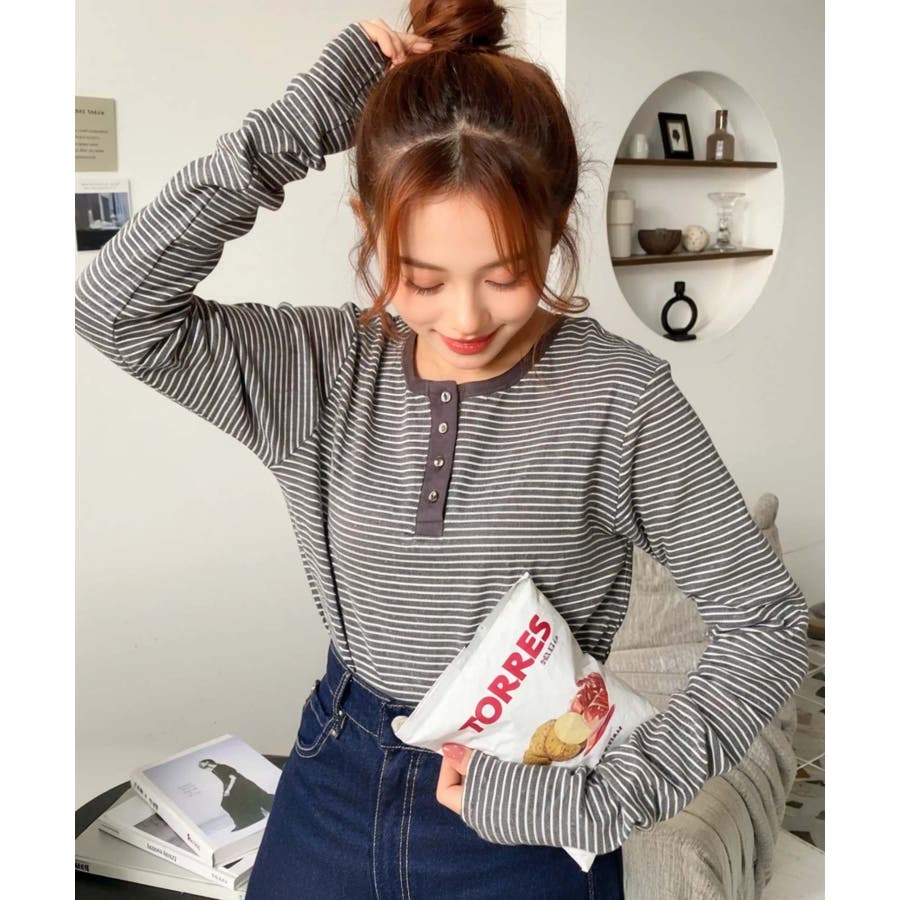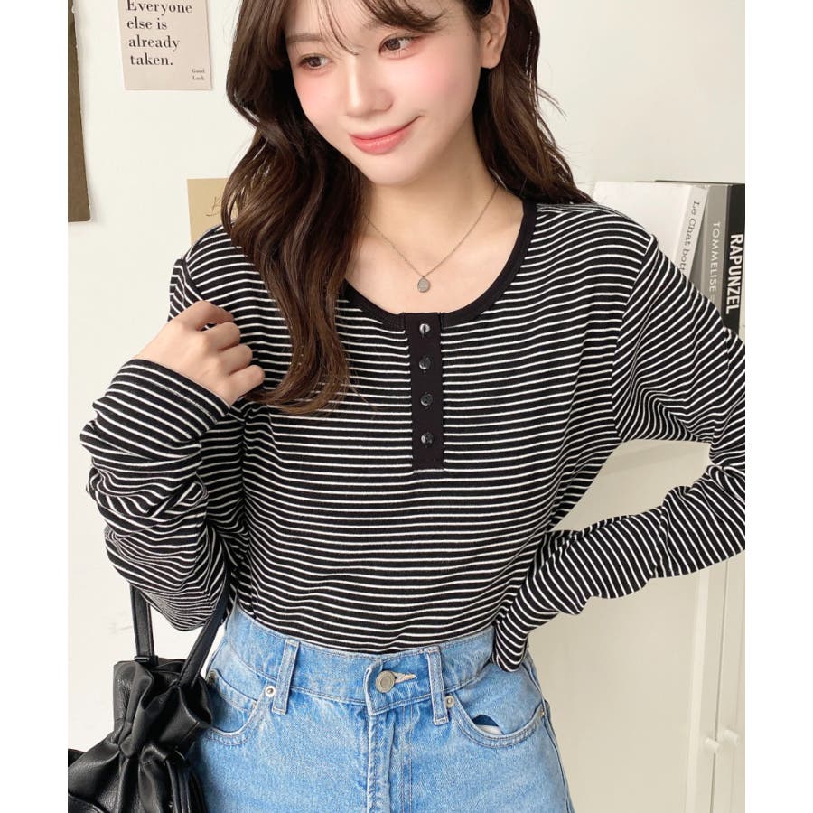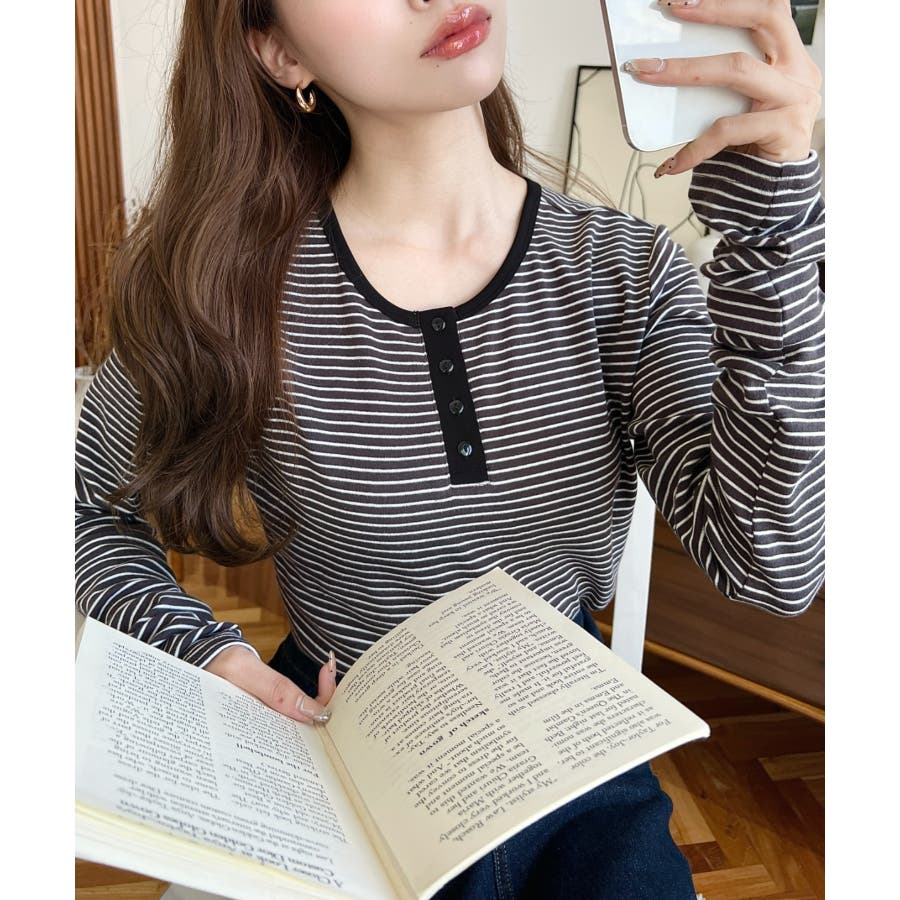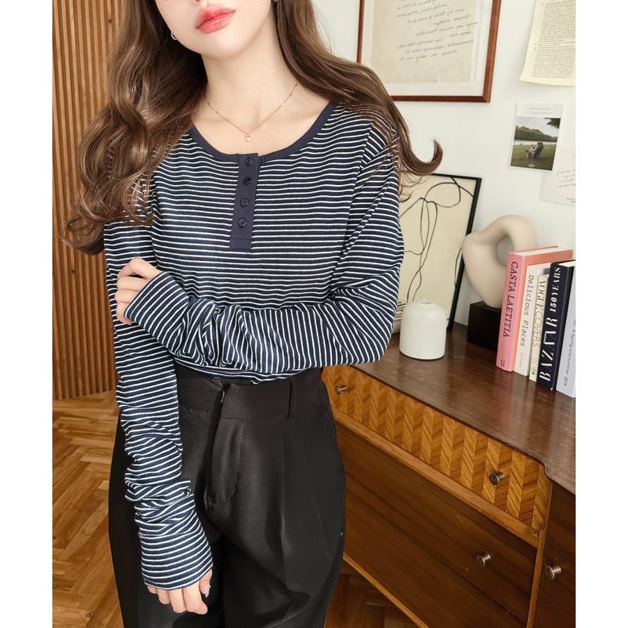 前後2WAY袖くしゅくしゅヘンリーネックボーダーロンT