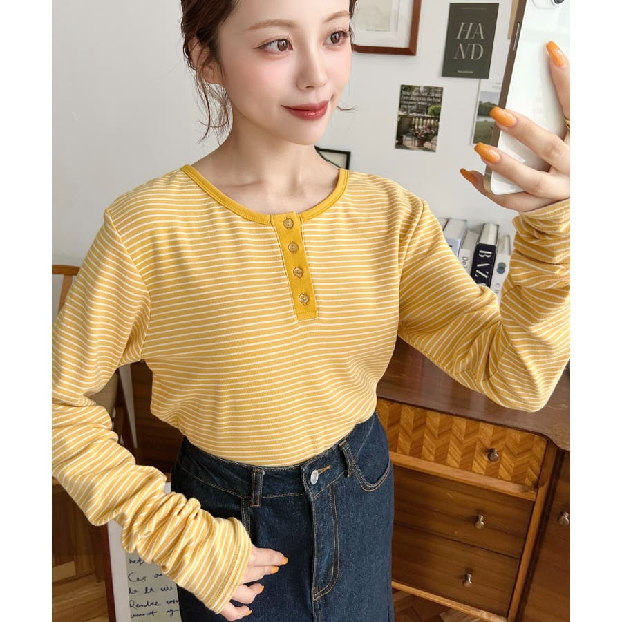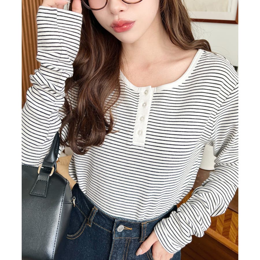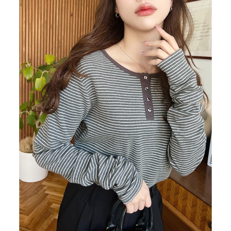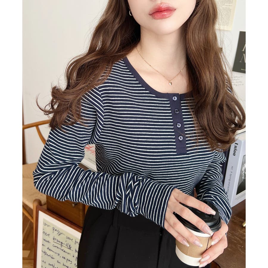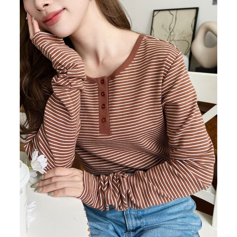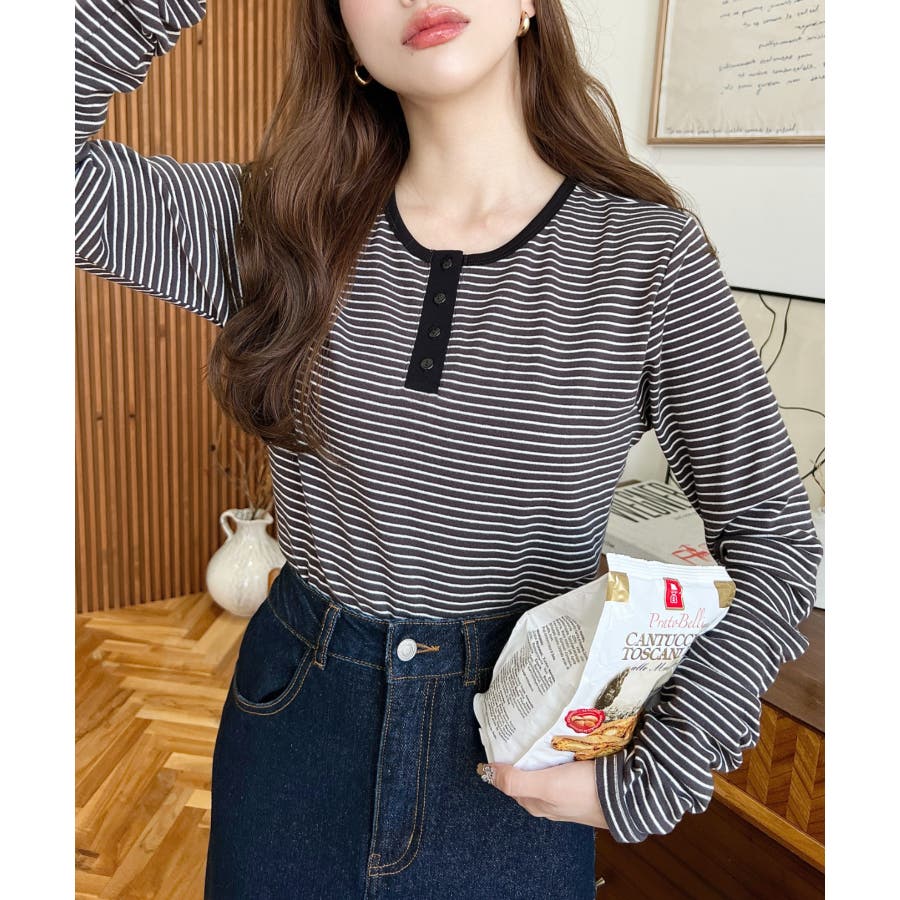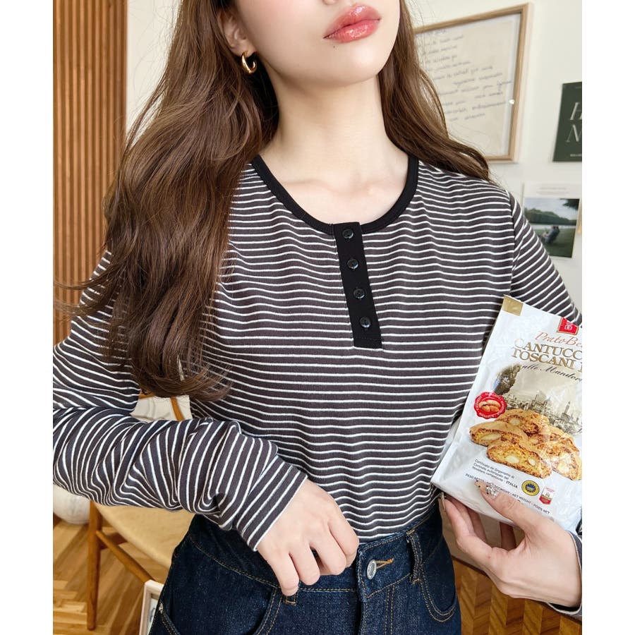 前後2WAY袖くしゅくしゅヘンリーネックボーダーロンT
