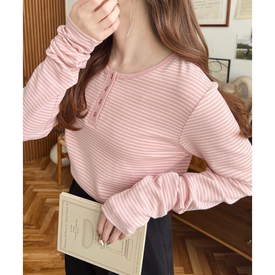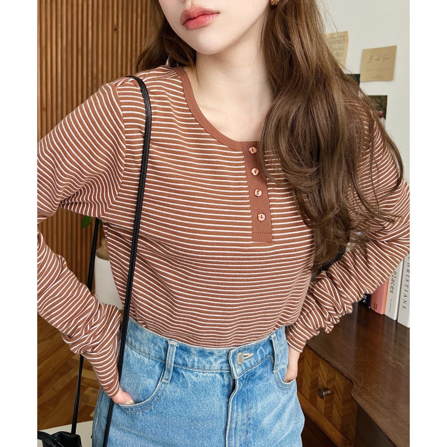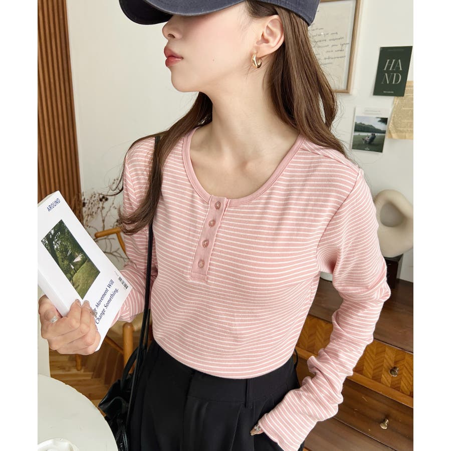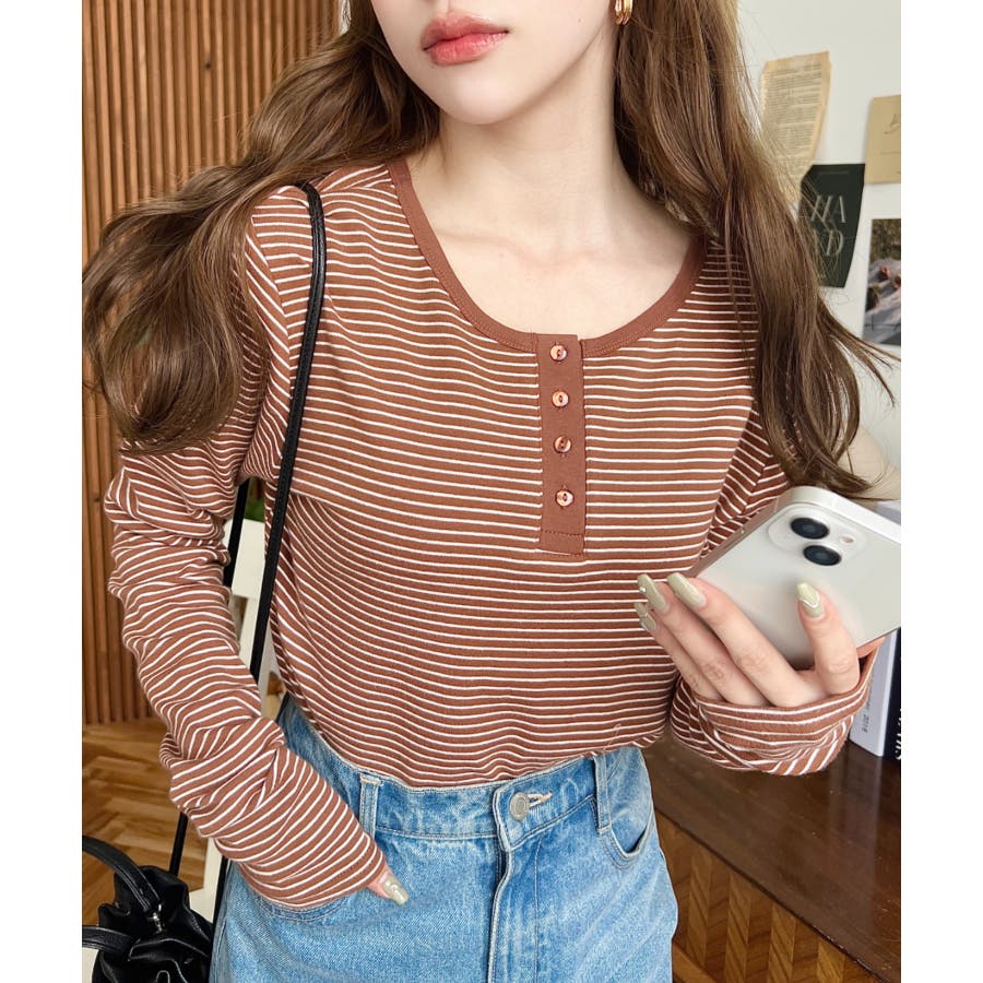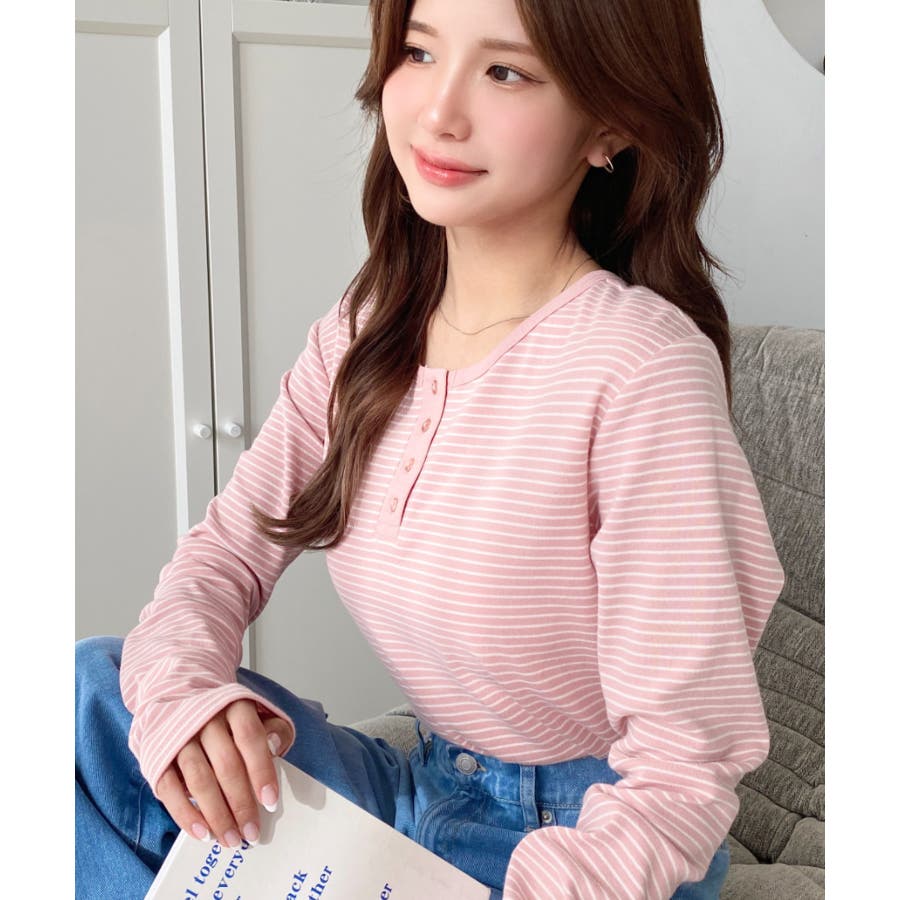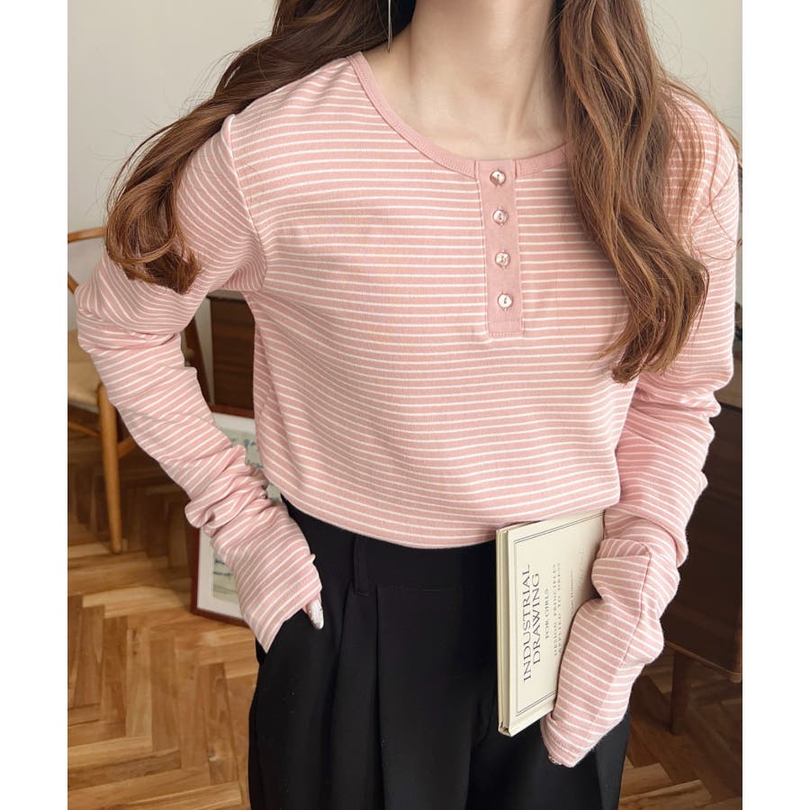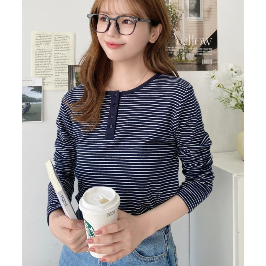 前後2WAY袖くしゅくしゅヘンリーネックボーダーロンT