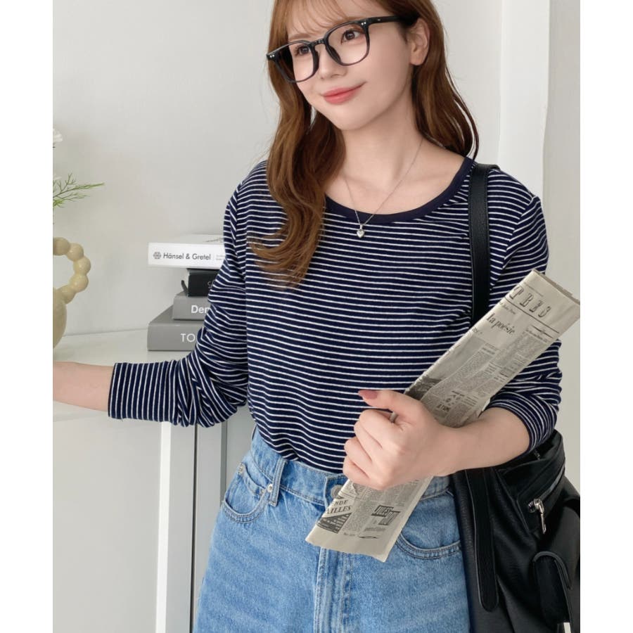 細かいボーダー柄がカジュアルながらキレイめに見えて、きちんと見えもするのが嬉しい♪