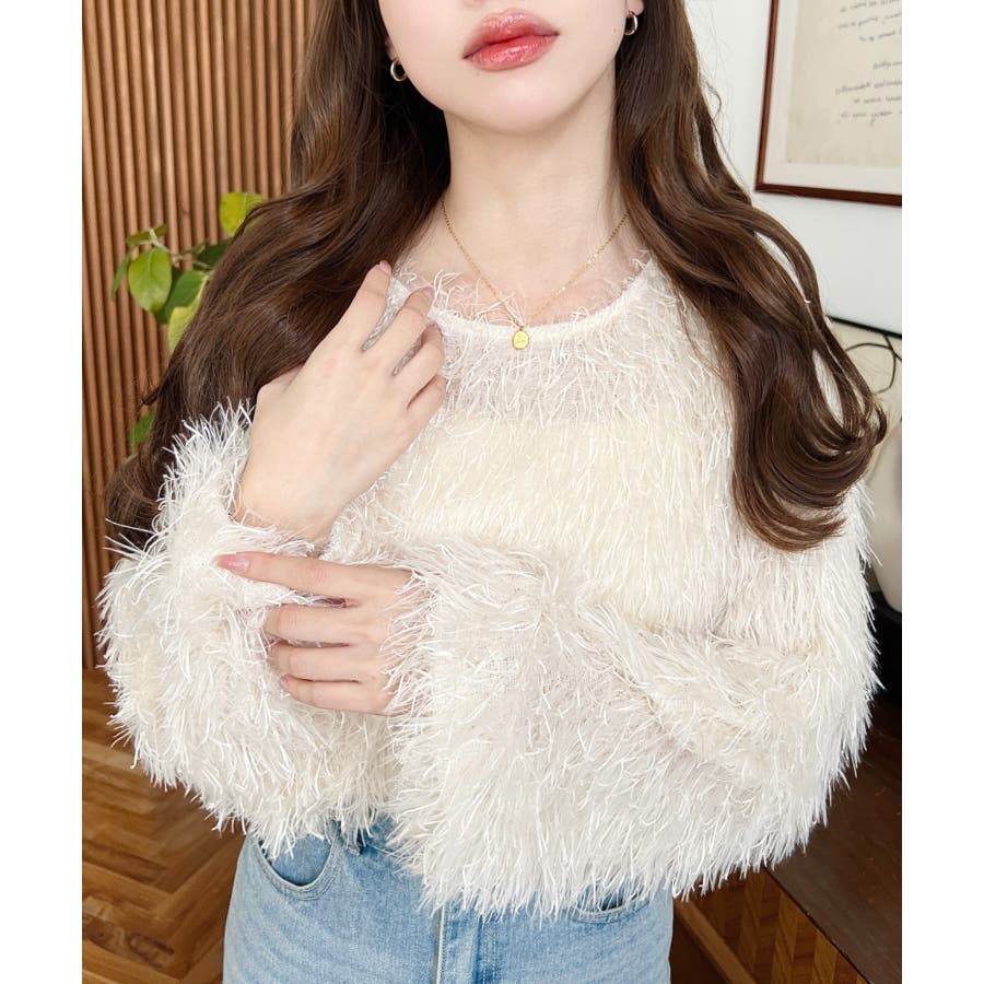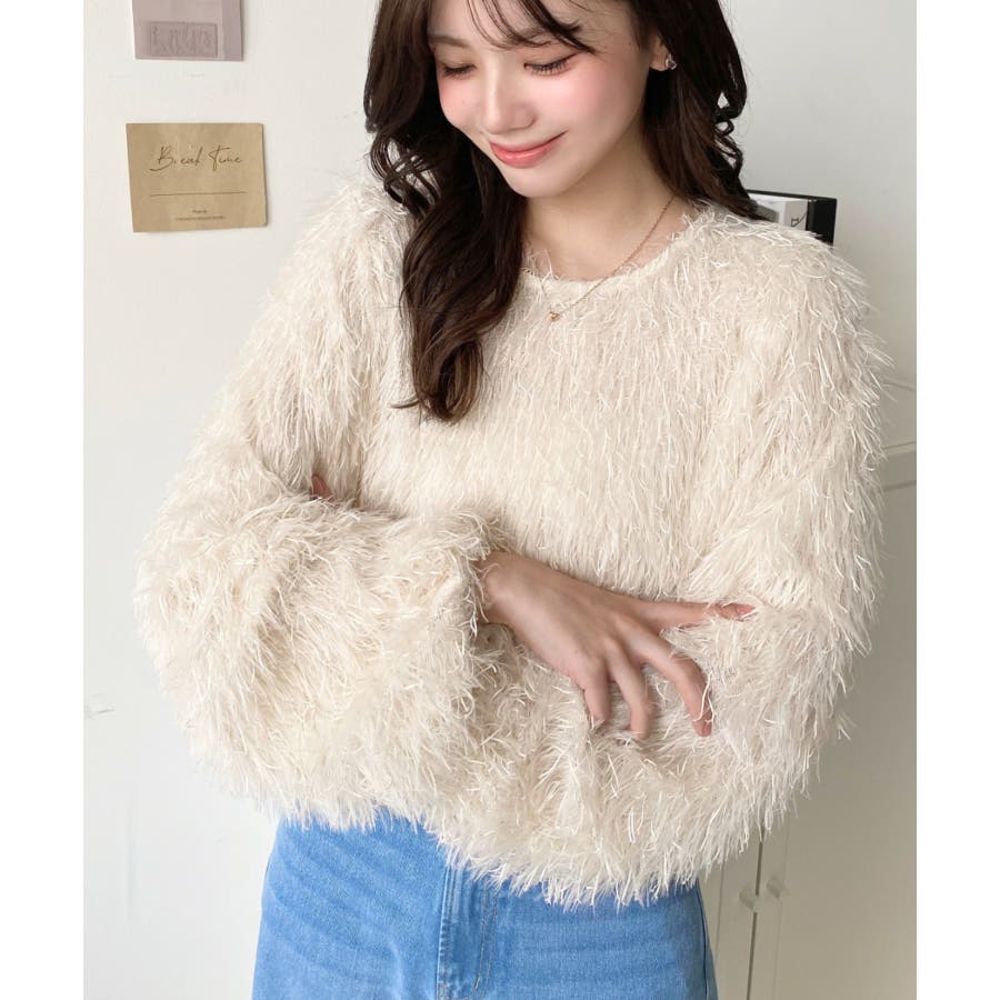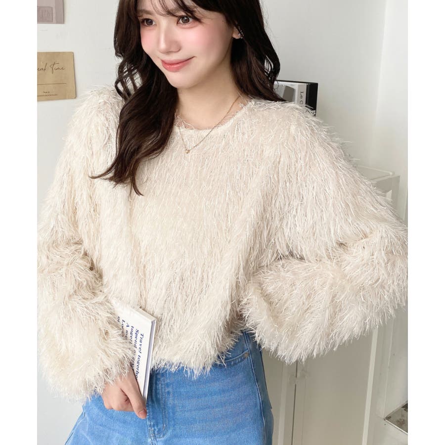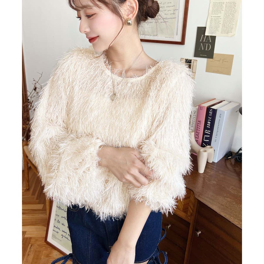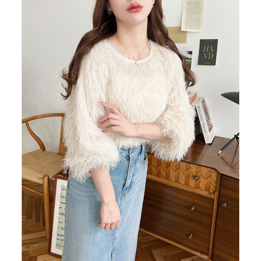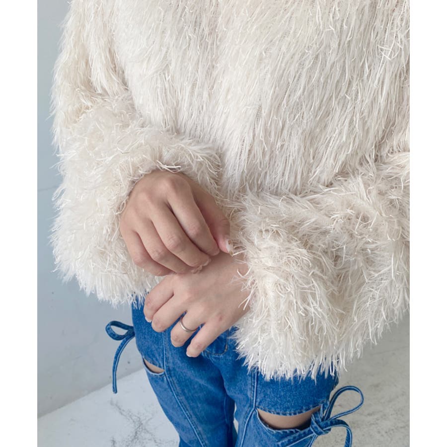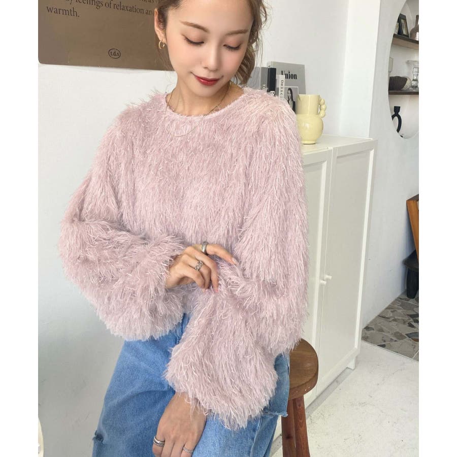 裾バルーンフリンジ長袖プルオーバー