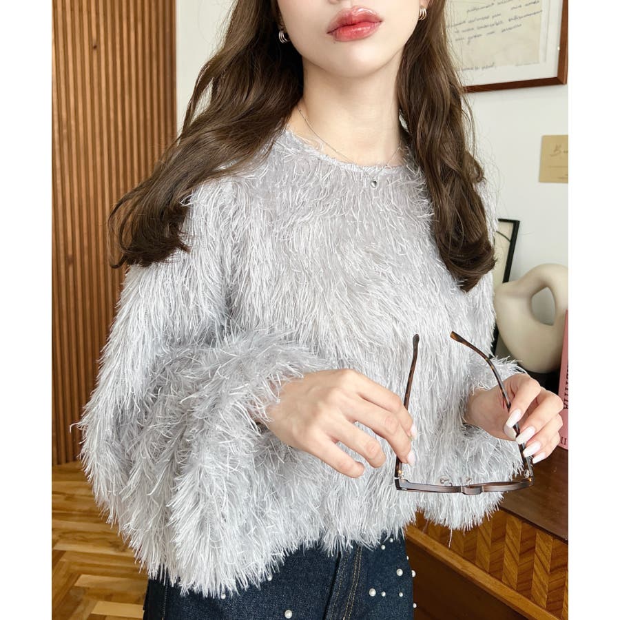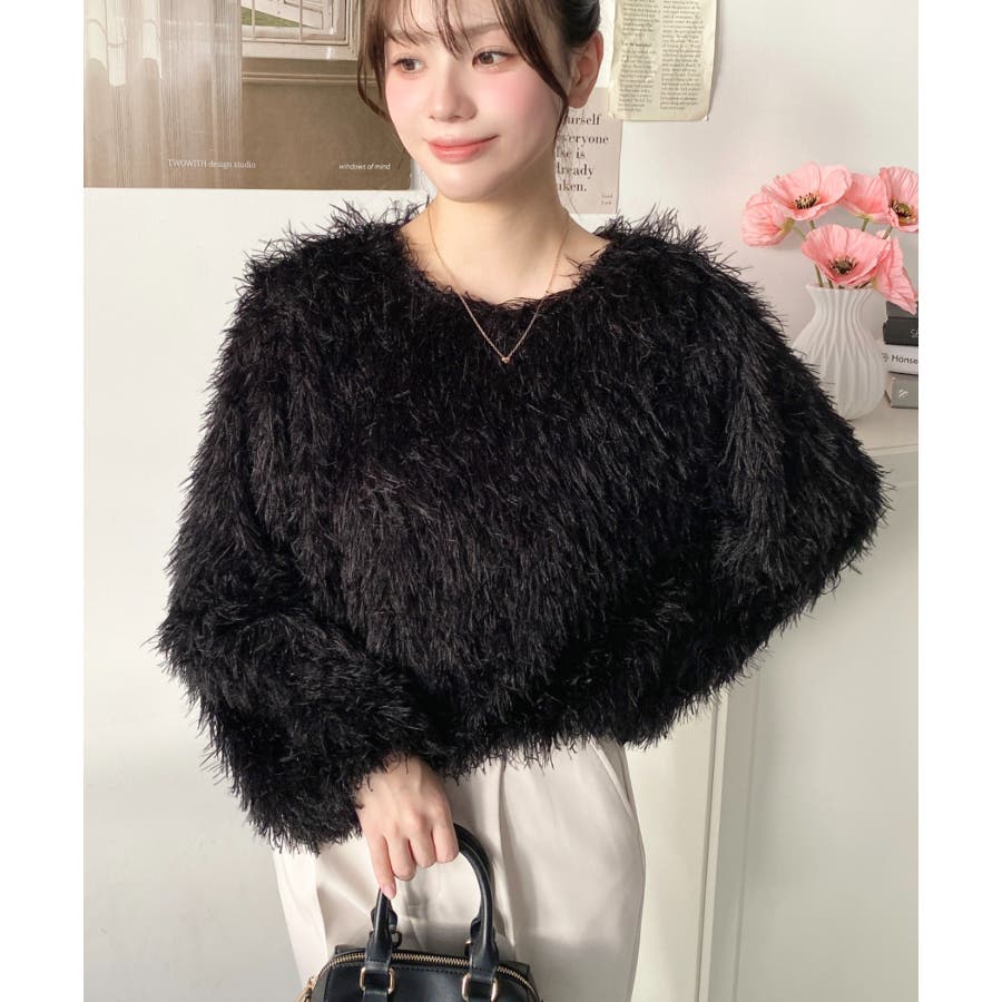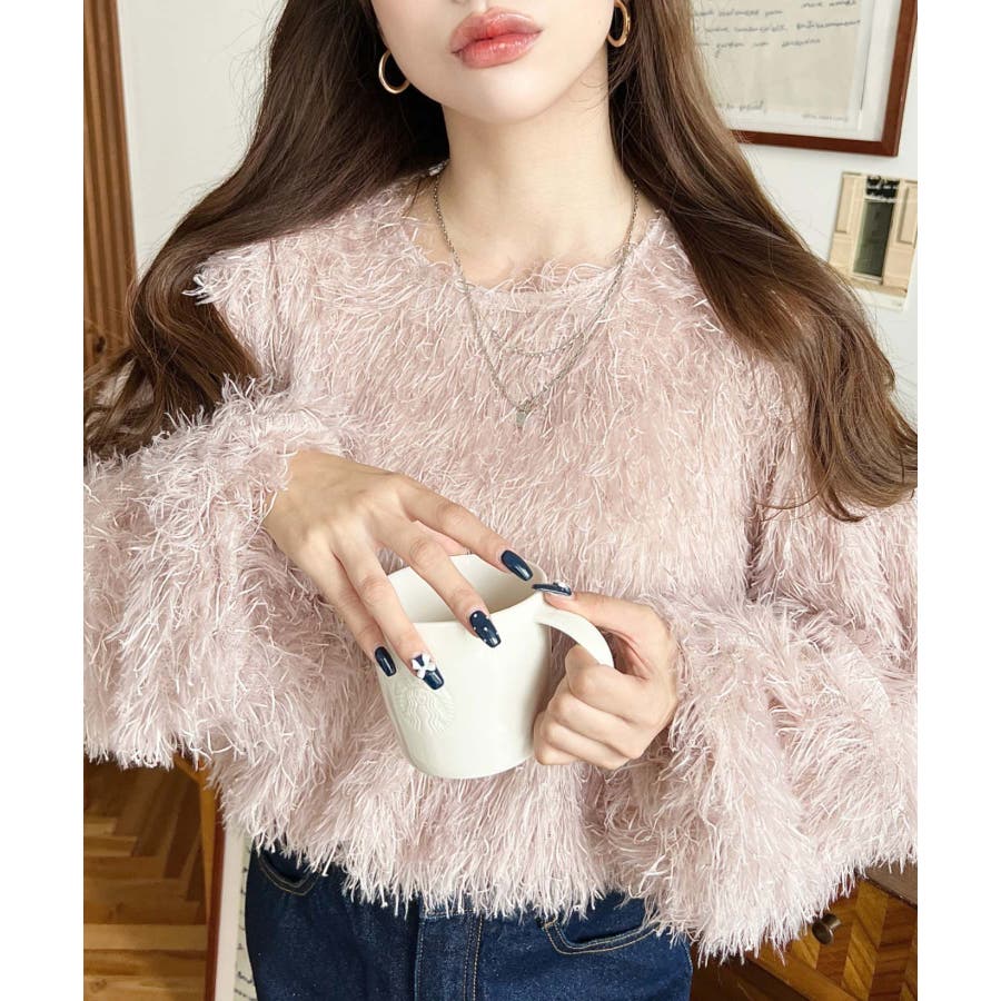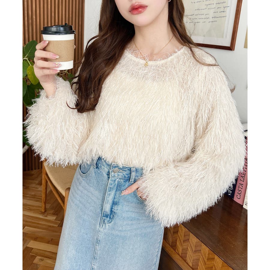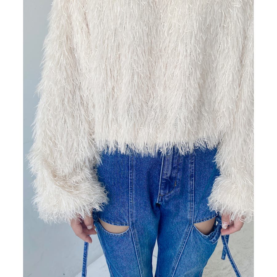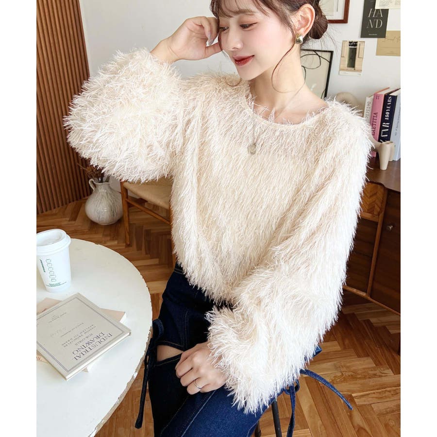 裾バルーンフリンジ長袖プルオーバー