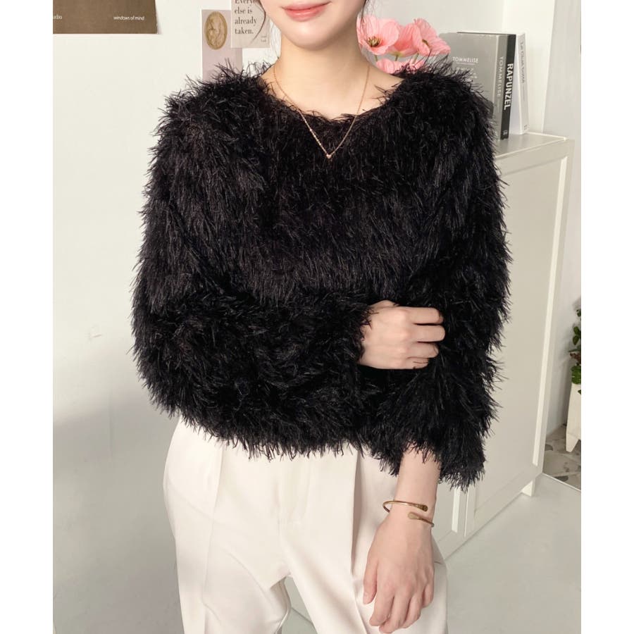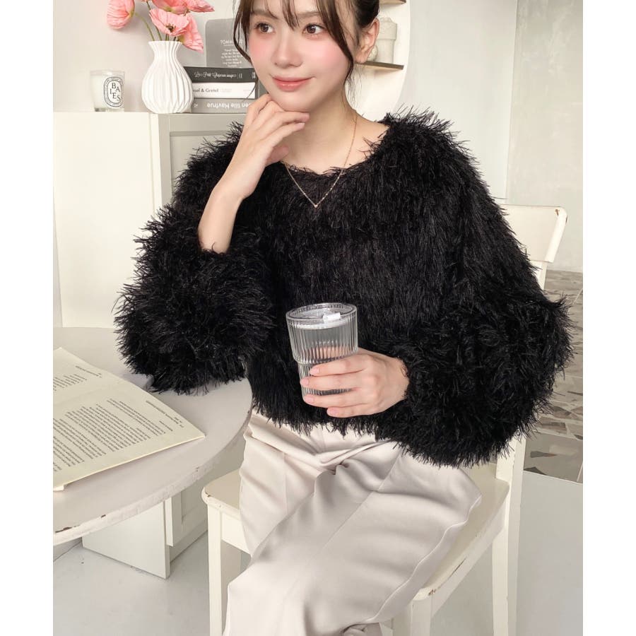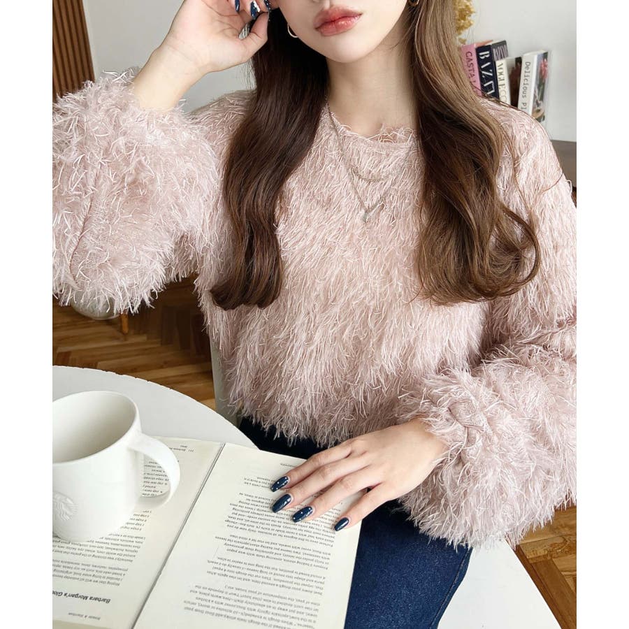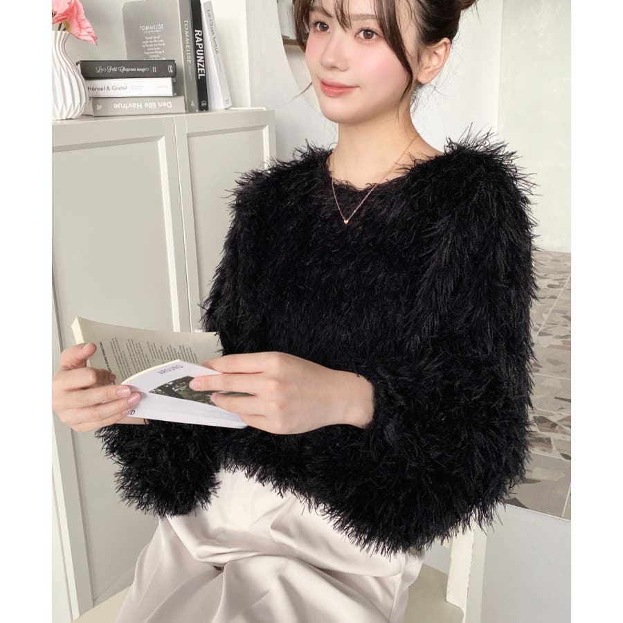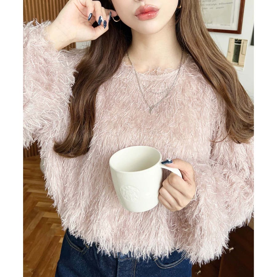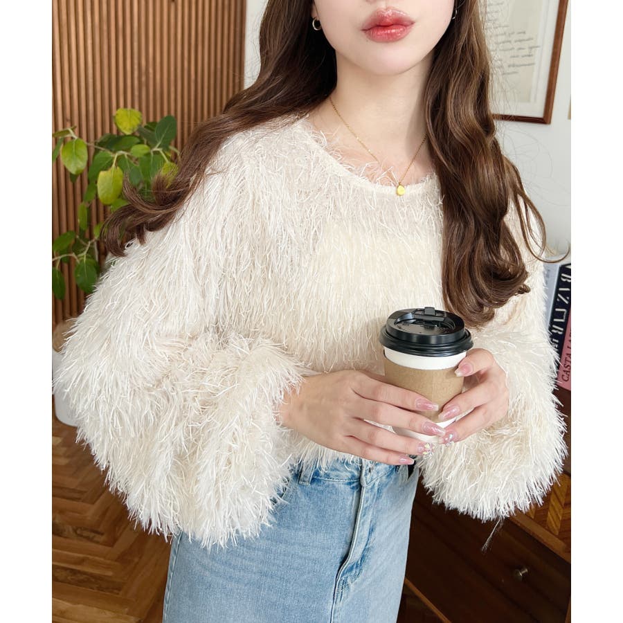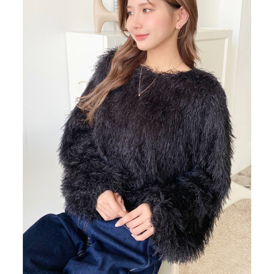 裾バルーンフリンジ長袖プルオーバー