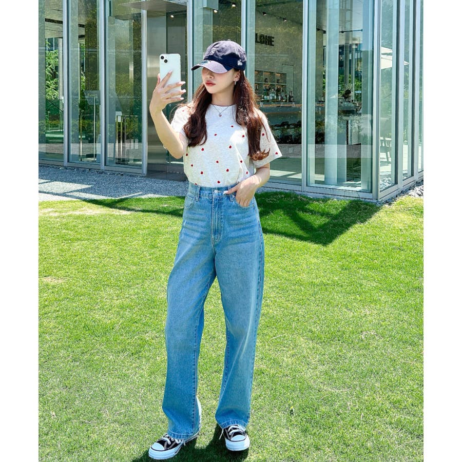 カジュアルになりがちなTシャツも、全体のハート刺繍が可愛らしいアクセントになり、1枚で女の子らしい雰囲気に仕上がります!