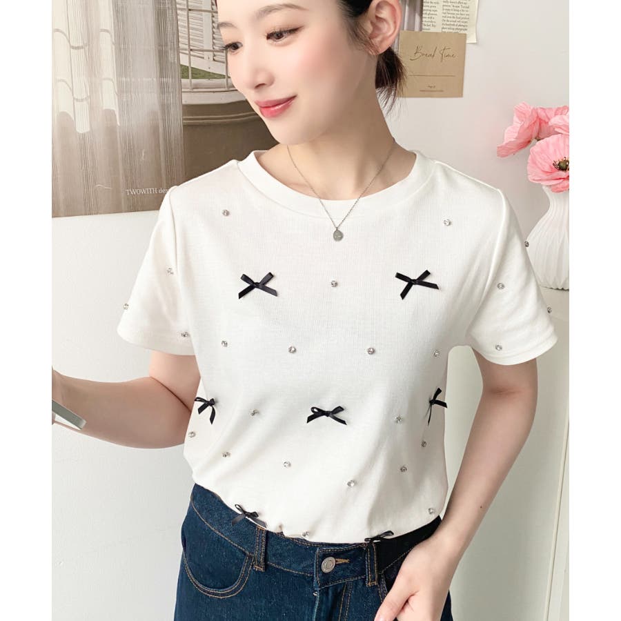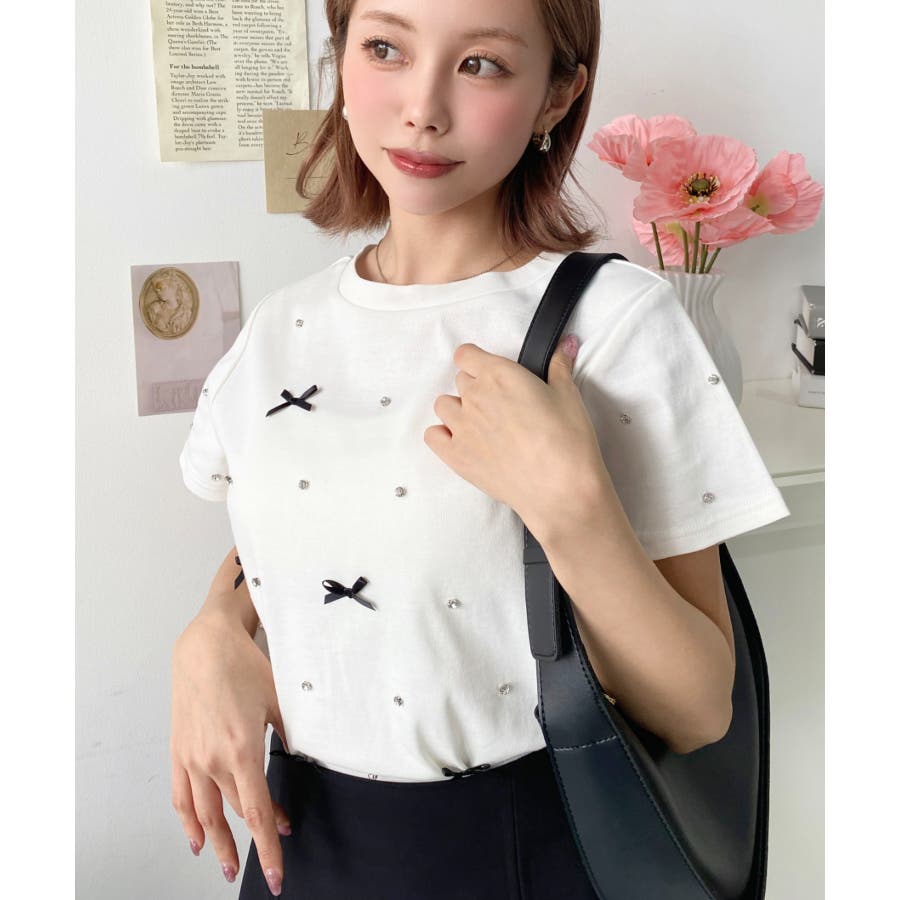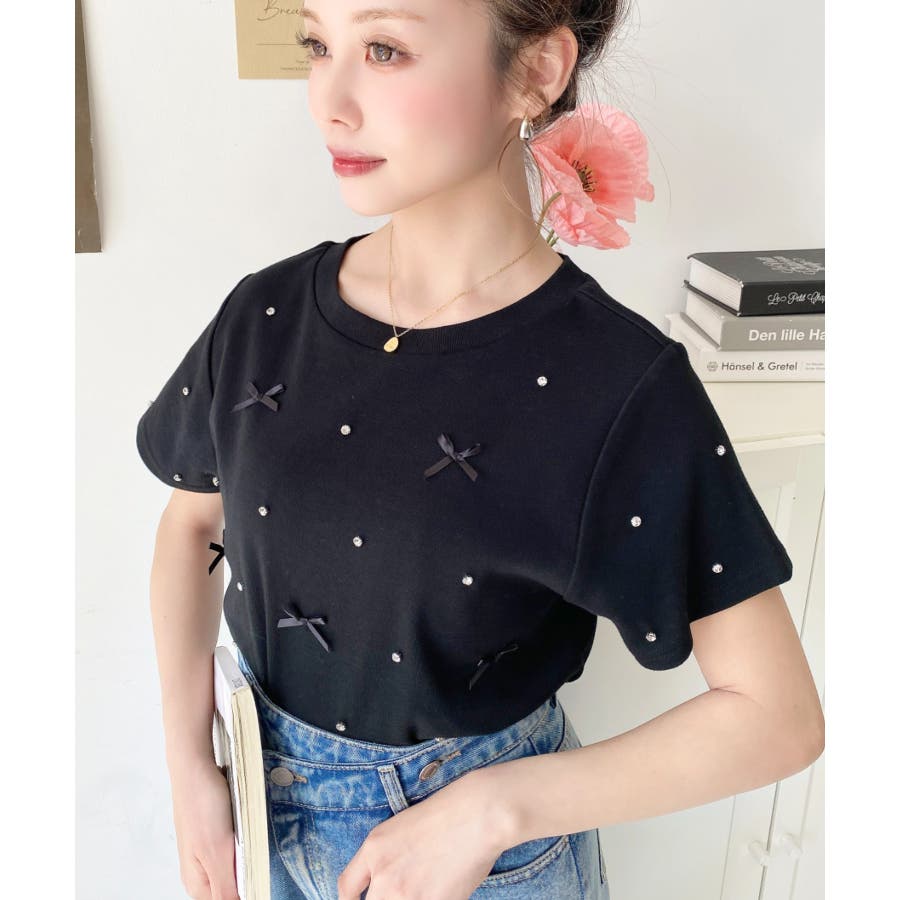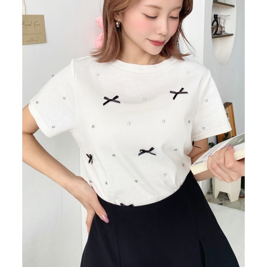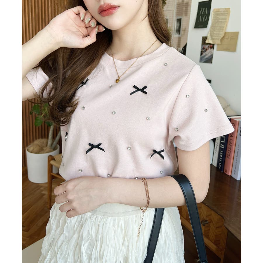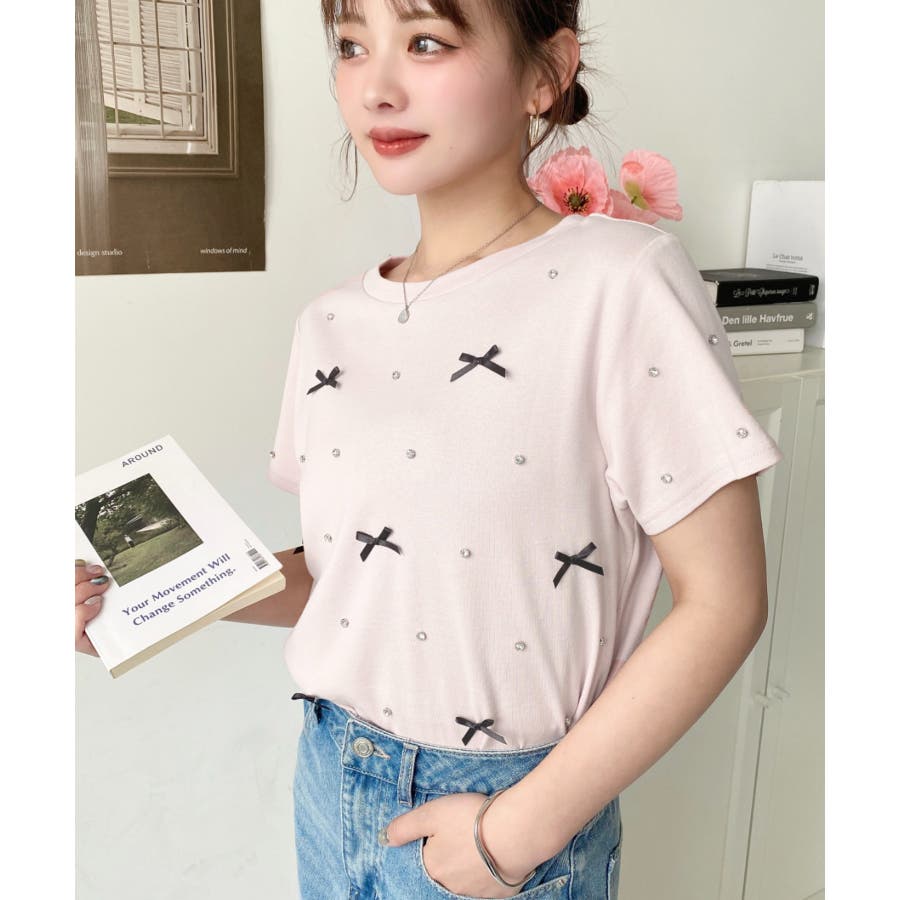 【リボン×ビジューとバックハートでかわいさがぎゅっと詰まったTシャツが登場】