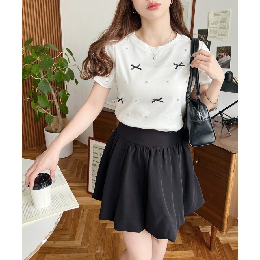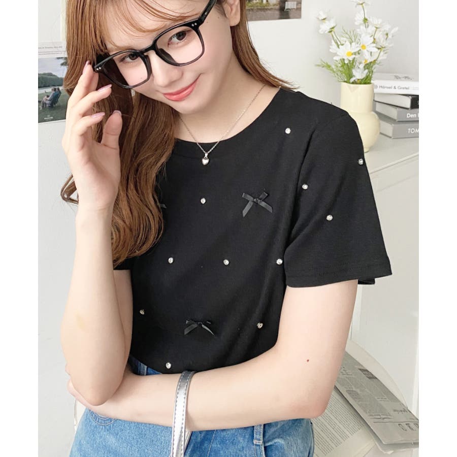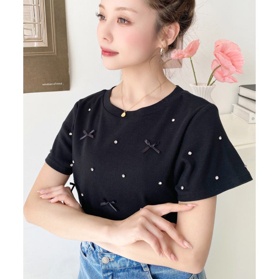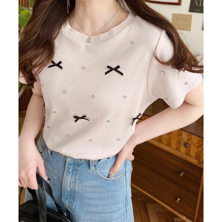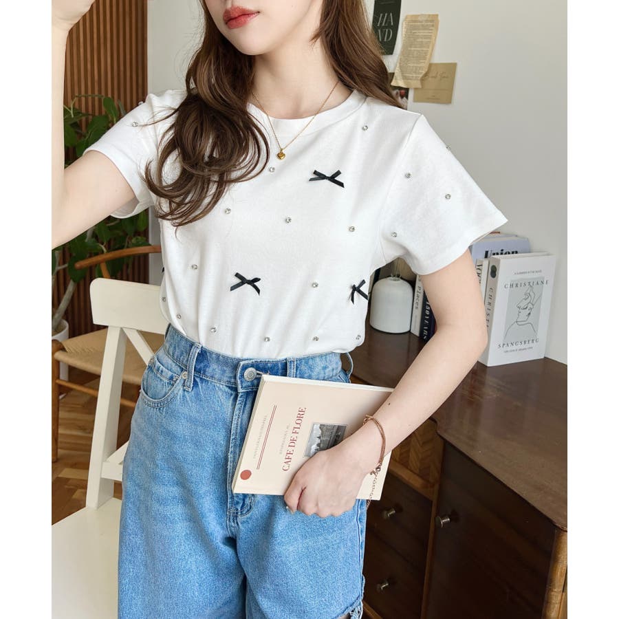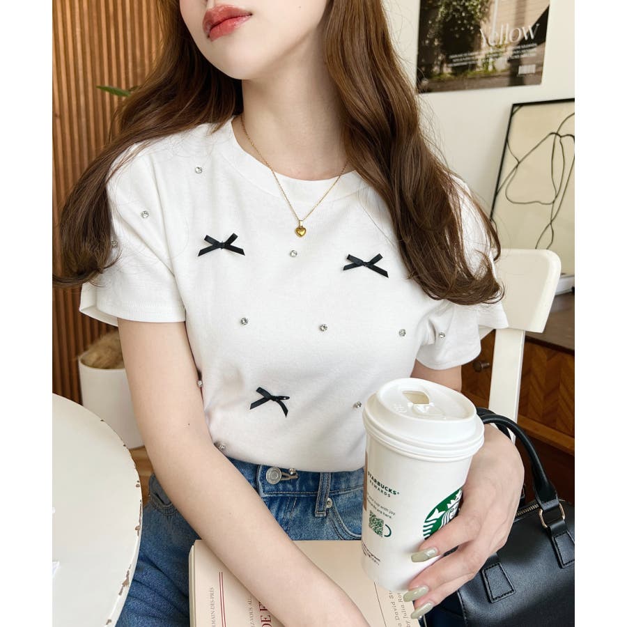 【リボン×ビジューとバックハートでかわいさがぎゅっと詰まったTシャツが登場】