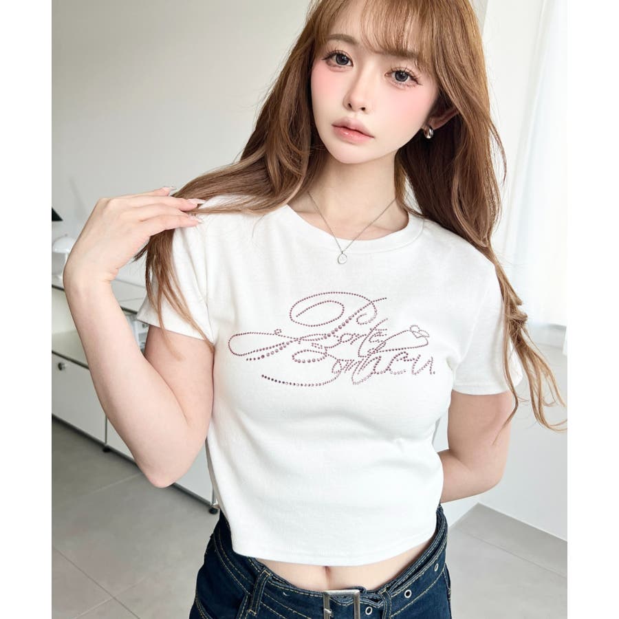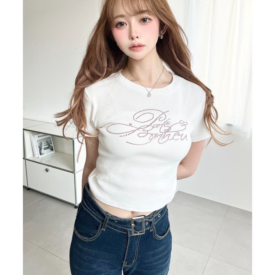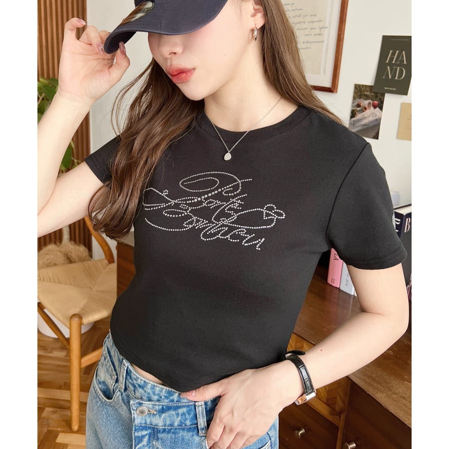 ラインストーンロゴ半袖チビTシャツ