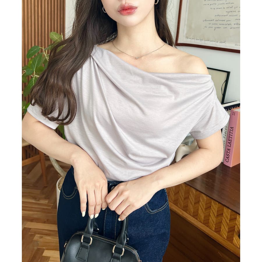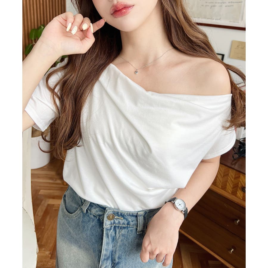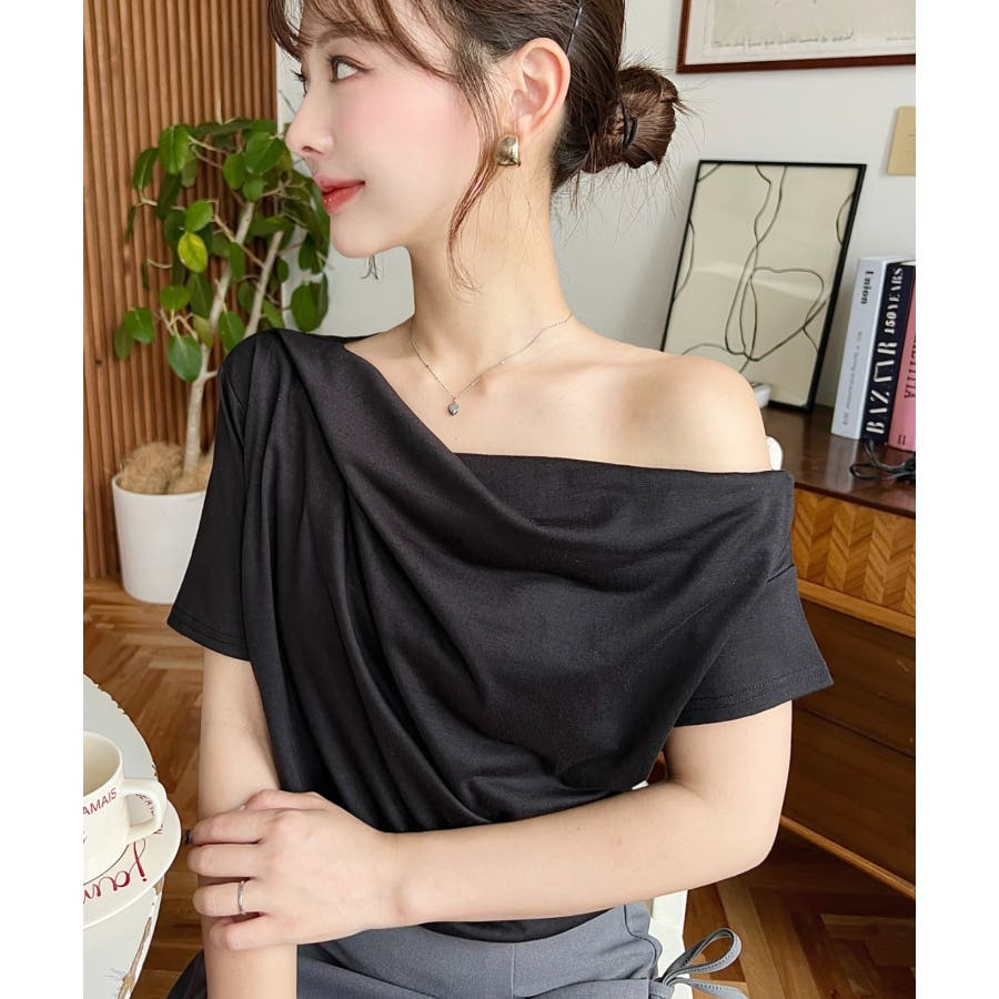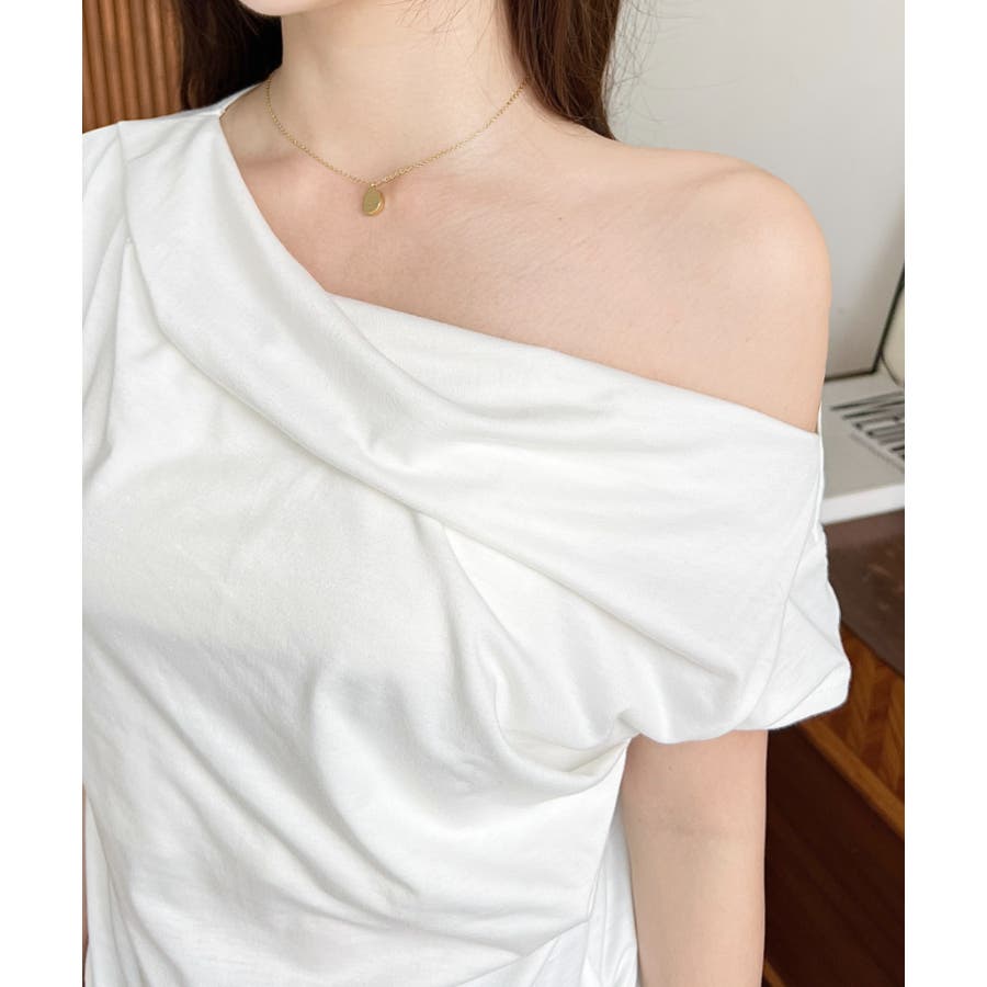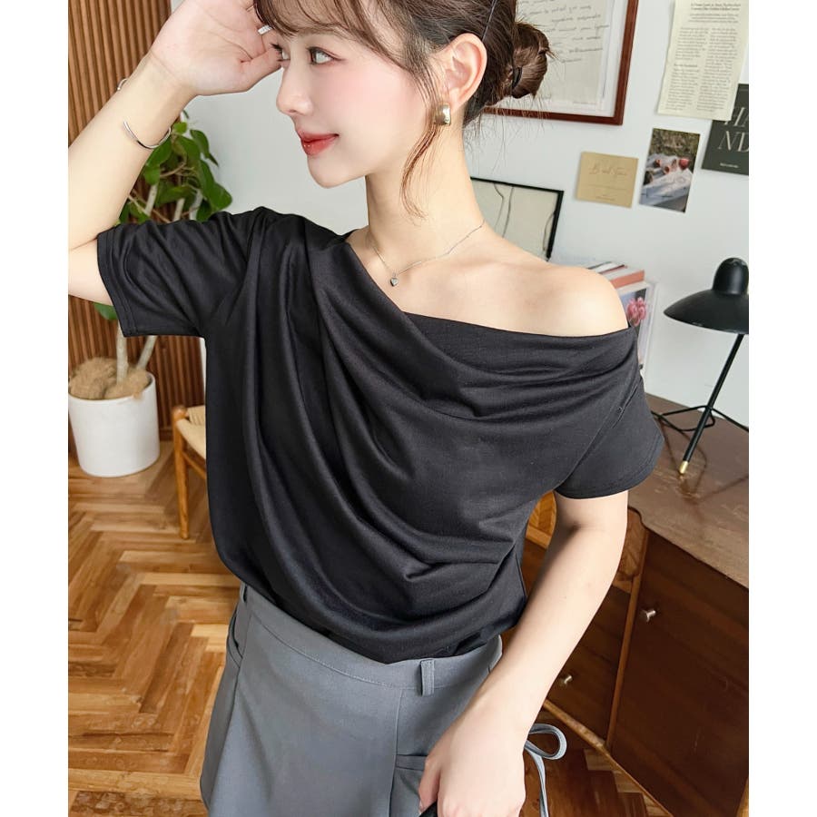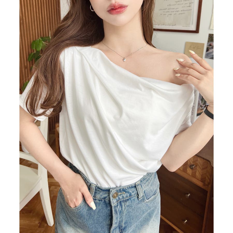 カットソー Tシャツ ワンショル ワンショルダー ドレープ 綿100% コットン フレンチスリーブ 半袖 肌見せ 肩見せ デコルテ見せ おしゃれ シンプル 無地 ベーシック レディース レディースファッション トップス 大人カジュアル 定番 2025SS 春 夏 mt07198
