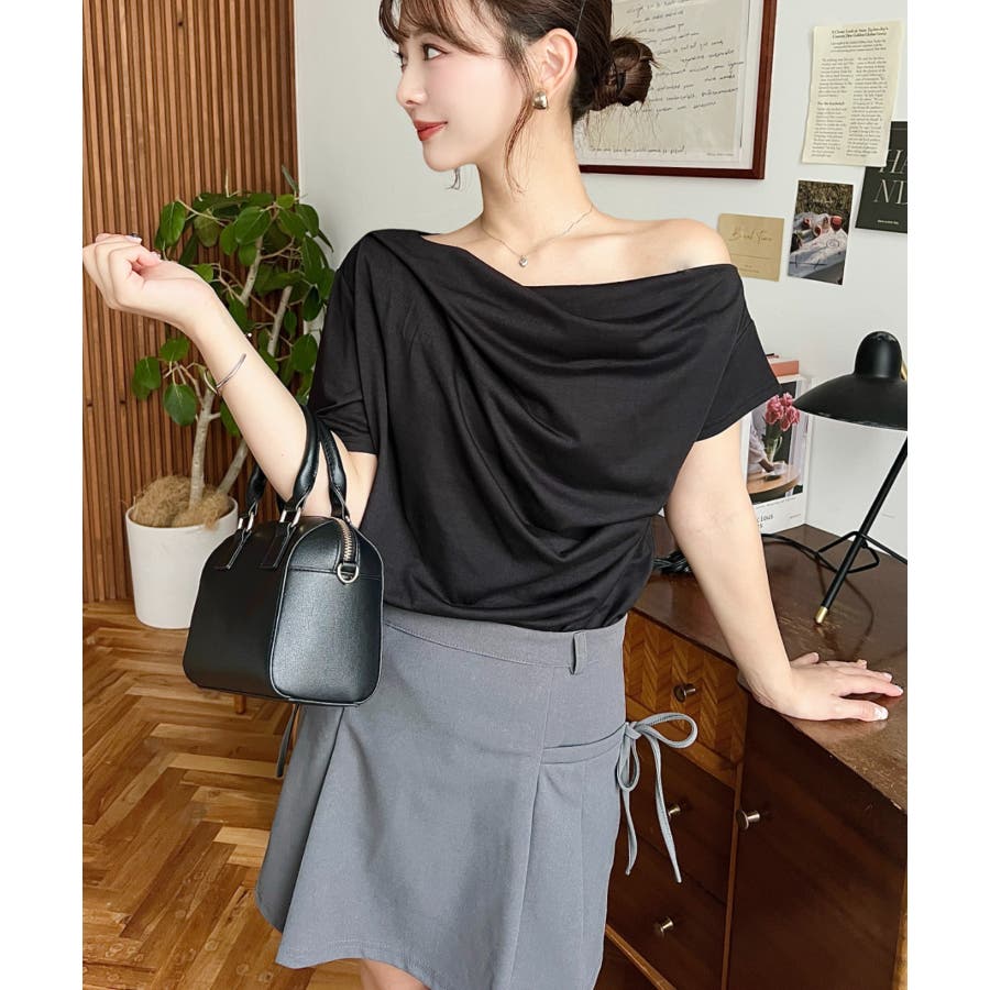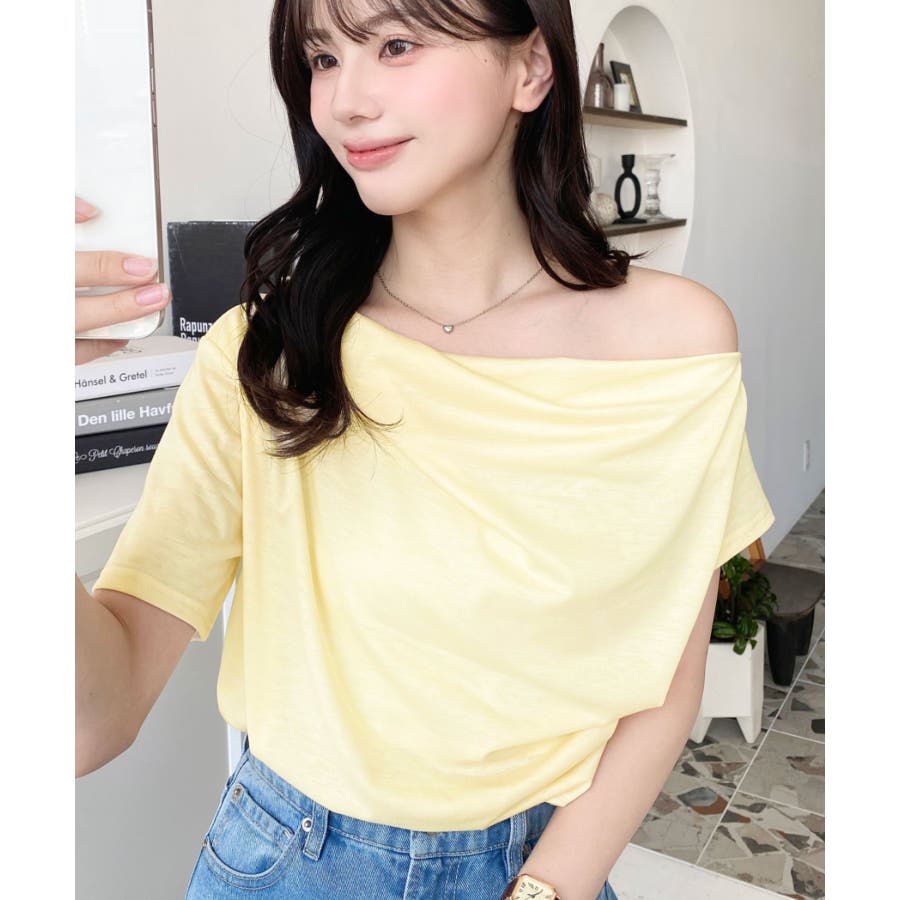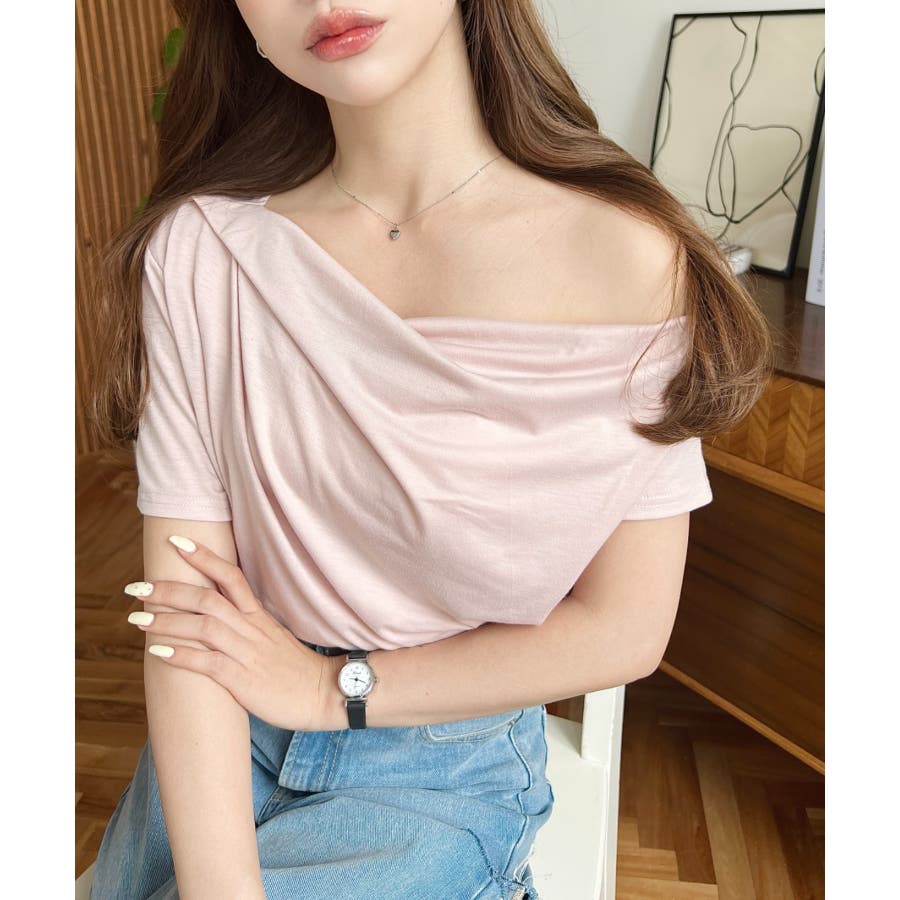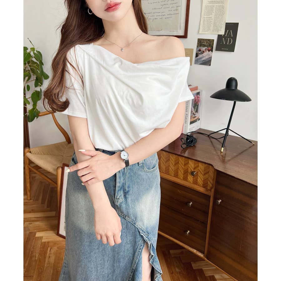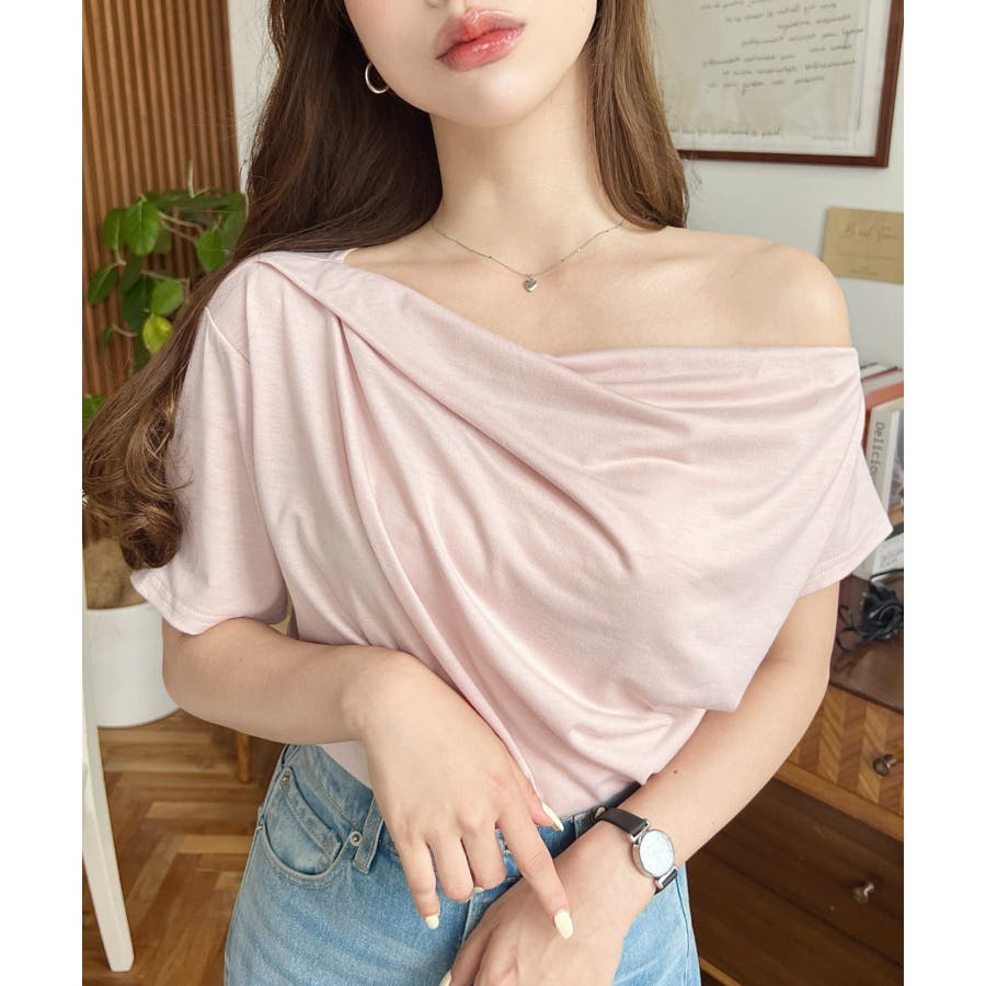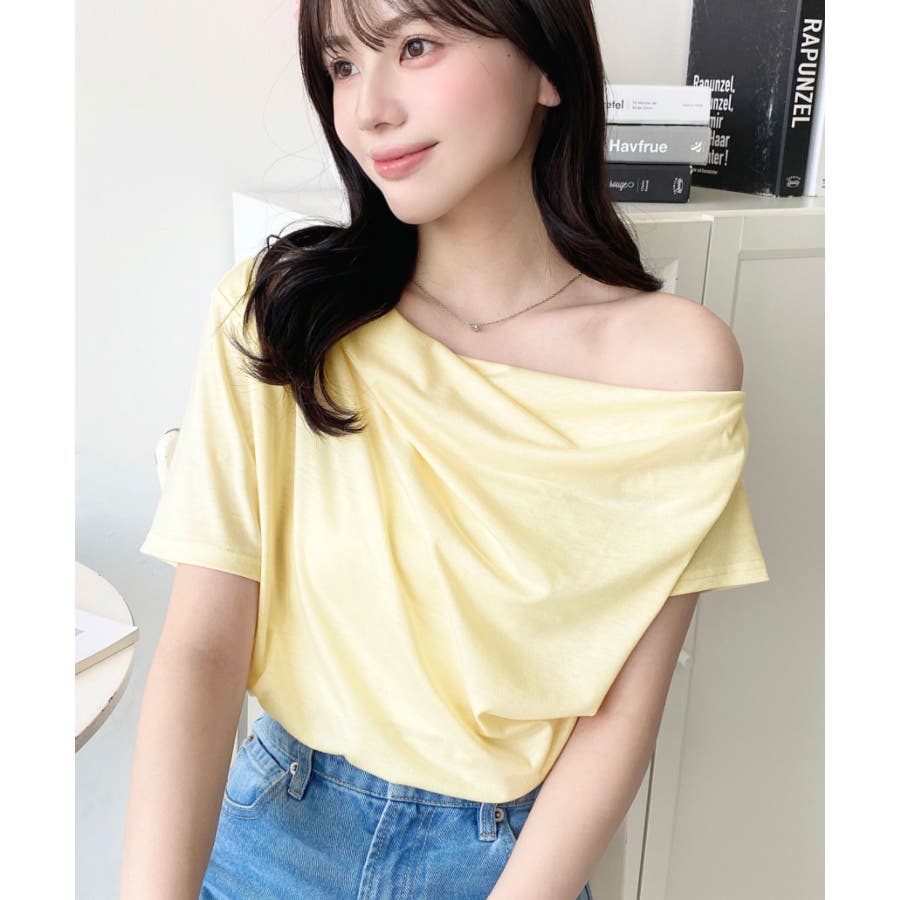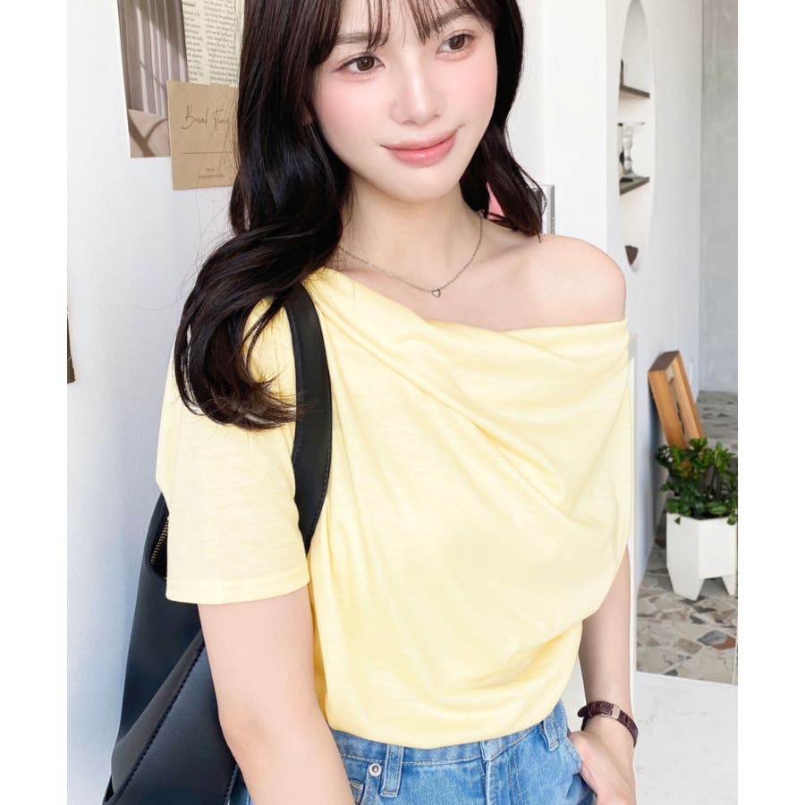 カットソー Tシャツ ワンショル ワンショルダー ドレープ 綿100% コットン フレンチスリーブ 半袖 肌見せ 肩見せ デコルテ見せ おしゃれ シンプル 無地 ベーシック レディース レディースファッション トップス 大人カジュアル 定番 2025SS 春 夏 mt07198