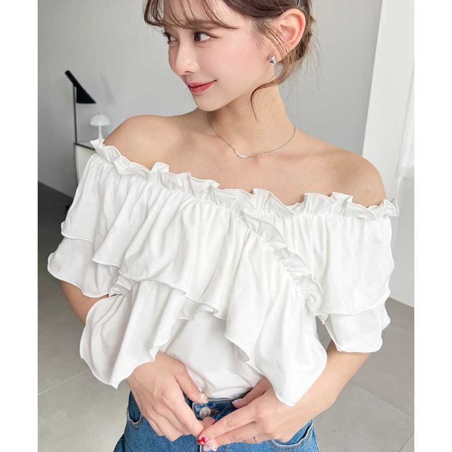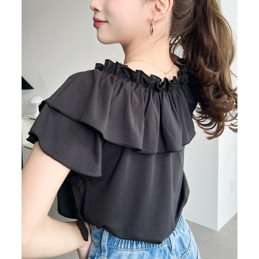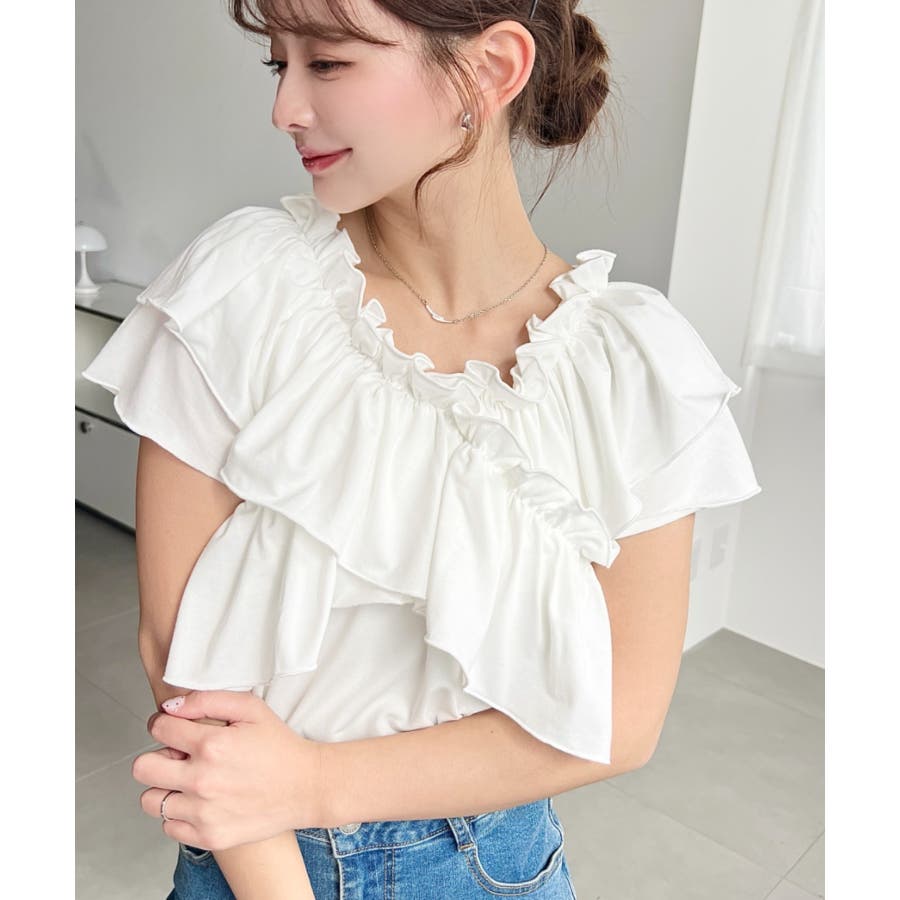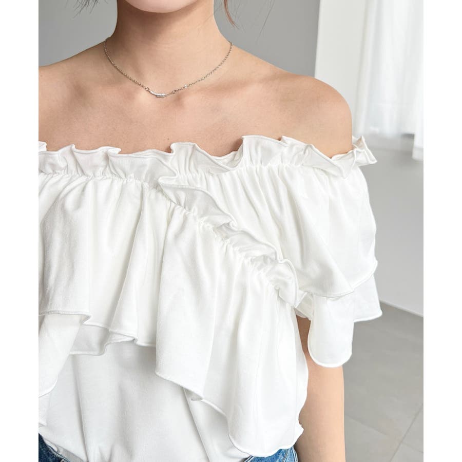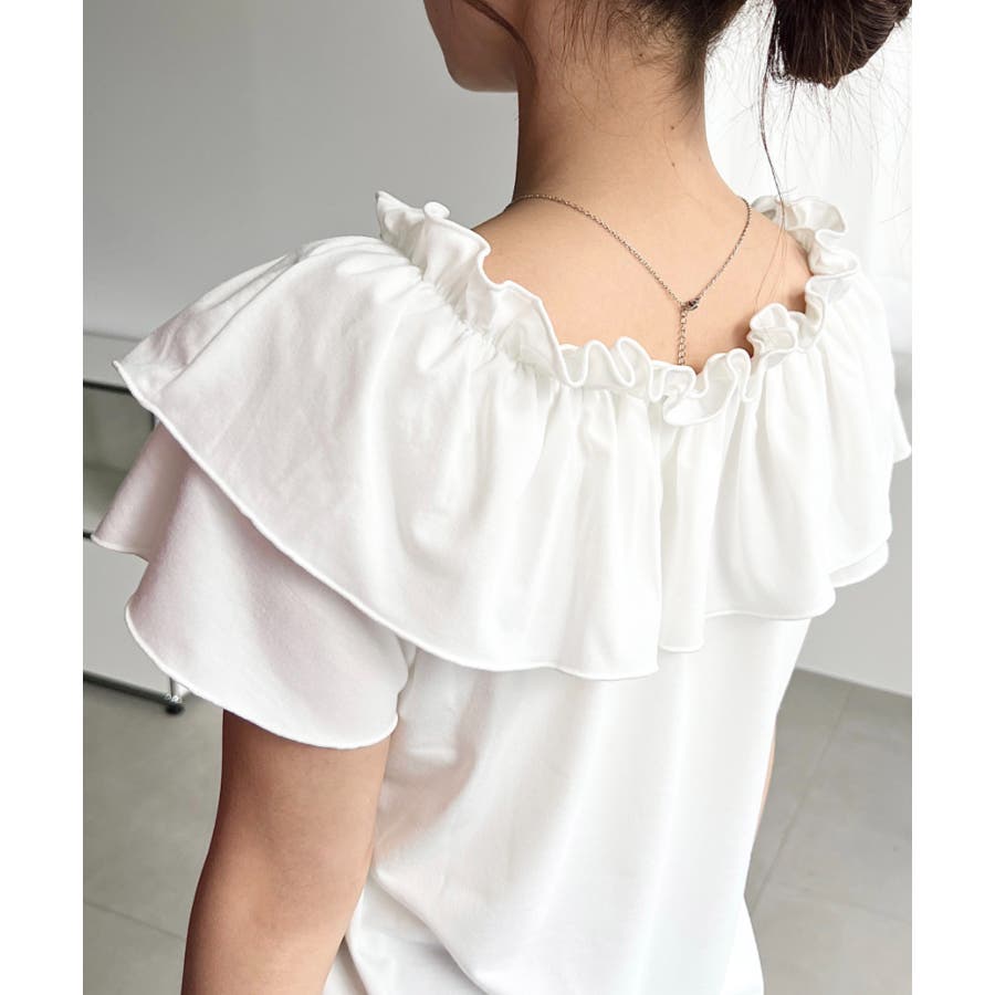 マルチウェイオフショルクロスフリルTシャツ