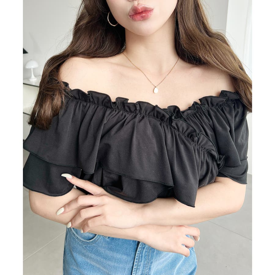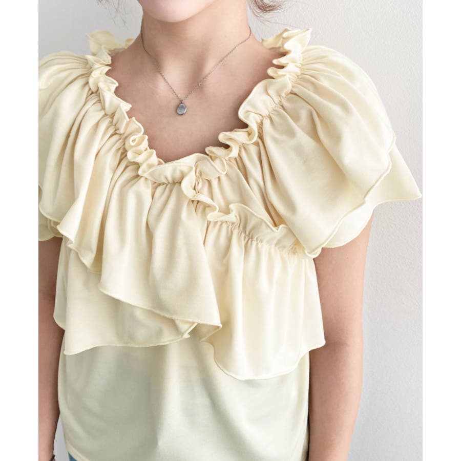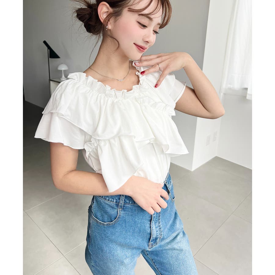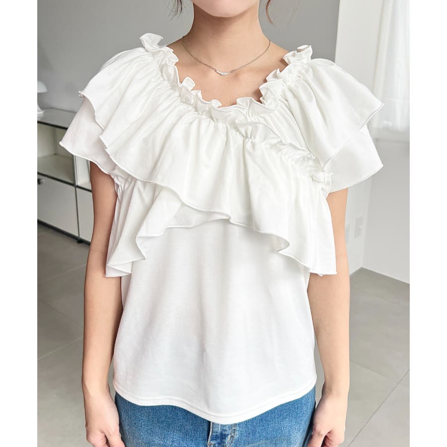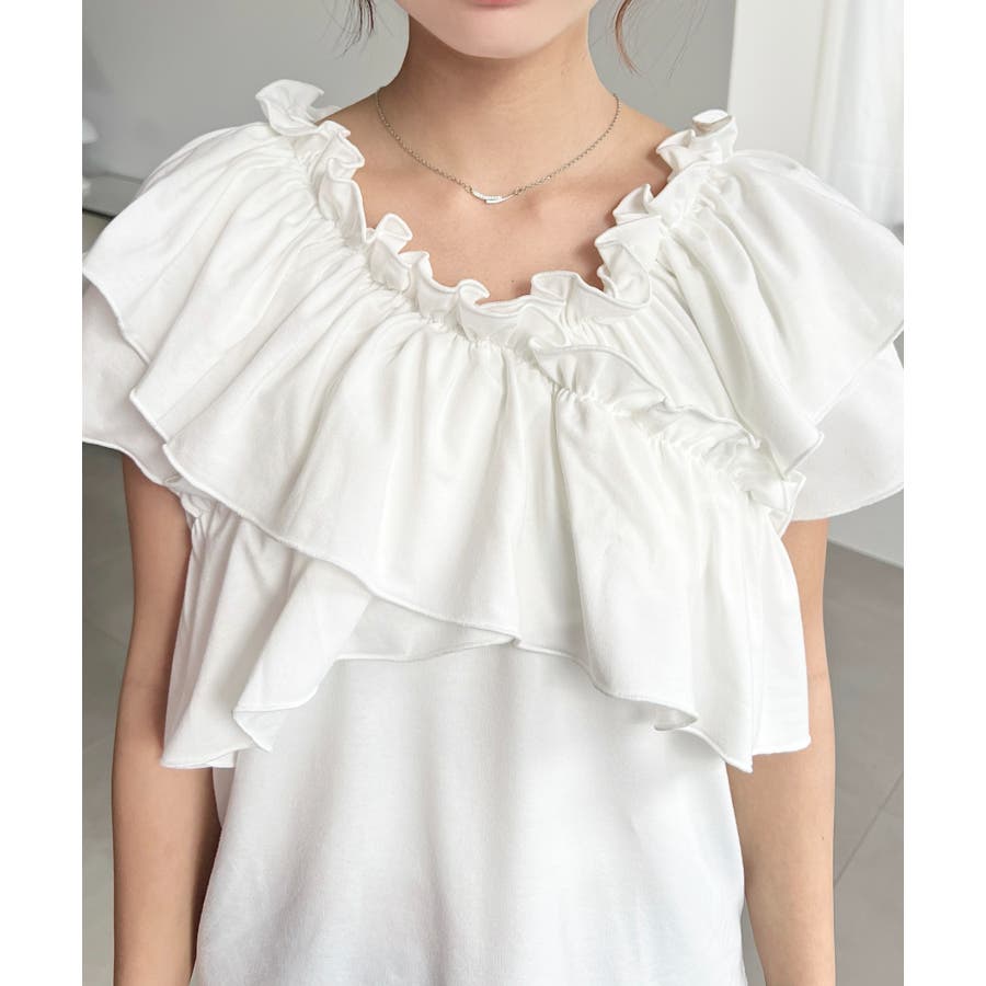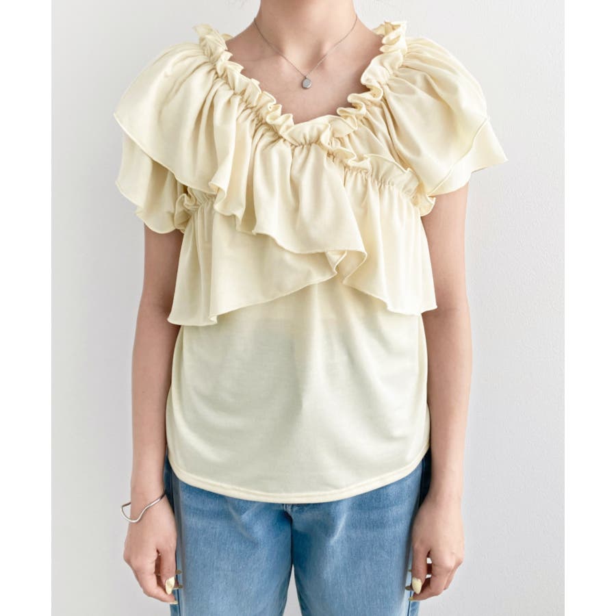 マルチウェイオフショルクロスフリルTシャツ
